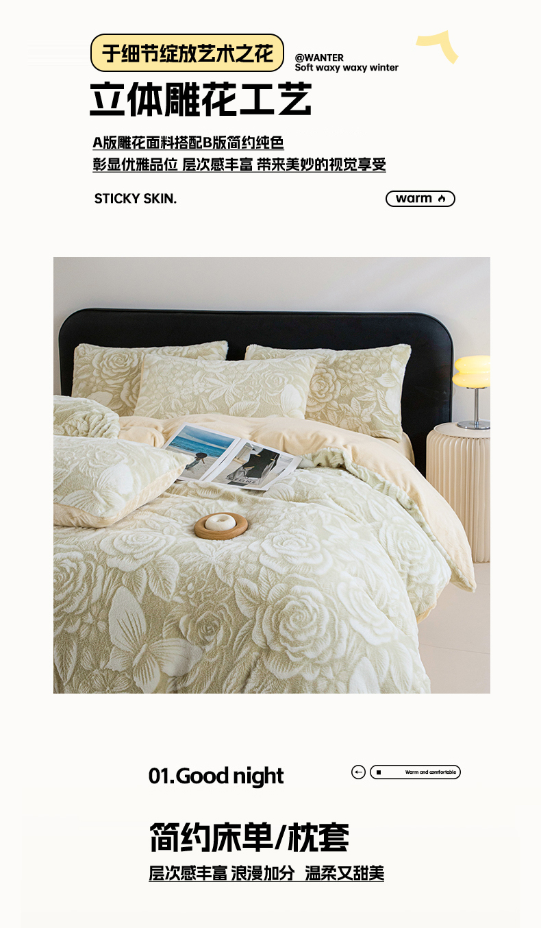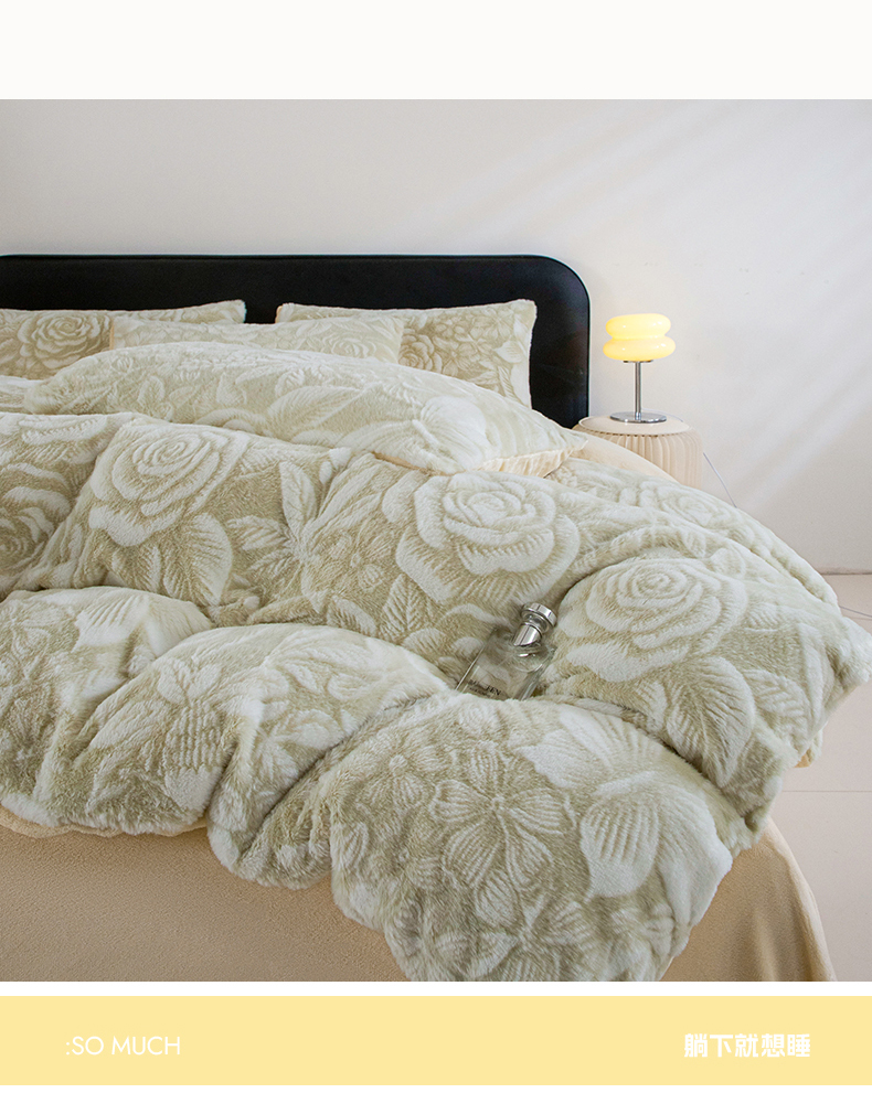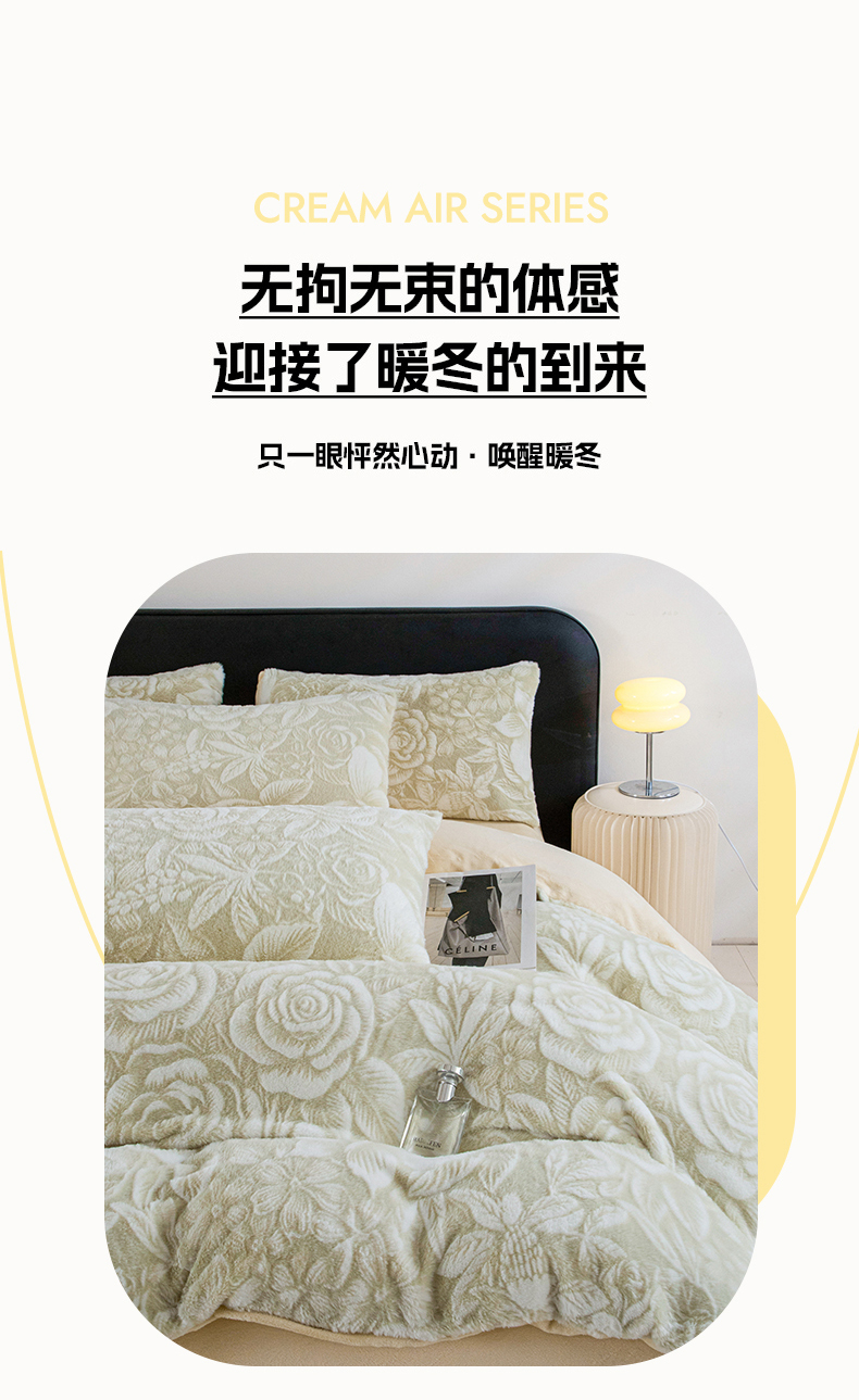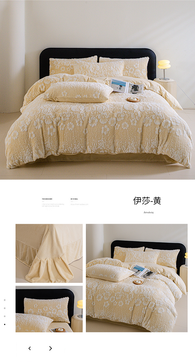 (总)诺梵家纺 2025新款兔毛绒包边 雕花绒四件套,梵花-米白,梵花-紫金,花魅-咖,青黛,苏乡,栖春山,杏坞-黄