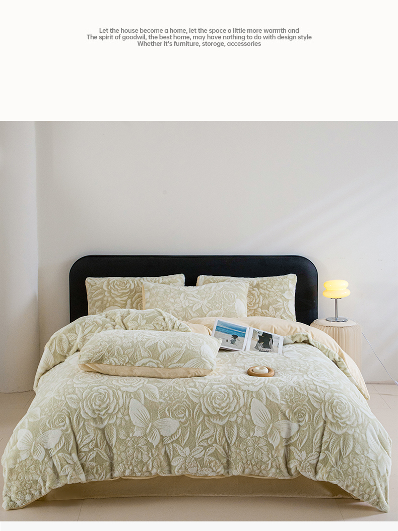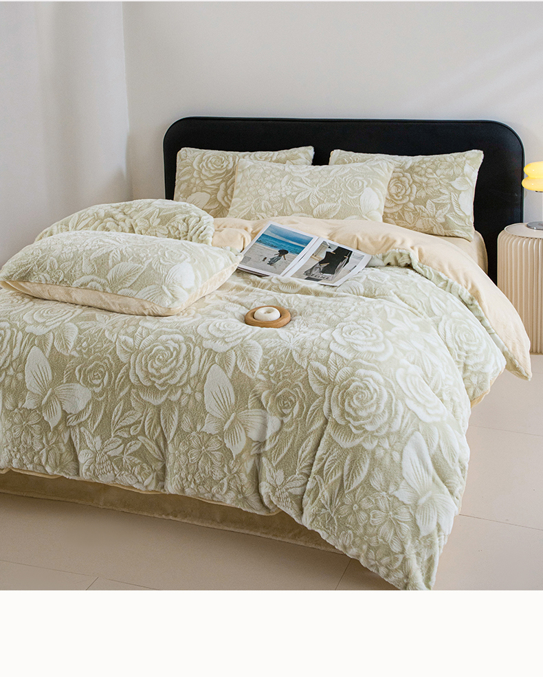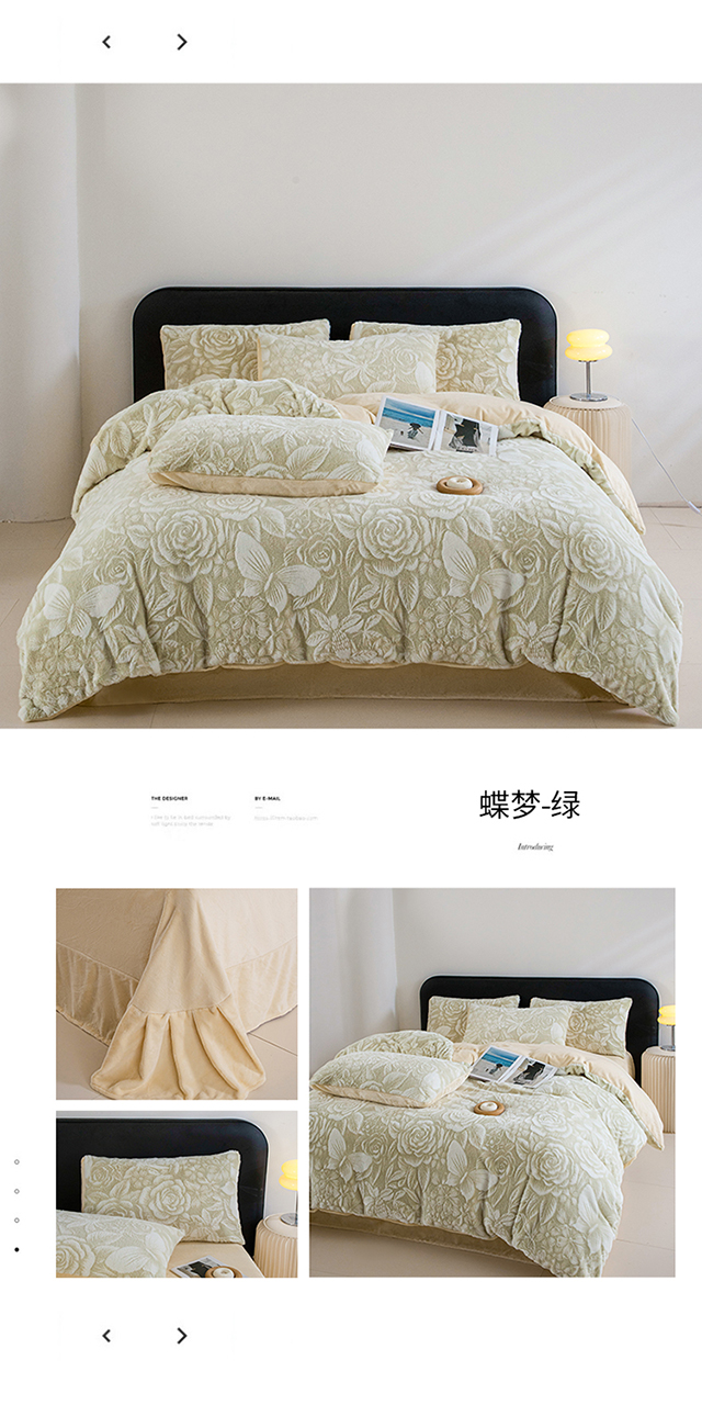 (总)诺梵家纺 2025新款立体兔毛烂花四件套,蝶梦-绿,伊莎-黄