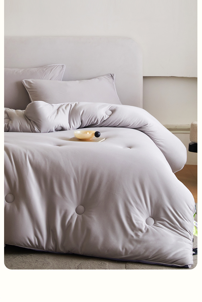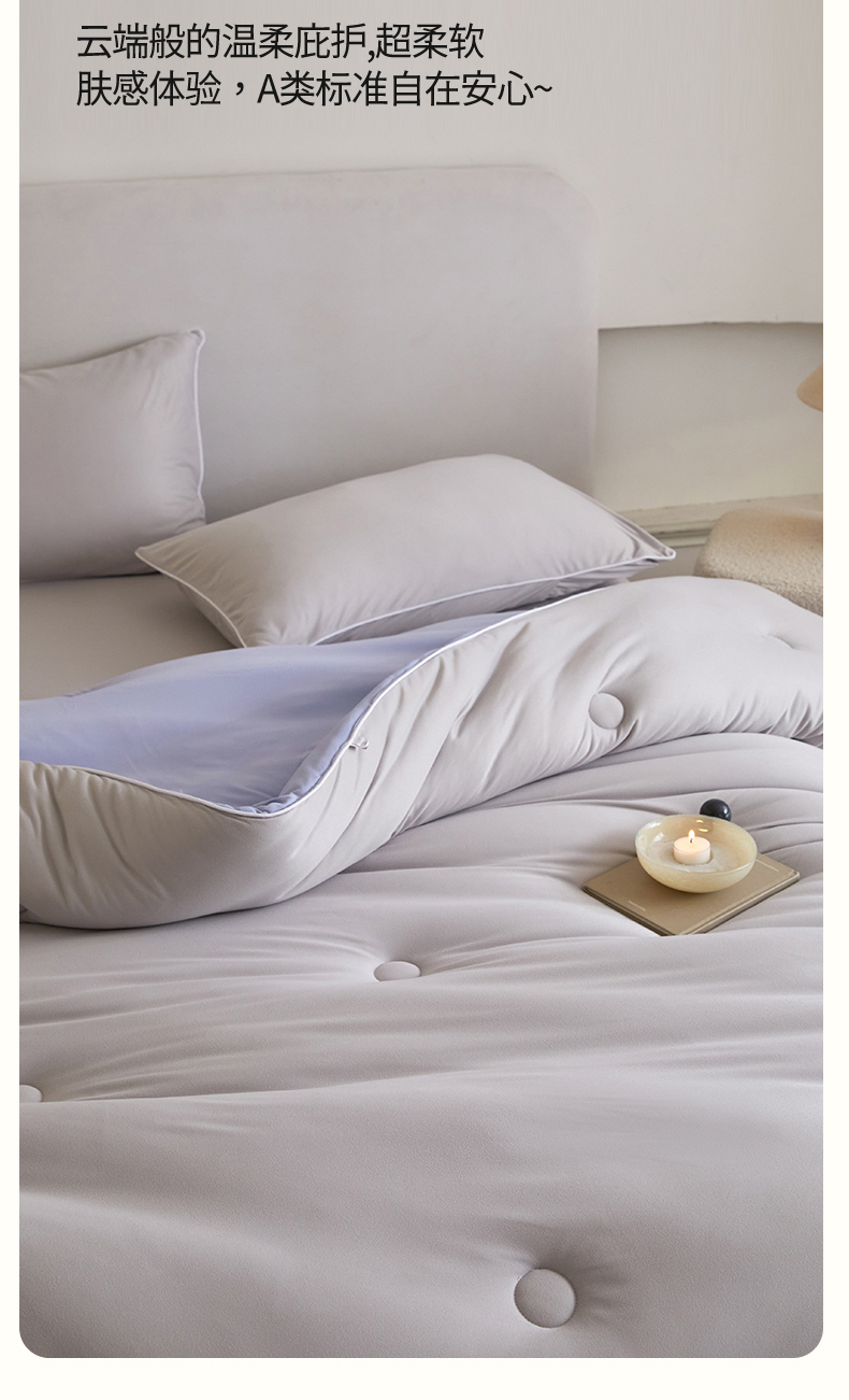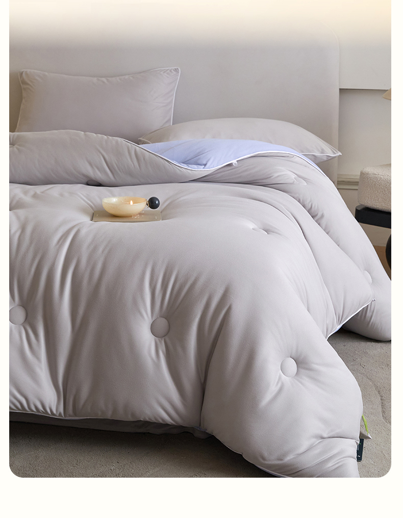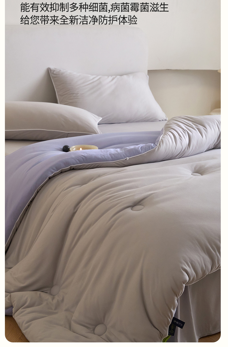• 91家纺网 家纺一手货源 找家纺 头等舱 2025新款针织A类软糯净植力抗菌防螨防霉低致敏双拼秋冬被(空镜图) 浅灰+天空蓝