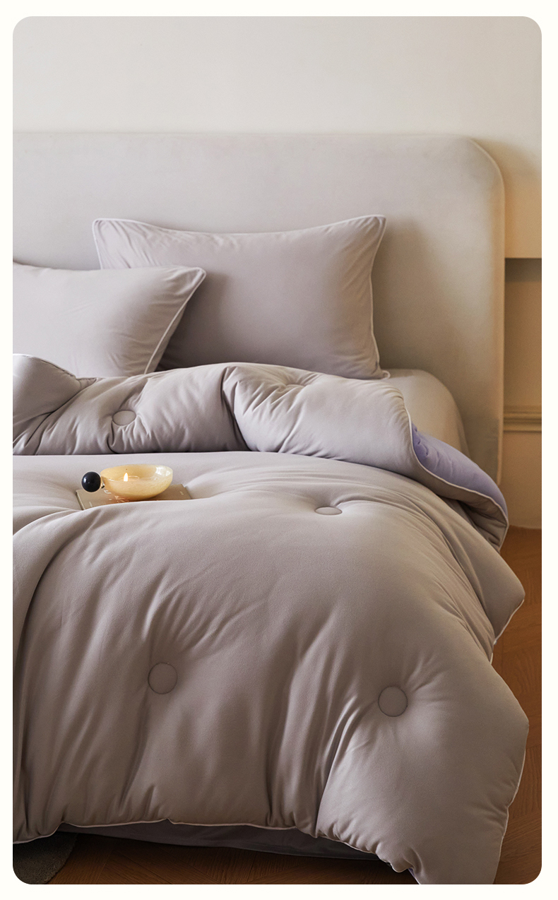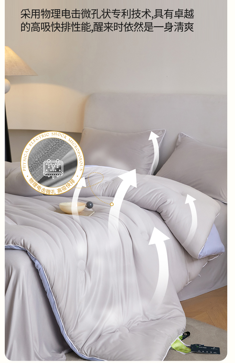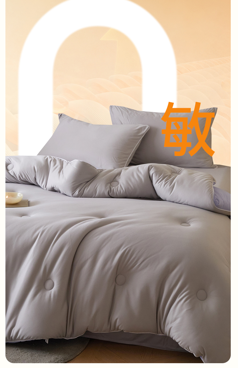 • 91家纺网 家纺一手货源 找家纺 头等舱 2025新款针织A类软糯净植力抗菌防螨防霉低致敏双拼秋冬被(空镜图) 浅灰+天空蓝