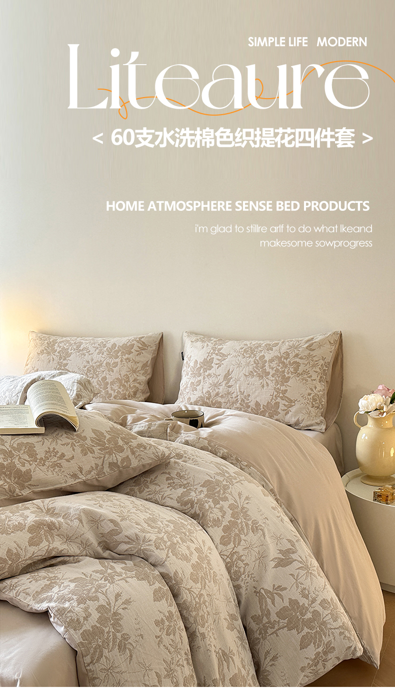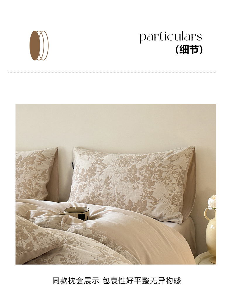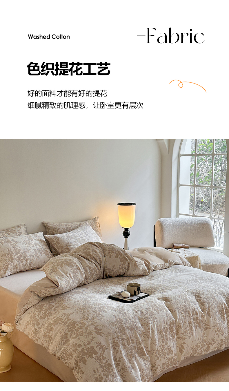 当前位置: 91家纺网 > 商品网购 > 床品套件 > 四件套 > 水洗棉四件套 > 宜代光年 2025新款60s水洗棉提花系列四件套-第一批-场景一 繁花-咖
