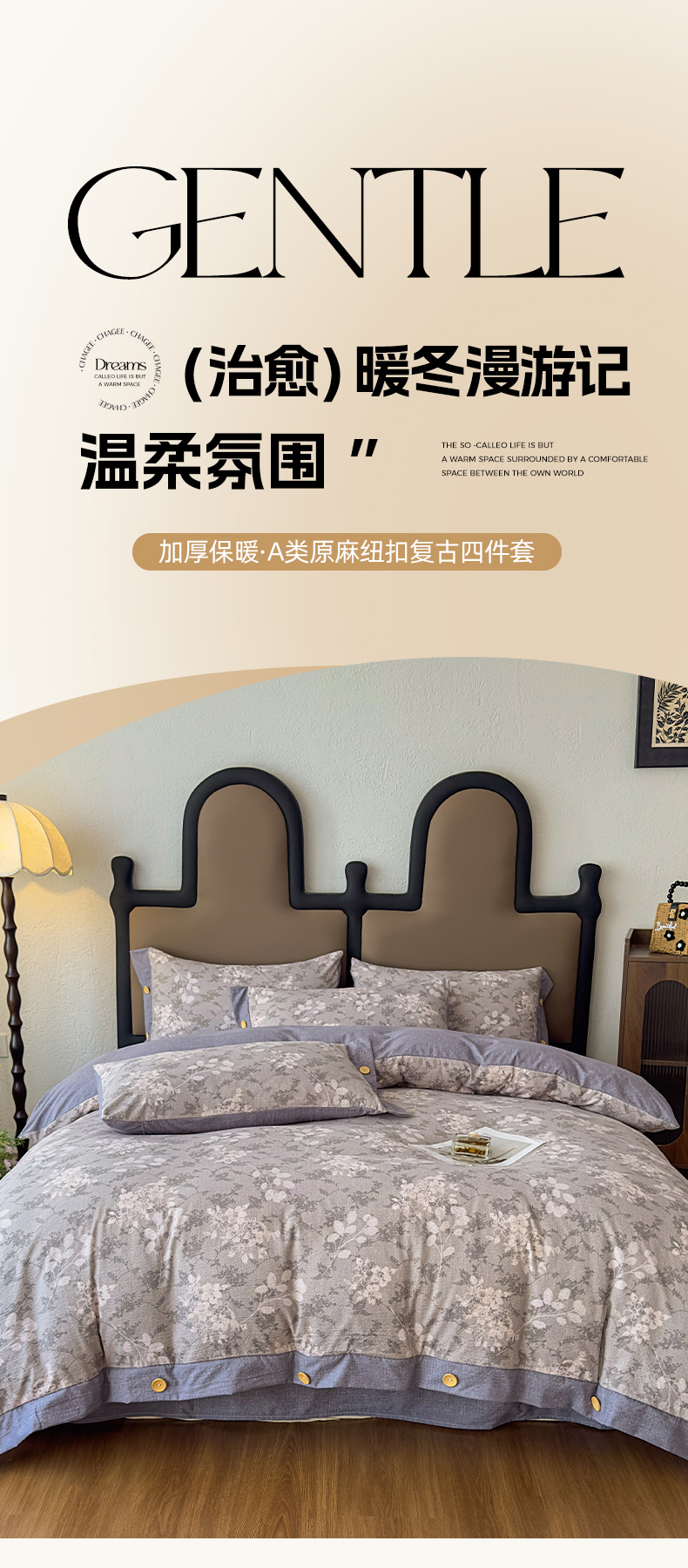(总)丝芙妮家居(原乐视家纺) 2025新款原麻纽扣款四件套