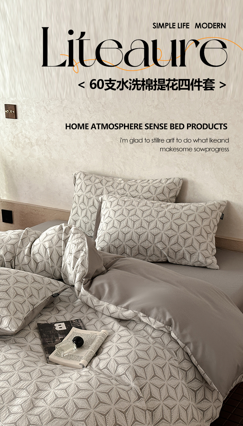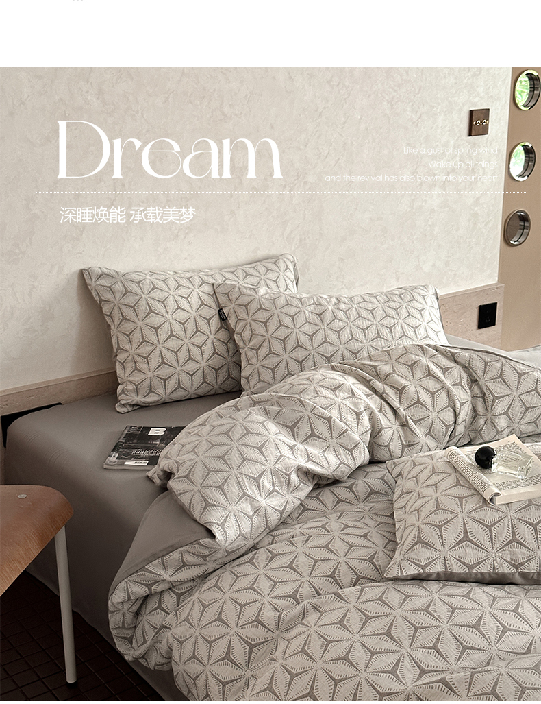 当前位置: 91家纺网 > 商品网购 > 床品套件 > 四件套 > 水洗棉四件套 > 宜代光年 2025新款60s水洗棉提花系列四件套-第三批 雪片花-灰