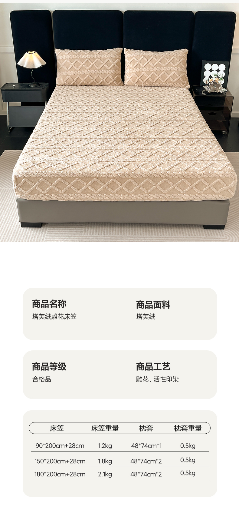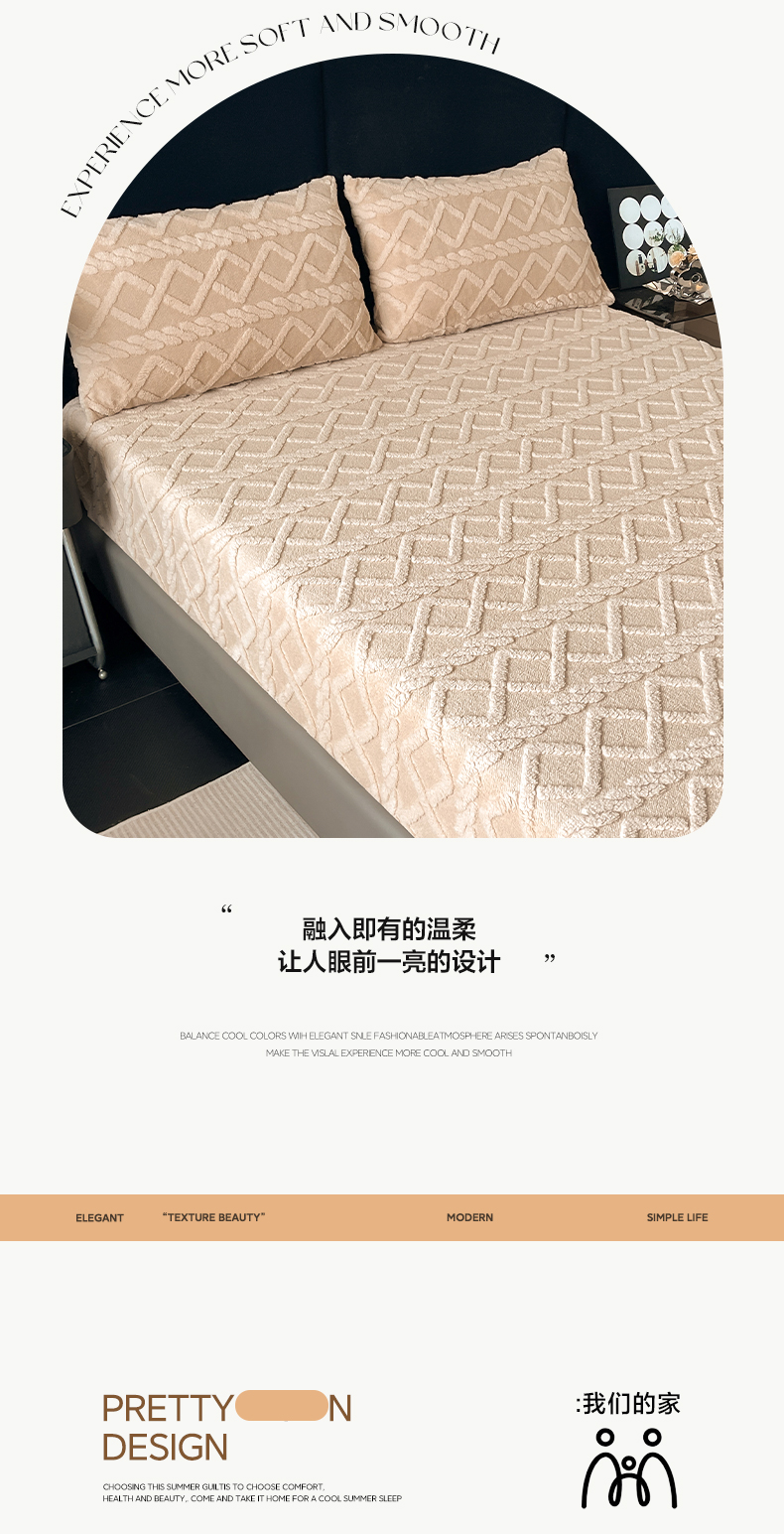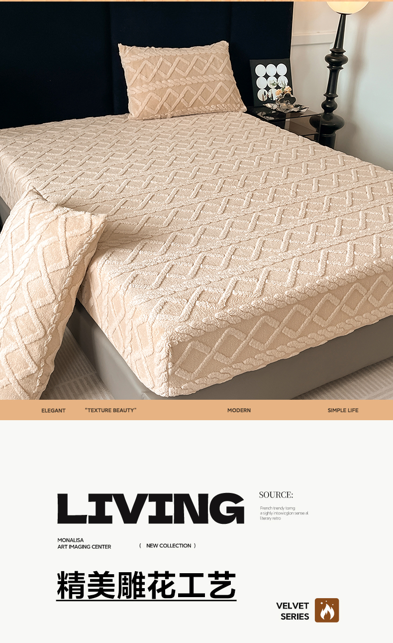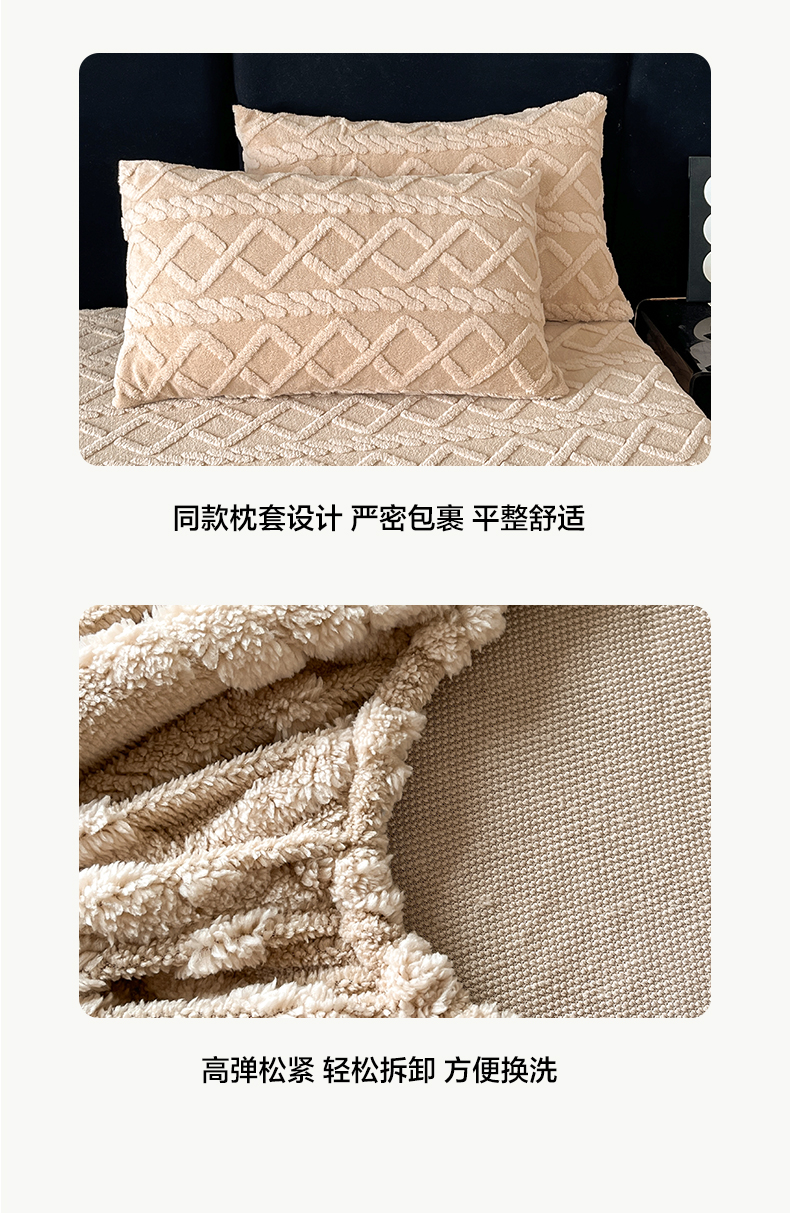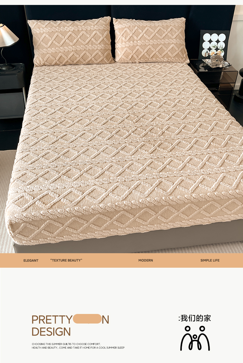 • 91家纺网 家纺一手货源 找家纺 米瑞娜 2025秋冬新款塔芙绒床笠三件套跨境单床笠外贸单品现货尺寸齐全 马尾型-卡其