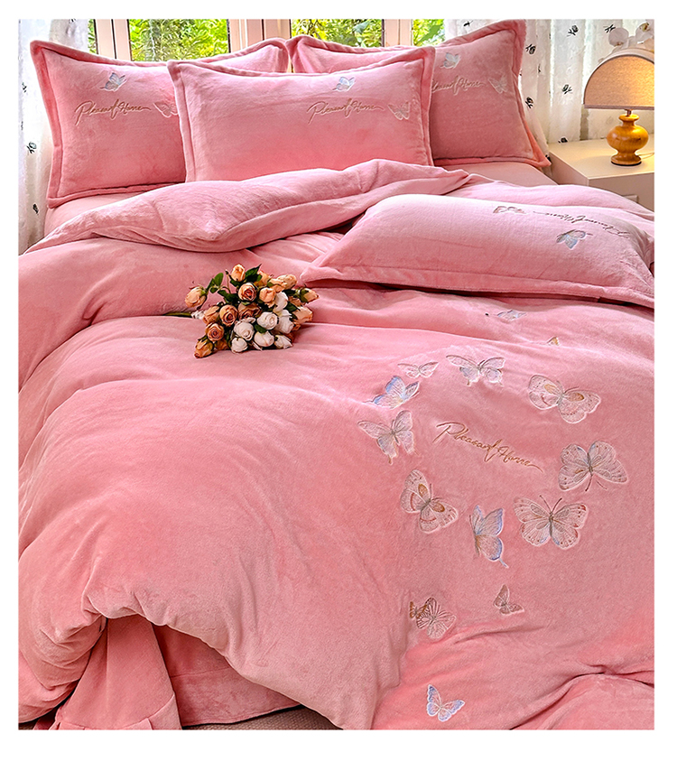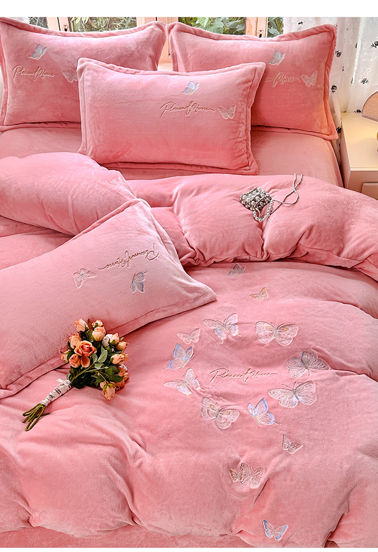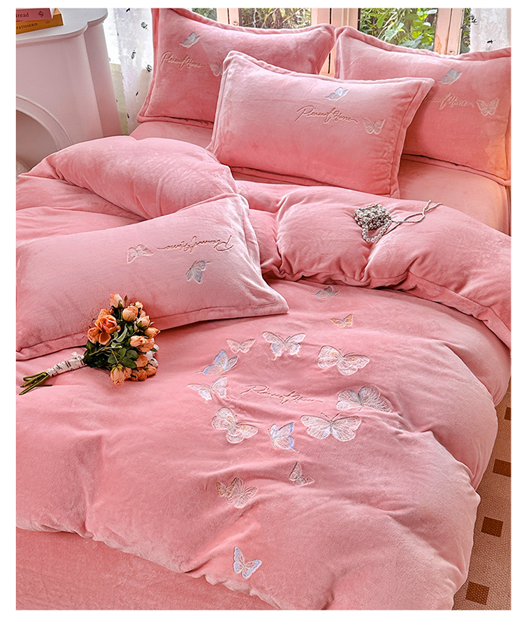 (总)【苏东来】2025高端加厚保暖纯色甜美公主赫本风法式工艺款雕花牛奶绒四件套清新少女婴儿法莱兔绒四件套,蝶恋花,繁花,花香,玫瑰花,一枝花,华尔兹粉,华尔兹卡其,华尔兹水绿,华尔兹天蓝,山茶花,蝴蝶花,梦蝶,如意结,飞舞少女,满天星粉,满天星卡其,满天星水绿
