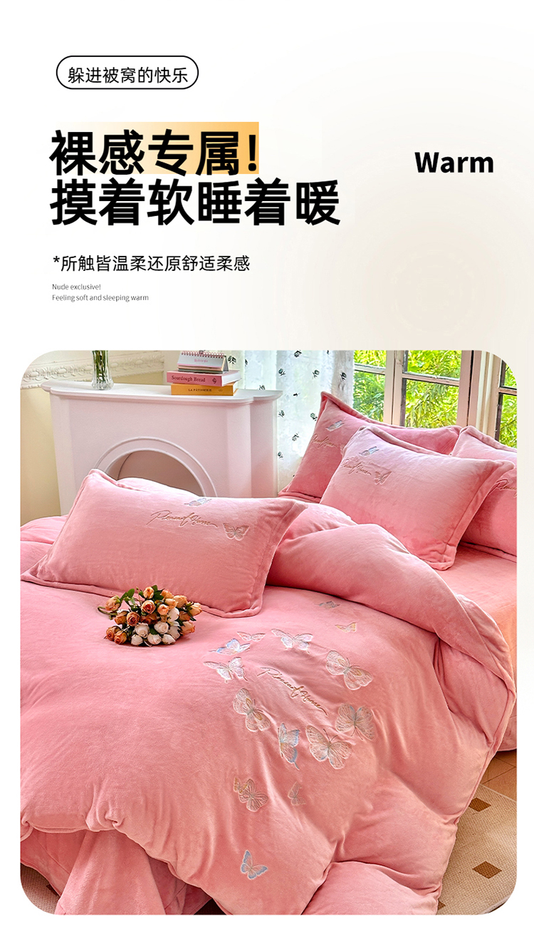 (总)【苏东来】2025高端加厚保暖外贸轻奢款纯色牛奶绒刺绣花四件套床单被套单品简约绒兔毛绒法莱绒婴儿绒套件,时光米黄,时光粉,时光卡其,时光天蓝,时光豆沙