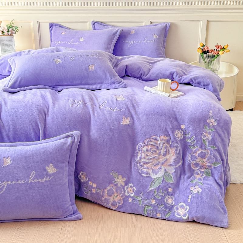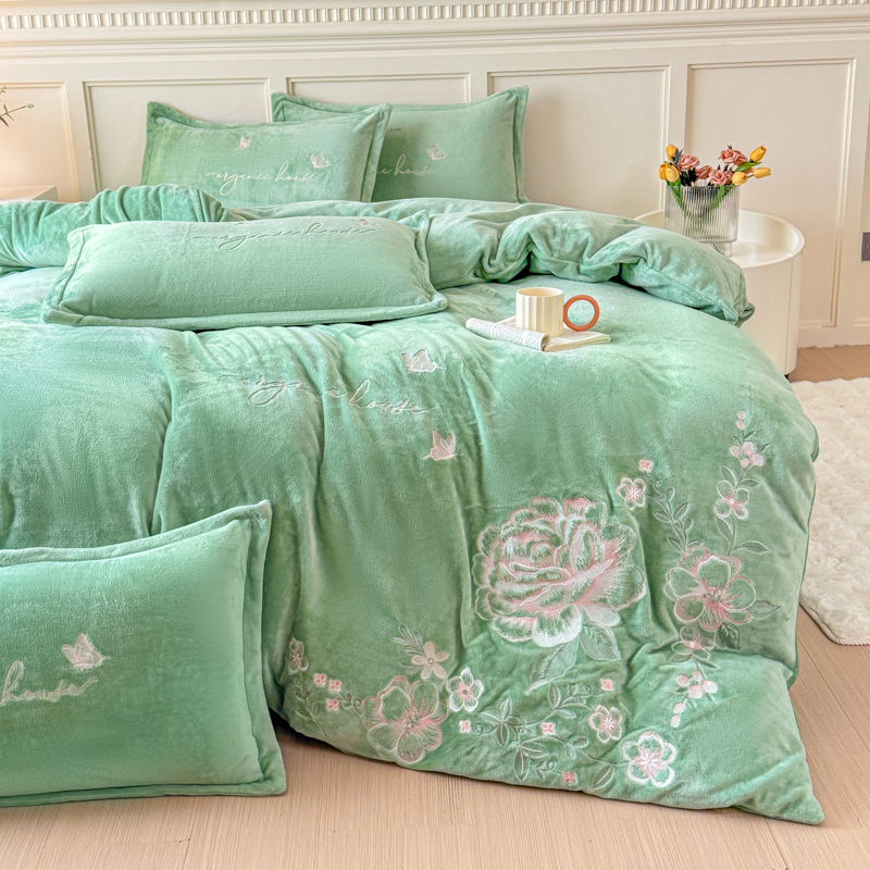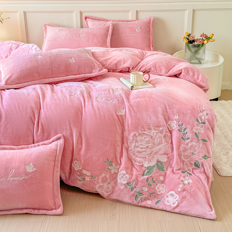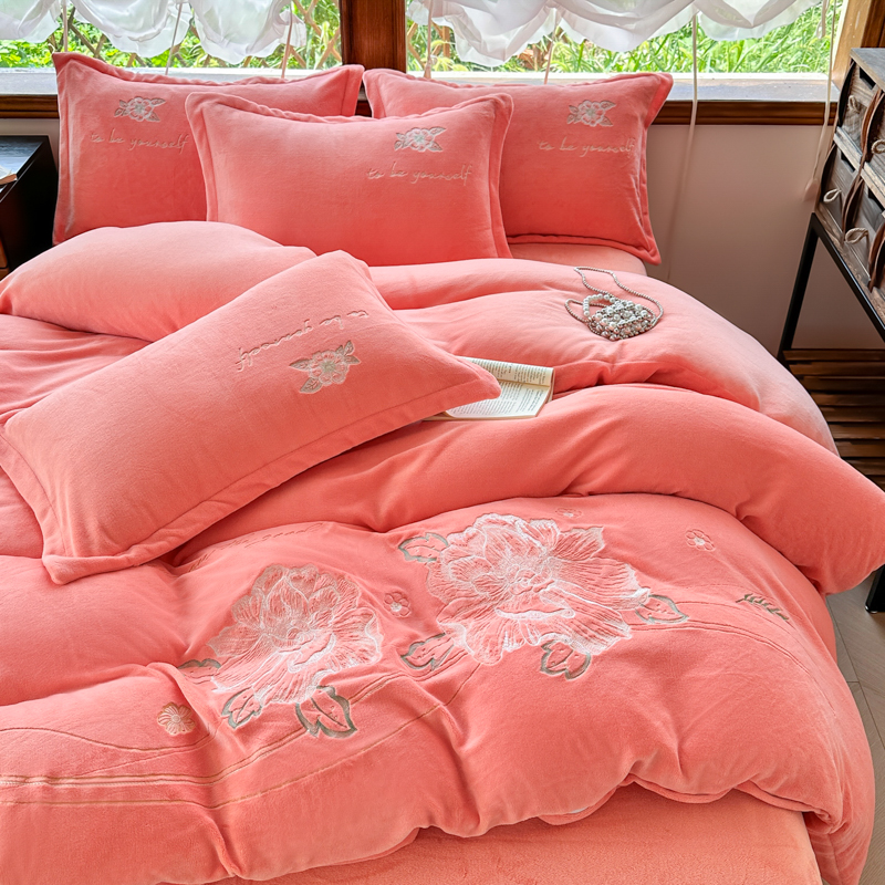 (总)【苏东来】2025轻奢高端230g加厚纯色甜美公主风花卉牛奶绒刺绣花四件套清新婴儿绒法莱绒兔绒雕花绒四件套