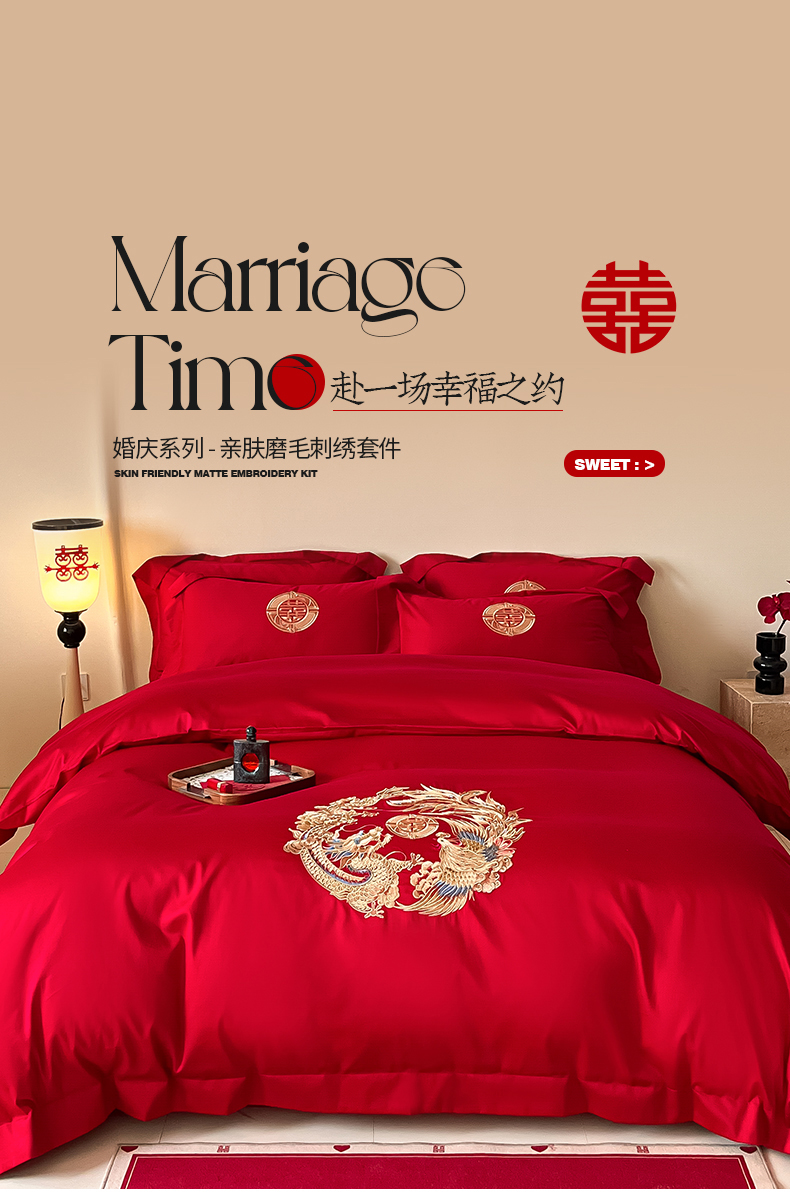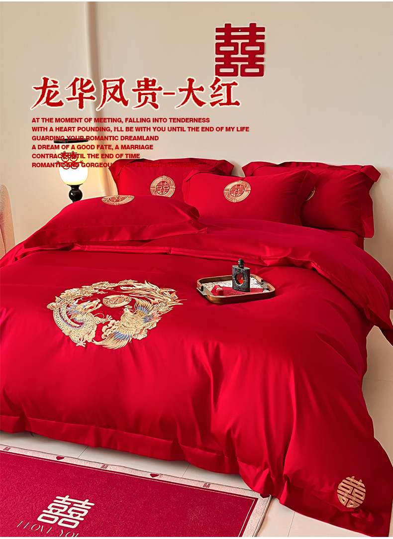 当前位置: 91家纺网 > 商品网购 > 床品套件 > 四件套 > 婚庆四件套 > 置顶家纺 2025新款亲肤磨毛刺绣婚庆四件套系列-实拍 龙华凤贵-大红