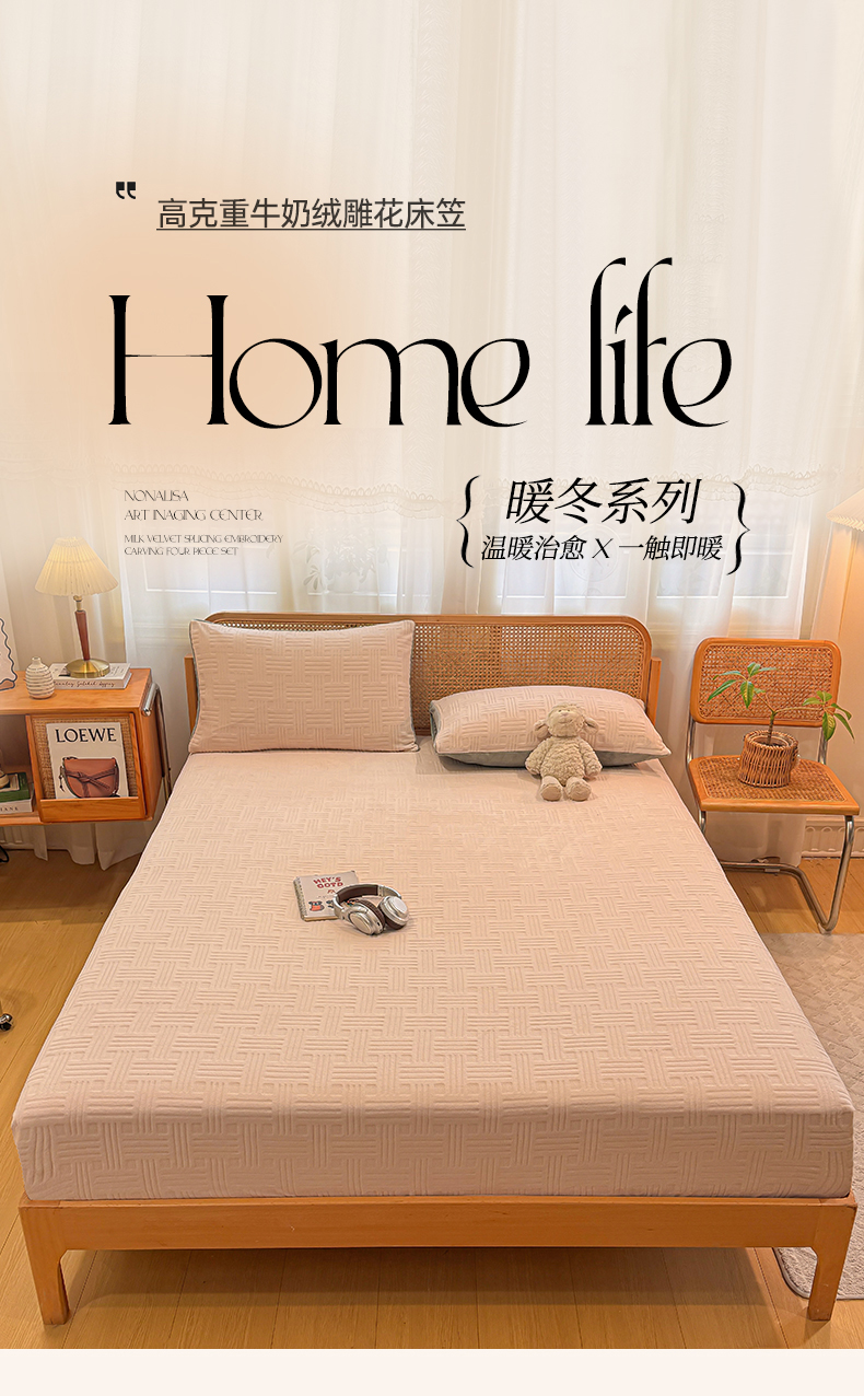 当前位置: 91家纺网 > 商品网购 > 床上用品 > 床笠 > 灰鲸 2025新款纯色简约高克重雕花牛奶绒单品床笠 糖果格-奶茶