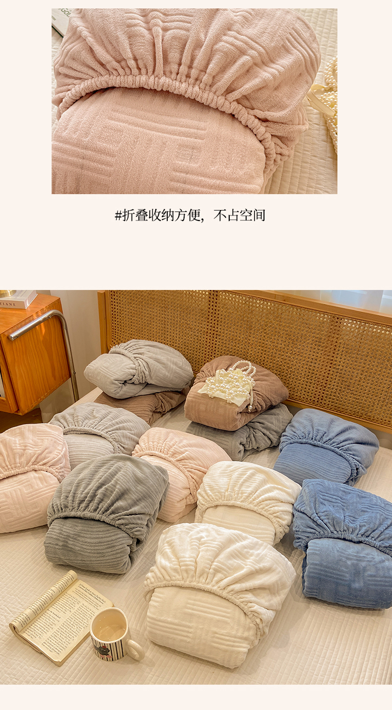 • 91家纺网 家纺一手货源 找家纺 灰鲸 2025新款纯色简约高克重雕花牛奶绒单品床笠 糖果格-奶茶