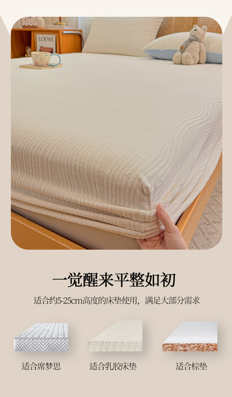 灰鲸 2025新款纯色简约高克重雕花牛奶绒单品床笠 温妮-奶昔白