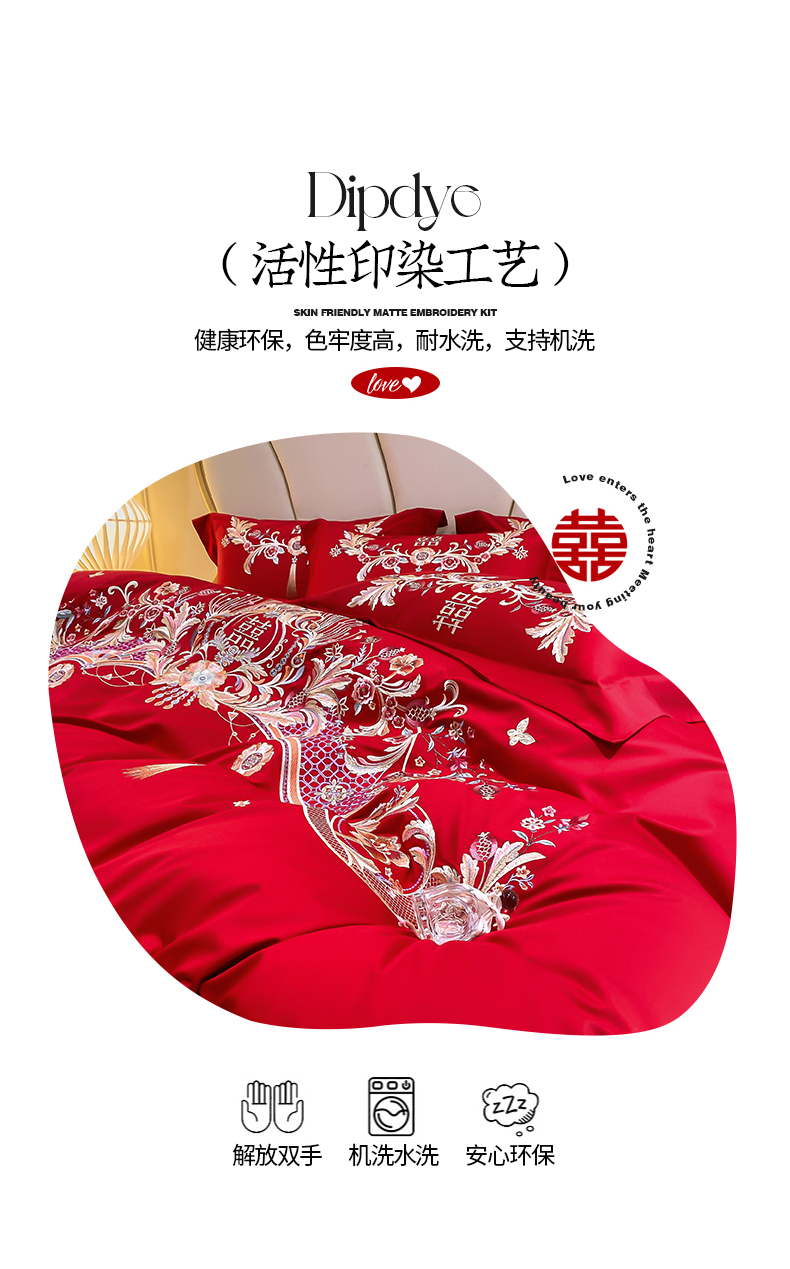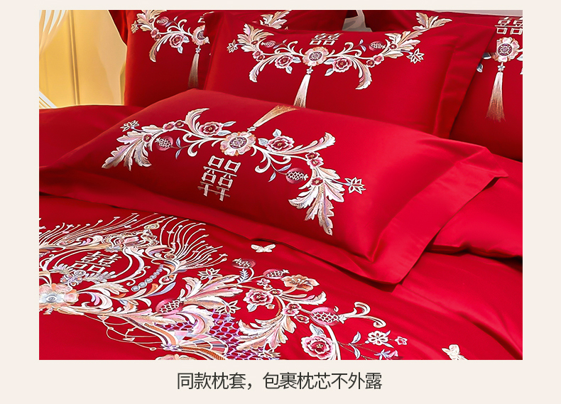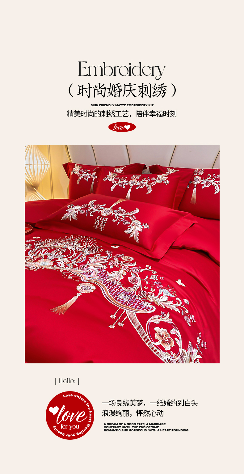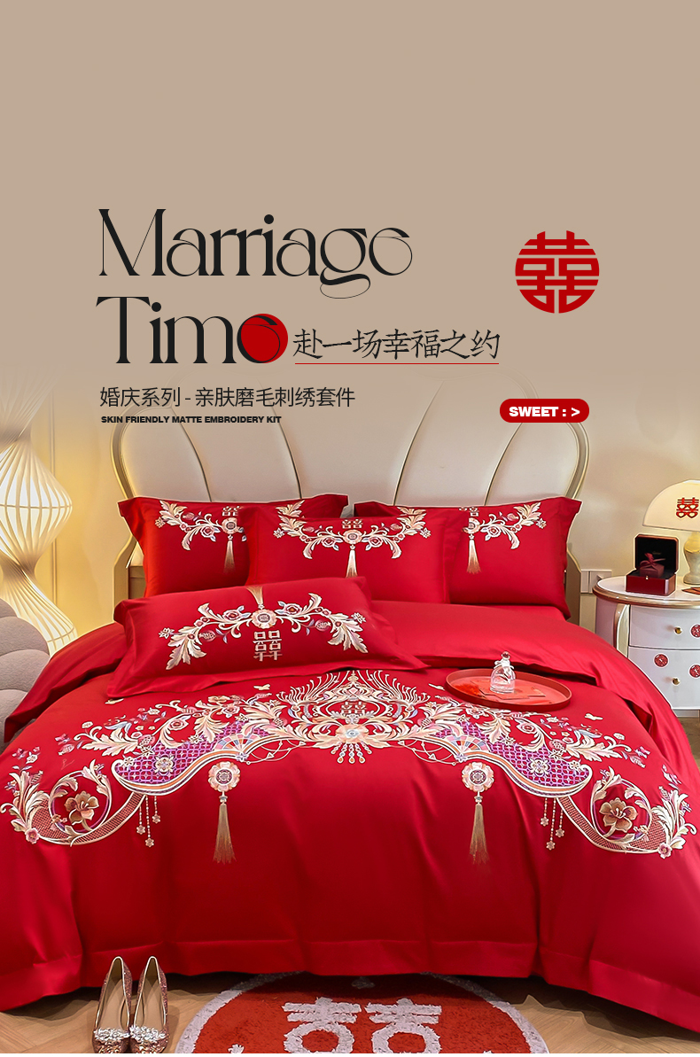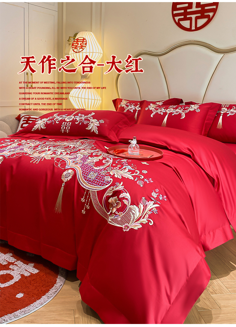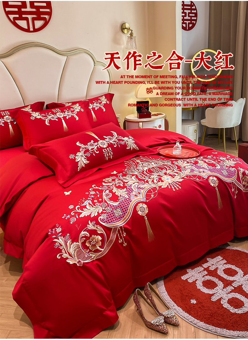当前位置: 91家纺网 > 商品网购 > 床品套件 > 四件套 > 婚庆四件套 > 置顶家纺 2025新款亲肤磨毛刺绣婚庆四件套系列-棚拍 天作之合-大红