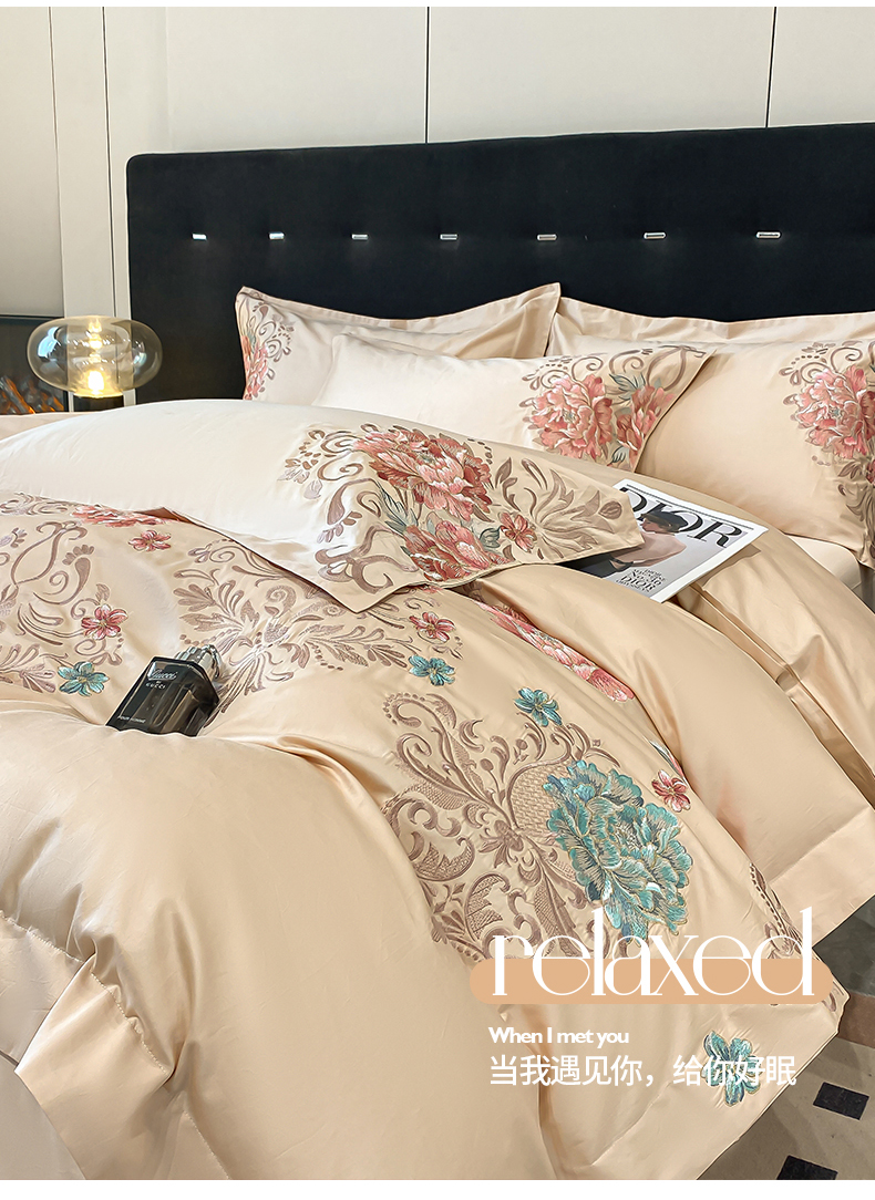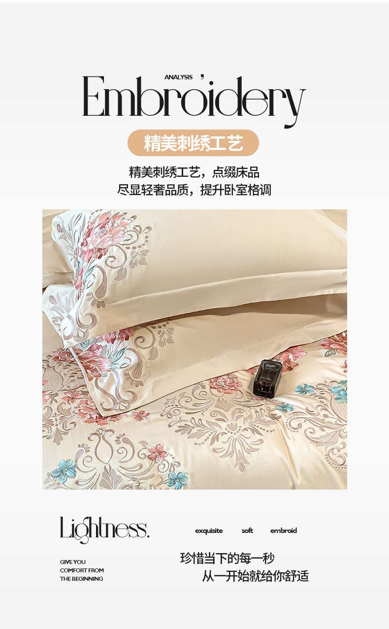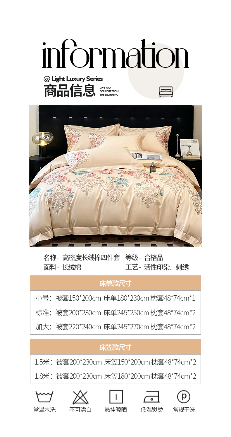 商品名称:(总)置顶家纺 2025新款13372全棉拼接刺绣四件套-盛世花悦