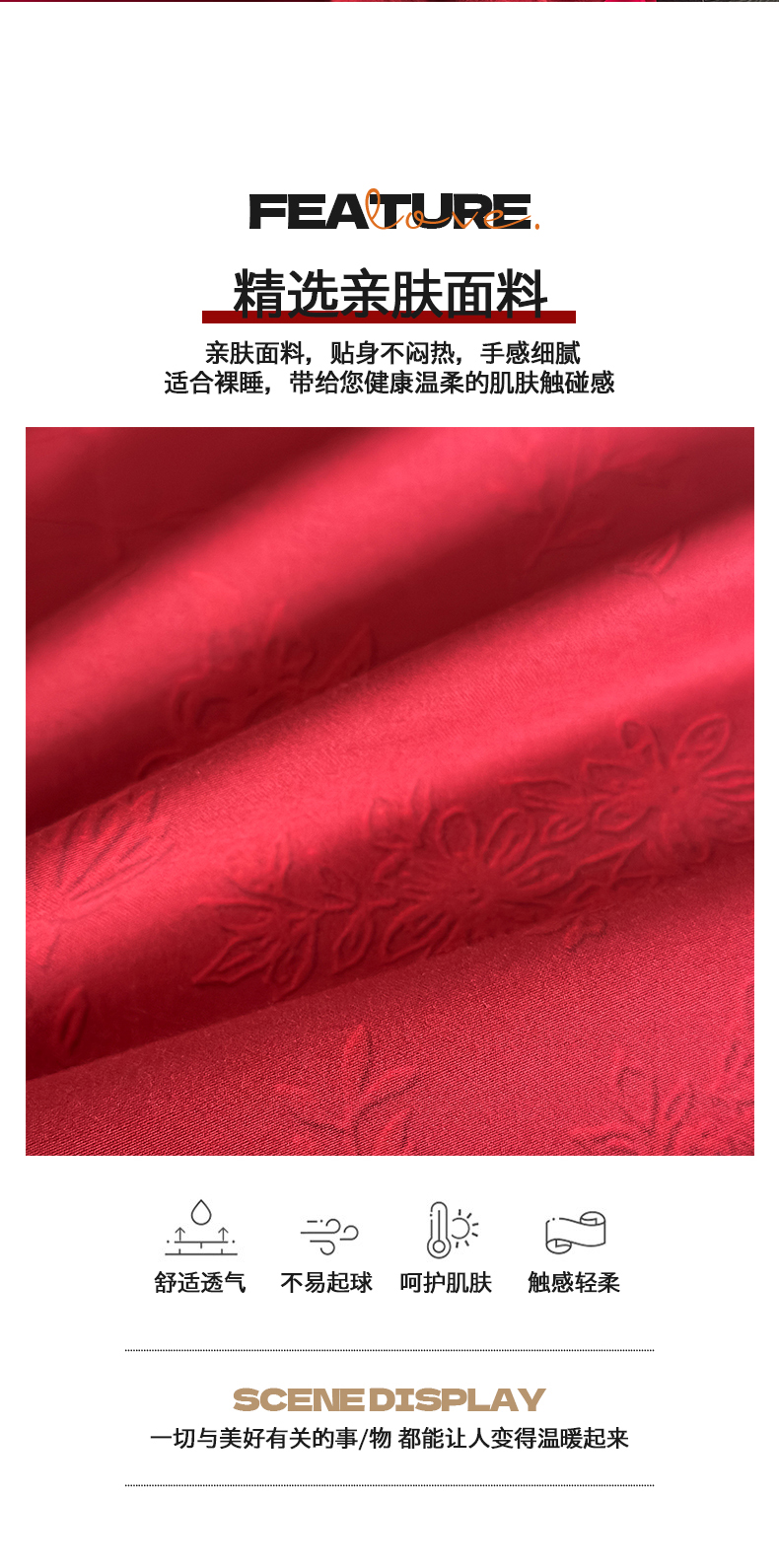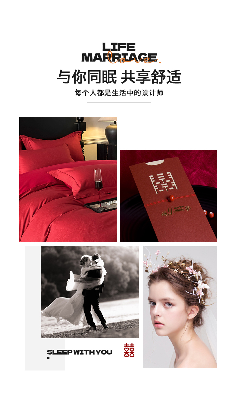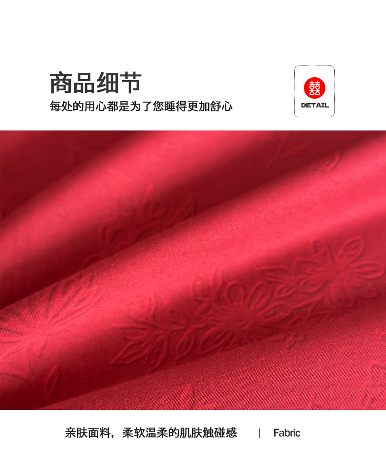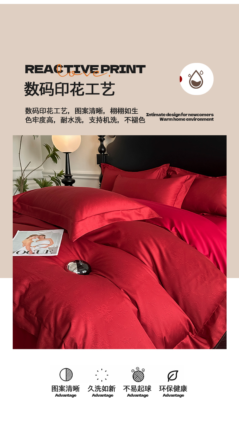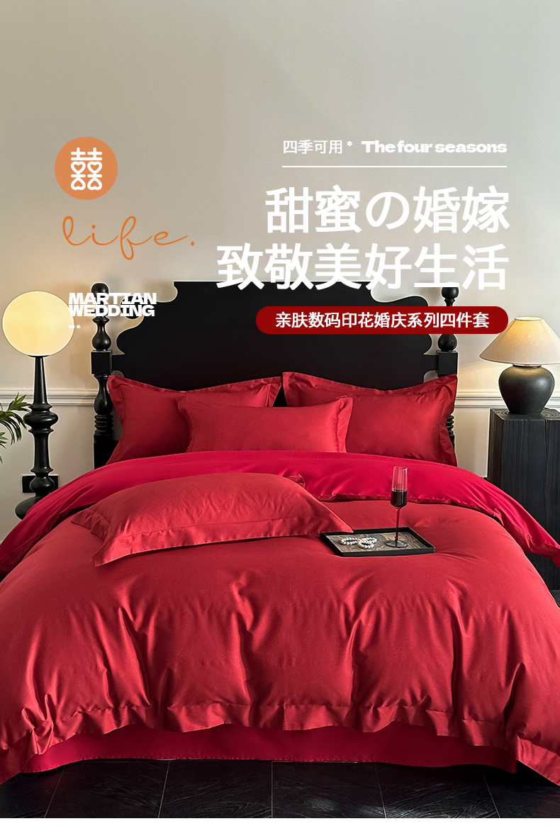 商品名称:置顶家纺 2025新款亲肤数码印花四件套-婚庆系列 唯爱你-温馨红