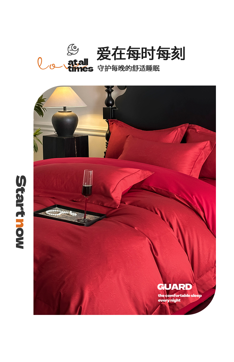 置顶家纺 2025新款亲肤数码印花四件套-婚庆系列 唯爱你-温馨红