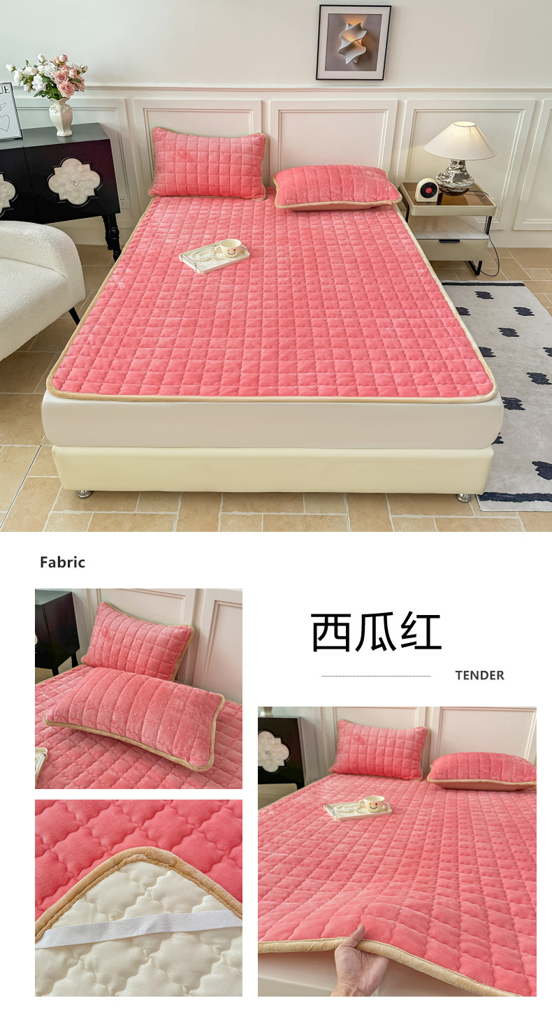 商品名称:棉森家纺 2025新款亲肤舒适高克重牛奶绒夹棉床褥床垫垫子 西瓜红