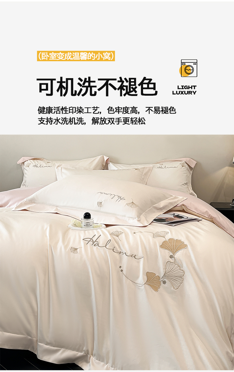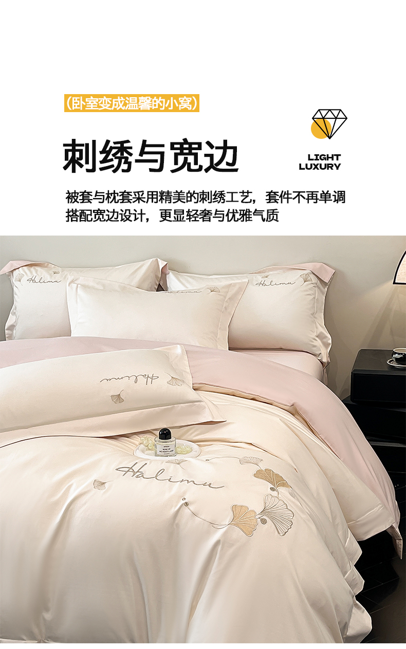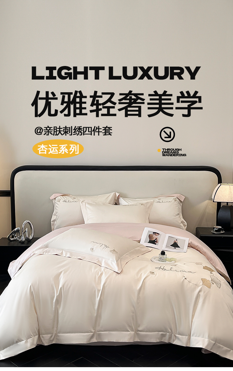 当前位置: 91家纺网 > 商品网购 > 床品套件 > 四件套 > 全棉普通四件套 > 置顶家纺 2025新款亲肤刺绣四件套-杏运 杏运-白+粉