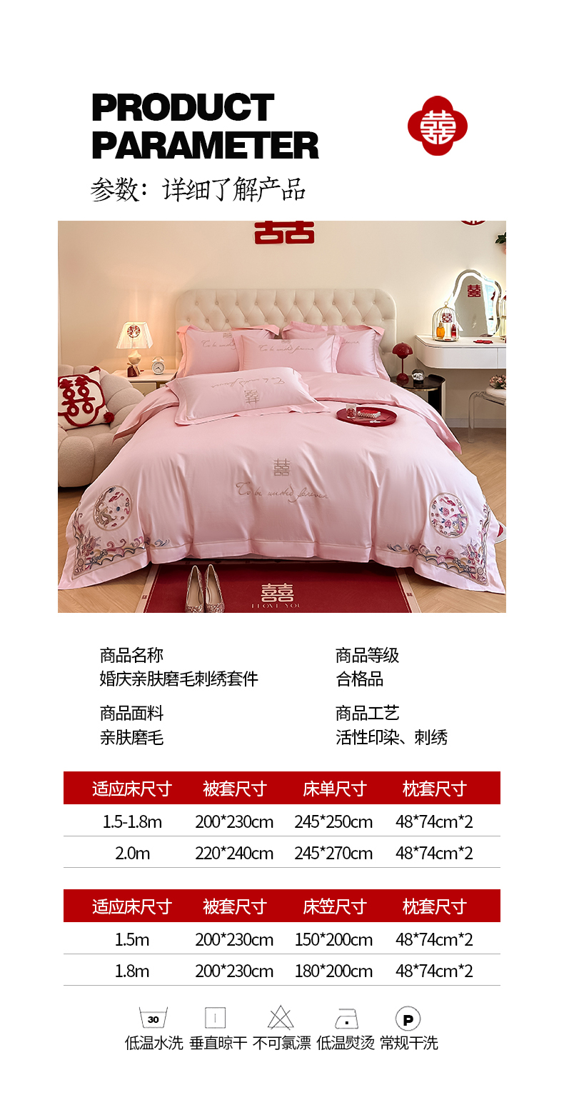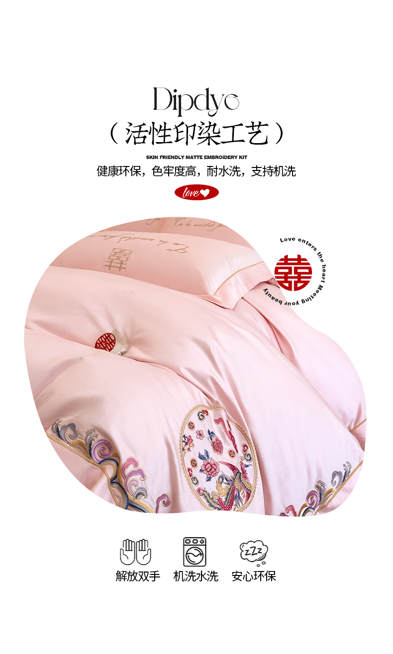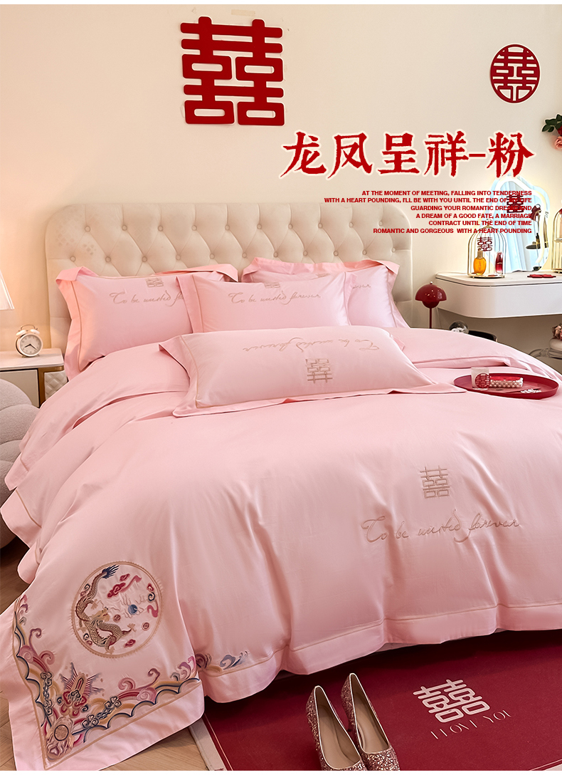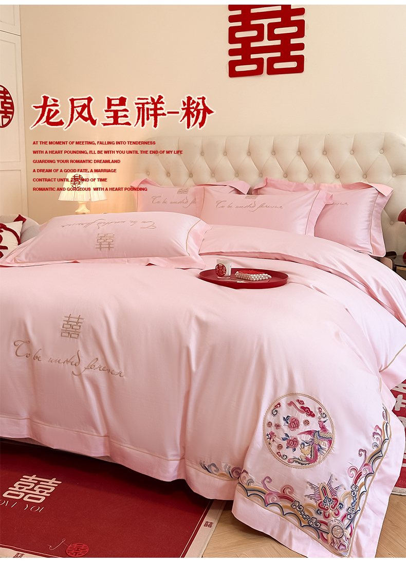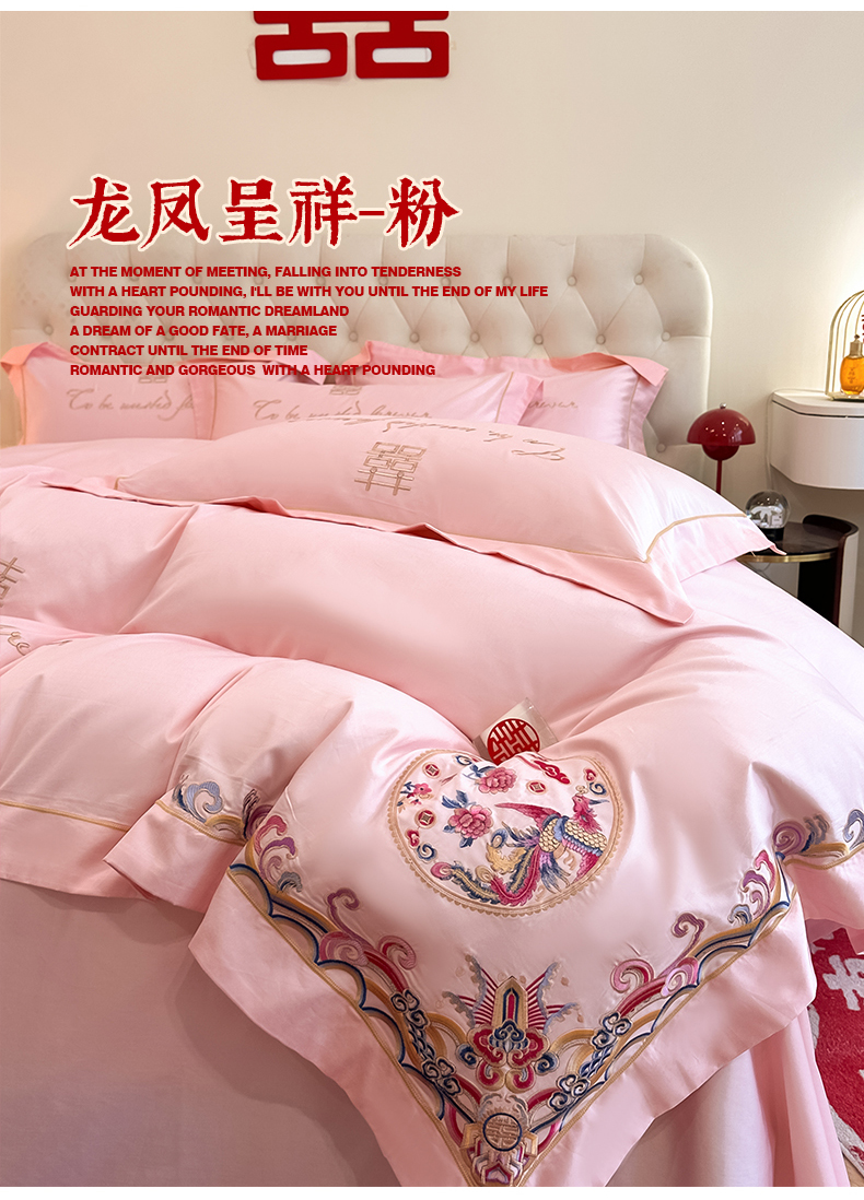 当前位置: 91家纺网 > 商品网购 > 床品套件 > 四件套 > 婚庆四件套 > 置顶家纺 2025新款亲肤刺绣婚庆磨毛四件套 龙凤呈祥-粉