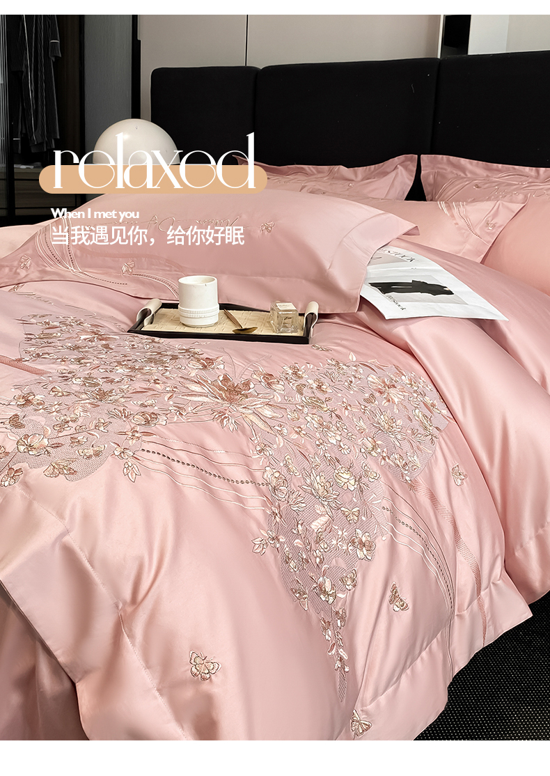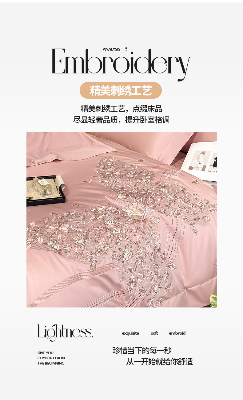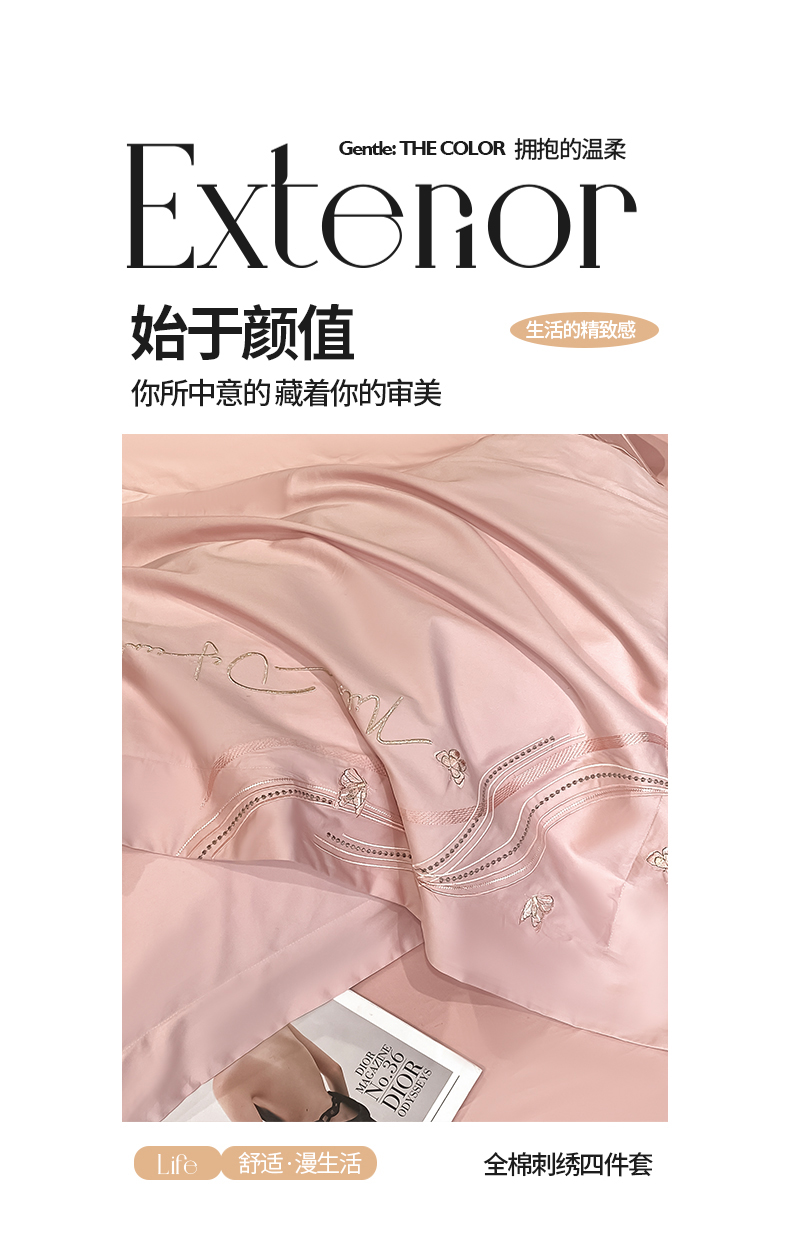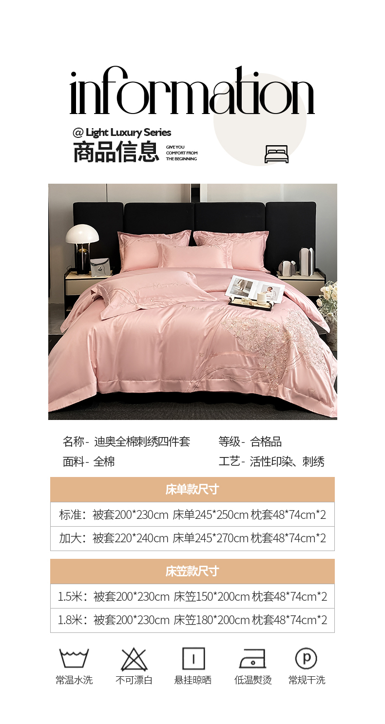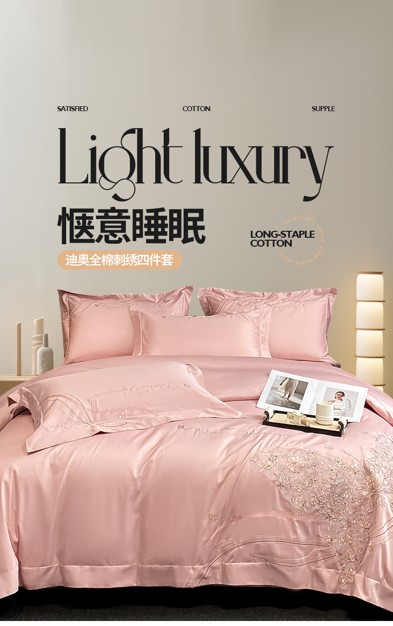 商品名称:置顶家纺 2025新款全棉纯棉刺绣四件套迪奥系列 迪奥-浅豆沙