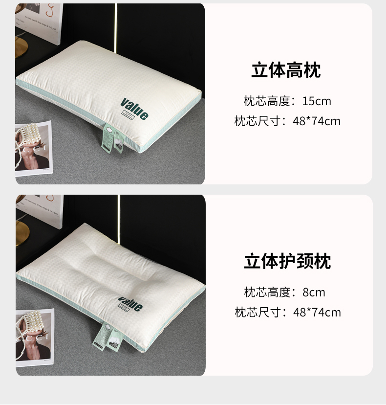 (总)大熊枕芯 2025新款A类云柔舒适value枕头枕芯,立体高枕,组合图仅供展示,单边中枕,决明子护颈枕,立体护颈枕