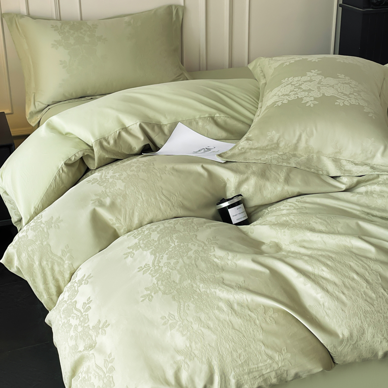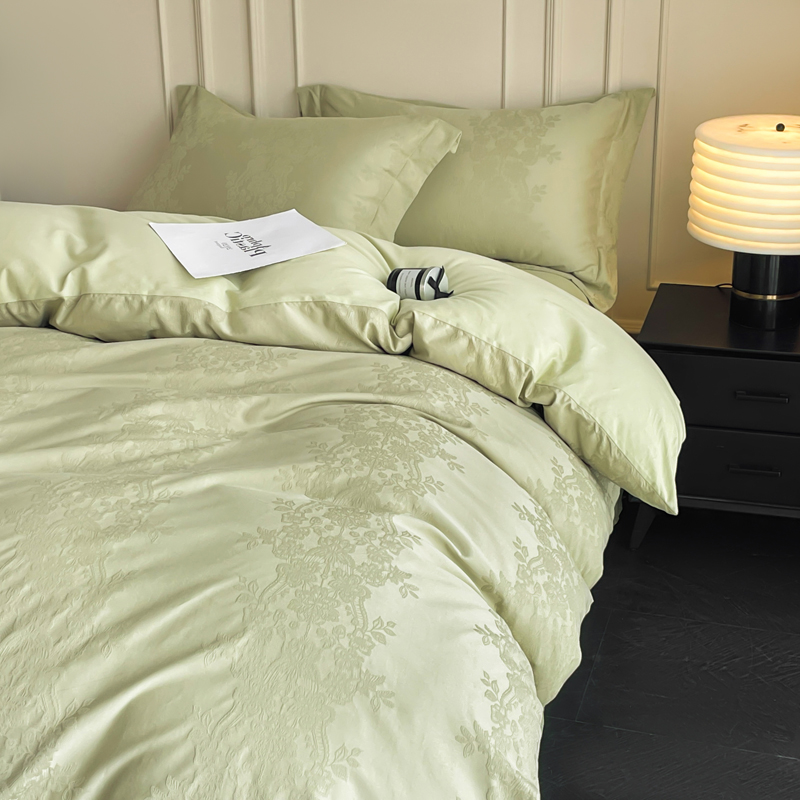 云锦家居 2025新款秋冬50双股磨毛提花四件套 繁花-嫩青