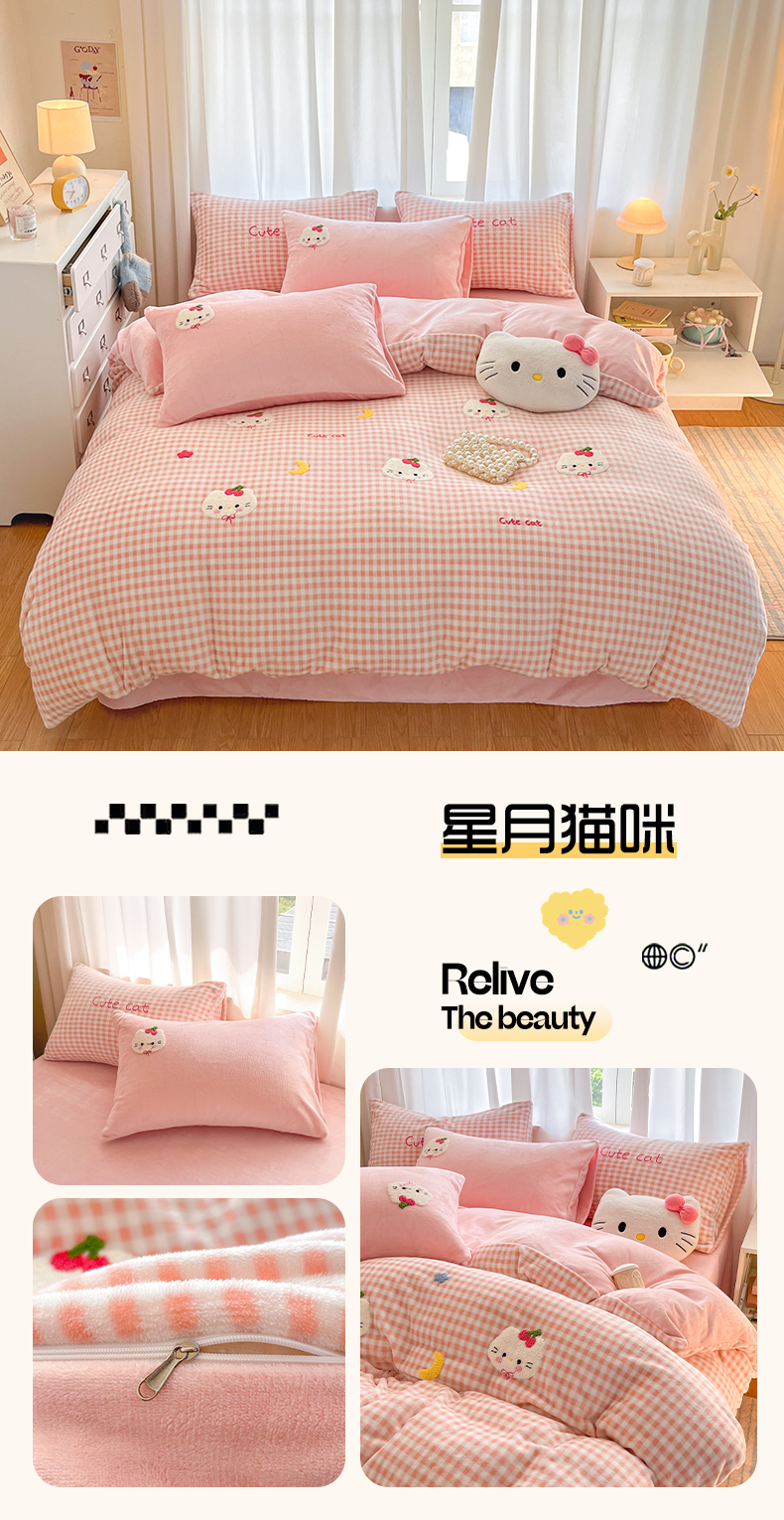(总)如一 2025新款卡通毛巾绣系列牛奶绒四件套,卡皮柿子,爱心天使,豹纹黑皮,草莓灰猫,蛋糕小狗,粉格小猫,海绵宝宝,快乐企鹅,拉布饼干,蓝格黑猫,领结粉兔,苹果拉布,竖条西高,晚安小象,星星宝贝,星星木马,星星派对,星星苹果,星月猫咪,樱桃黑猫