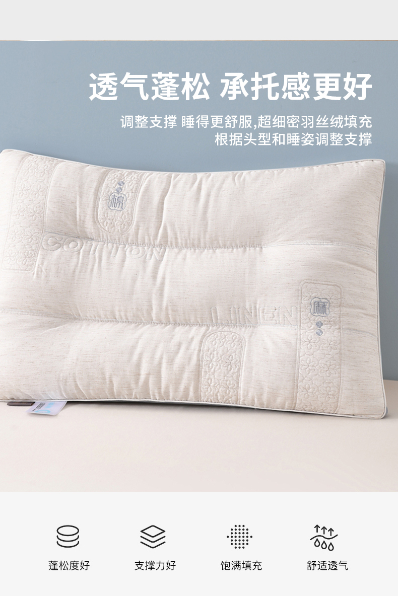 商品名称:(总)仁宇枕业 2025新款新品 棉麻羽丝绒舒适定型枕头枕芯