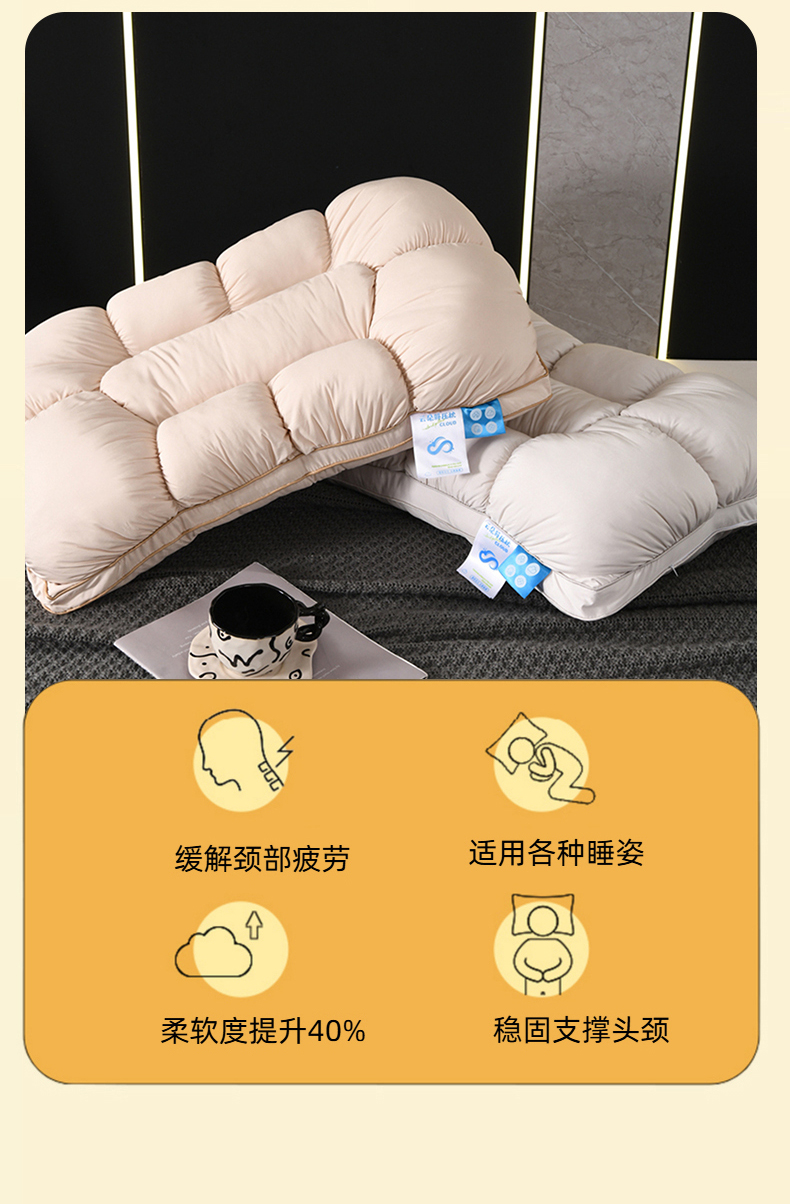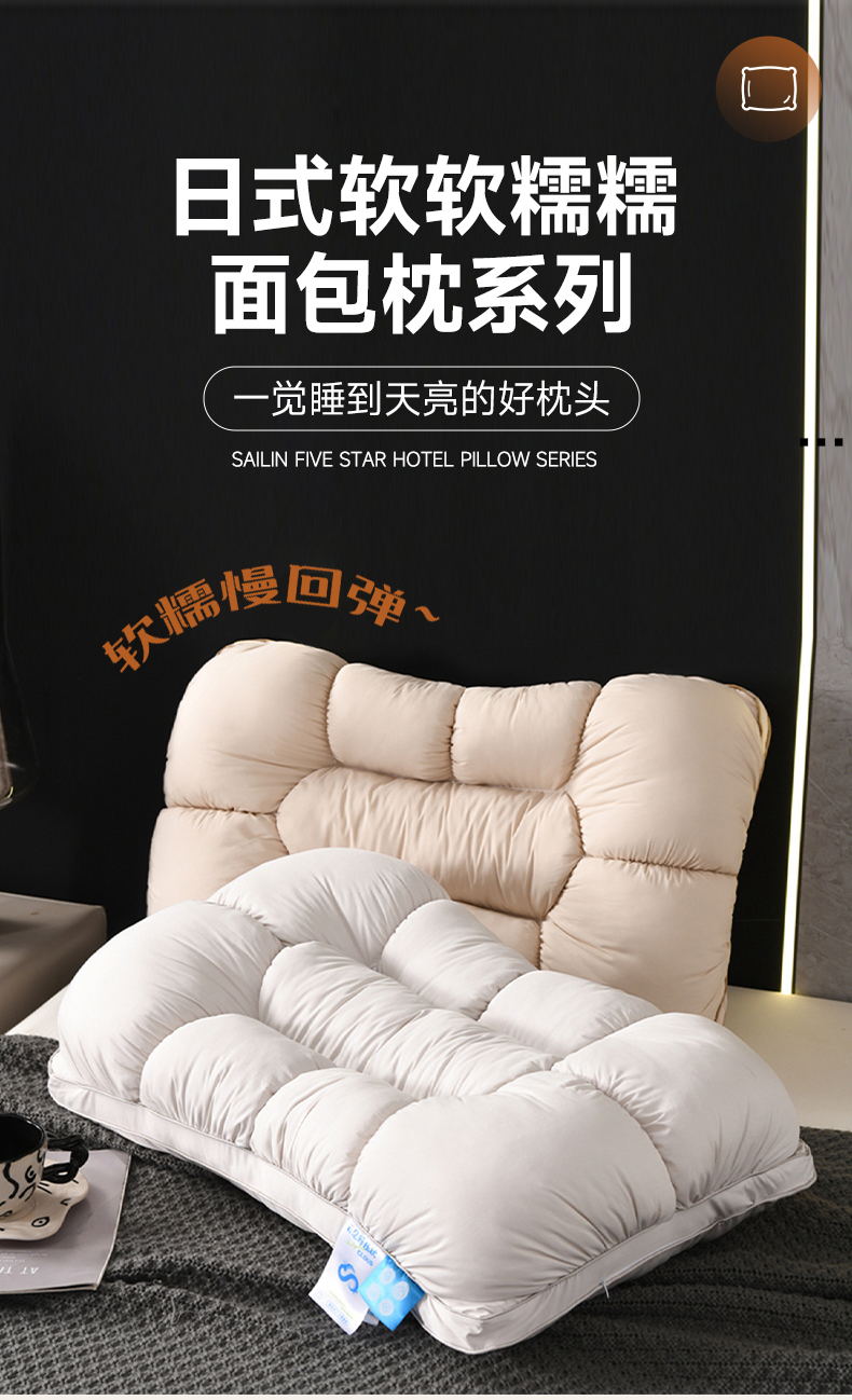当前位置: 91家纺网 > 商品网购 > 枕头/枕芯/保健枕/颈椎枕 > 枕头枕芯 > (总)仁宇枕业 2025新款新品 日式软软糯糯面包羽丝绒舒适枕头枕芯