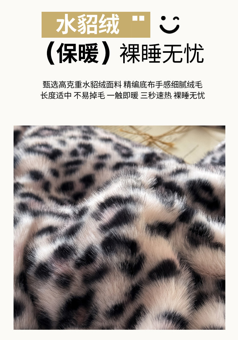 (总)九花鹿 2025新款丹麦皮草绒水貂绒盖毯毛毯毯子-豹纹,豹纹粉,豹纹灰,豹纹咖