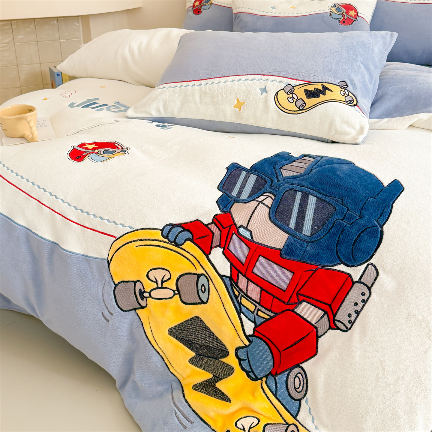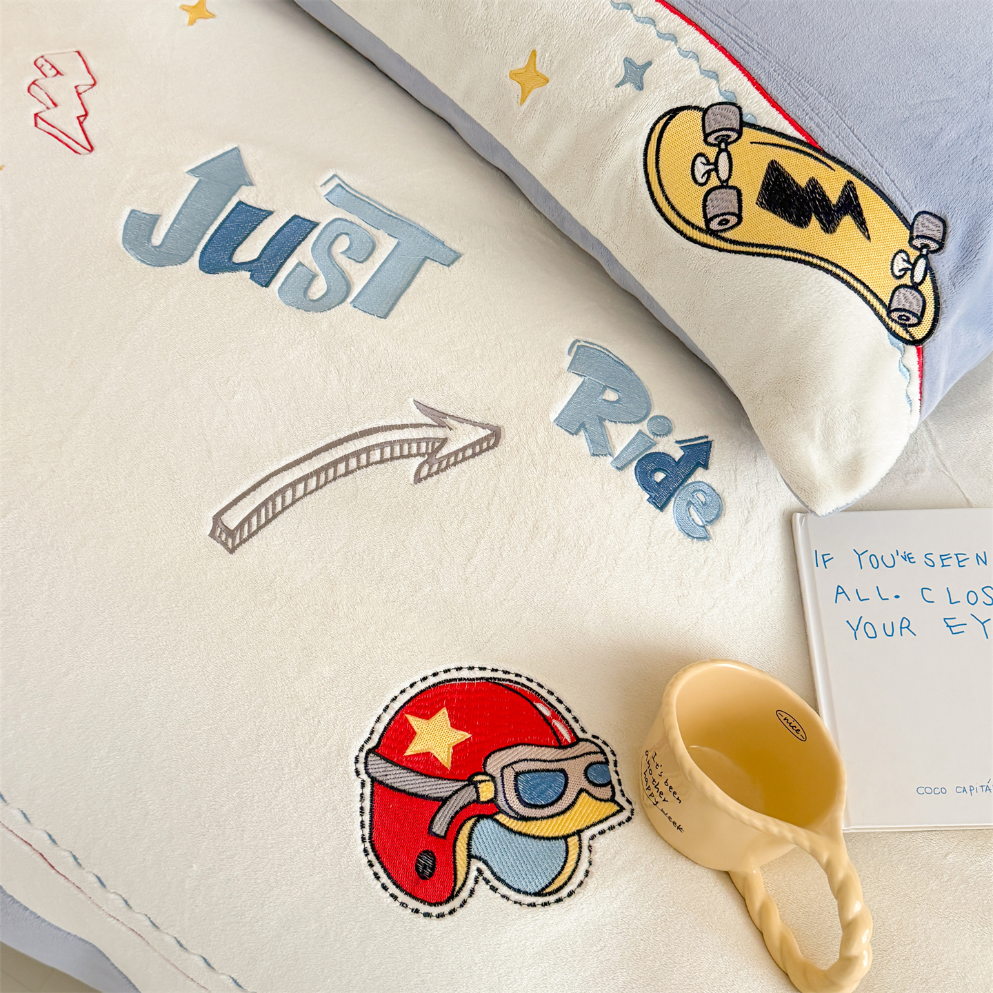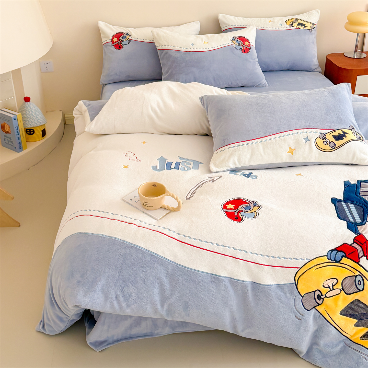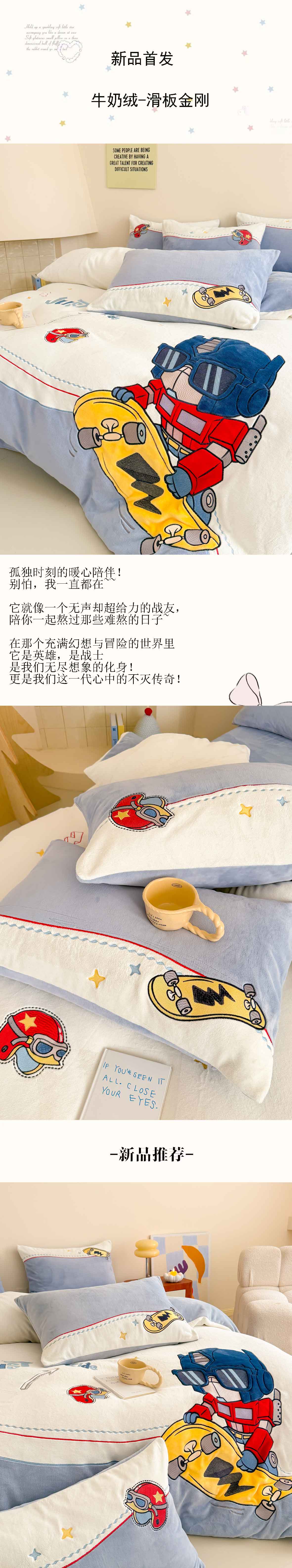 (总)2025冬季新品MBT工艺款加厚230g高克重牛奶绒绣花四件套-滑板金刚 会员减20元【控价:券后298/328起】