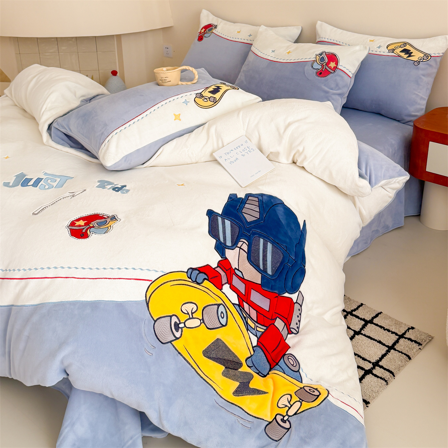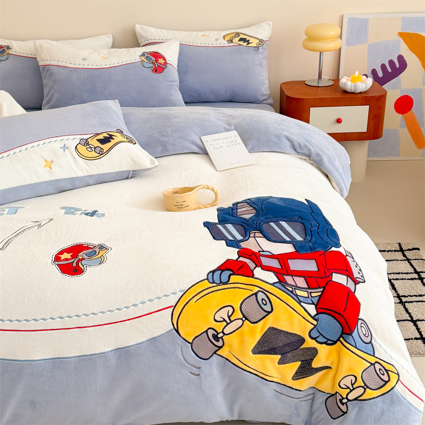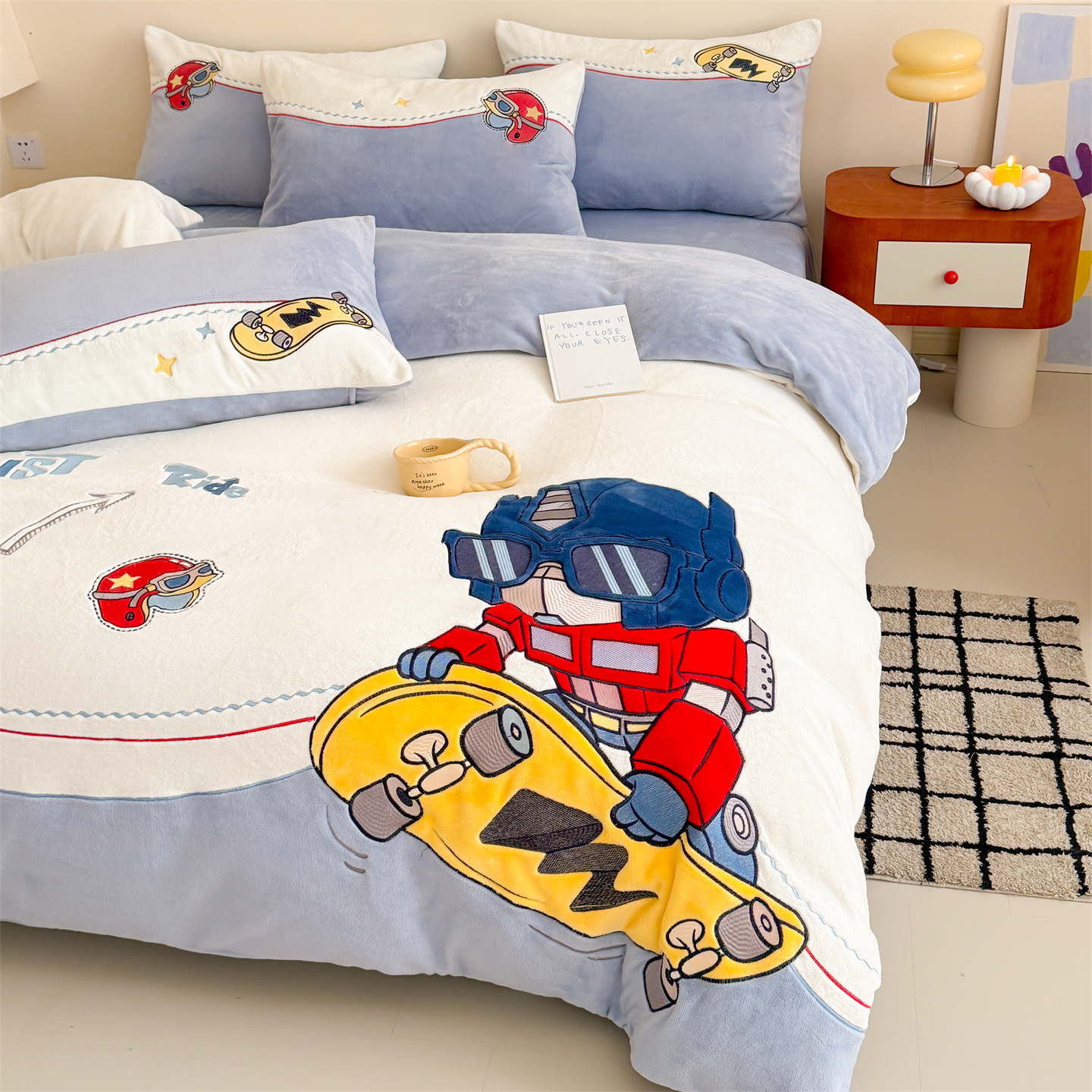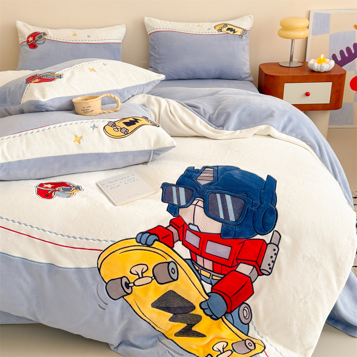 (总)2025冬季新品MBT工艺款加厚230g高克重牛奶绒绣花四件套-滑板金刚 会员减20元【控价:券后298/328起】