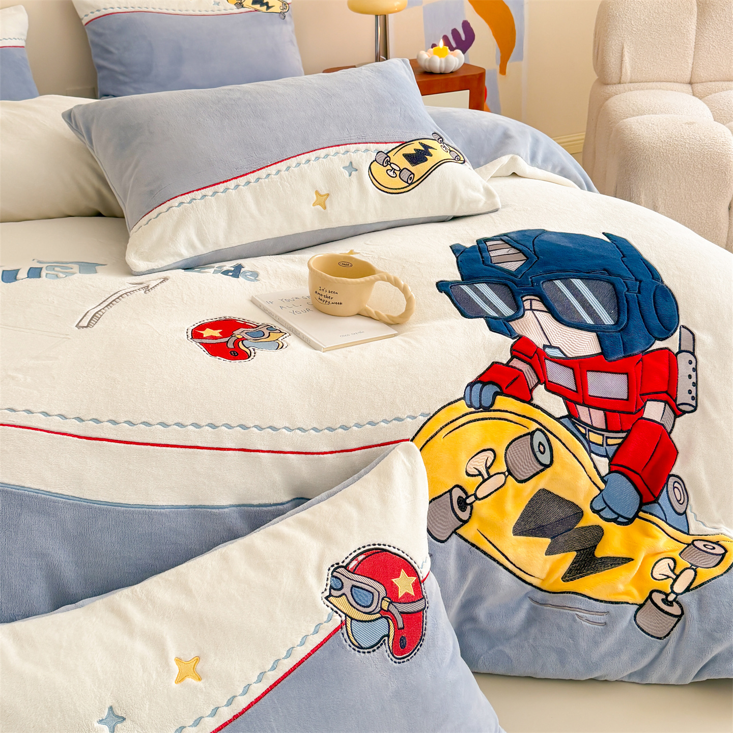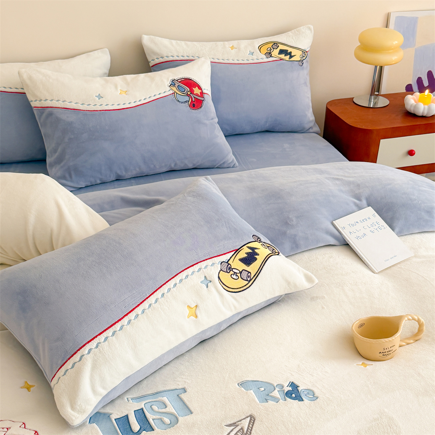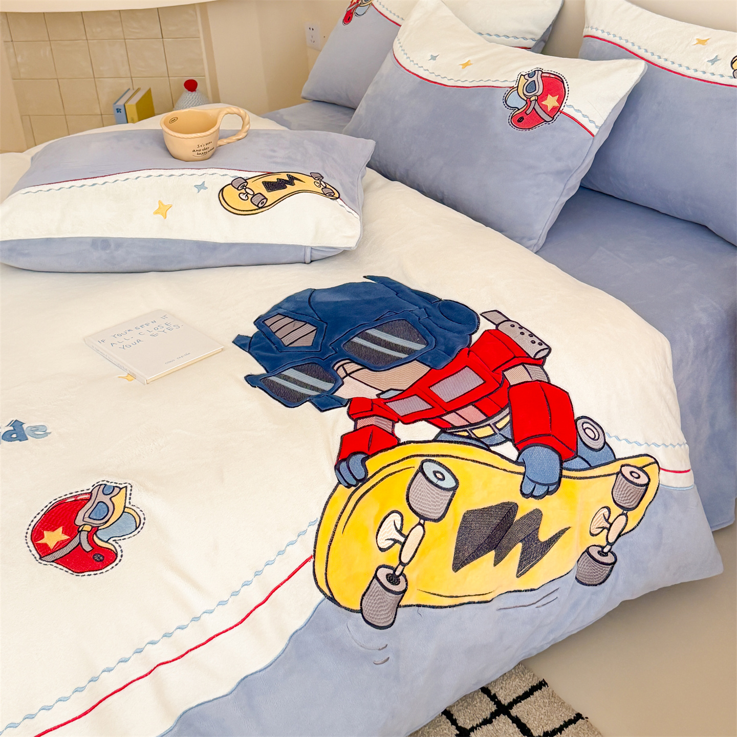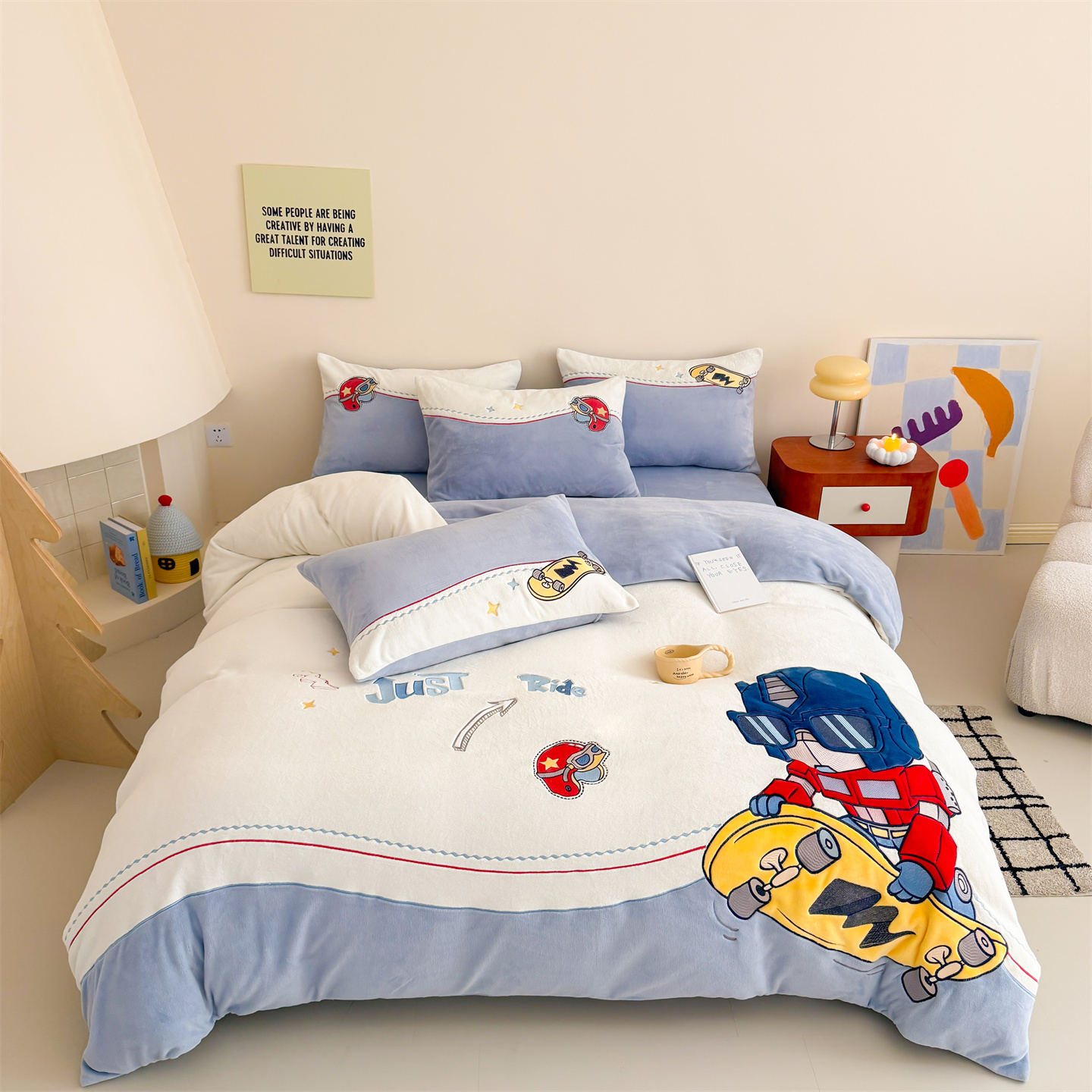 (总)2025冬季新品MBT工艺款加厚230g高克重牛奶绒绣花四件套-滑板金刚 会员减20元【控价:券后298/328起】