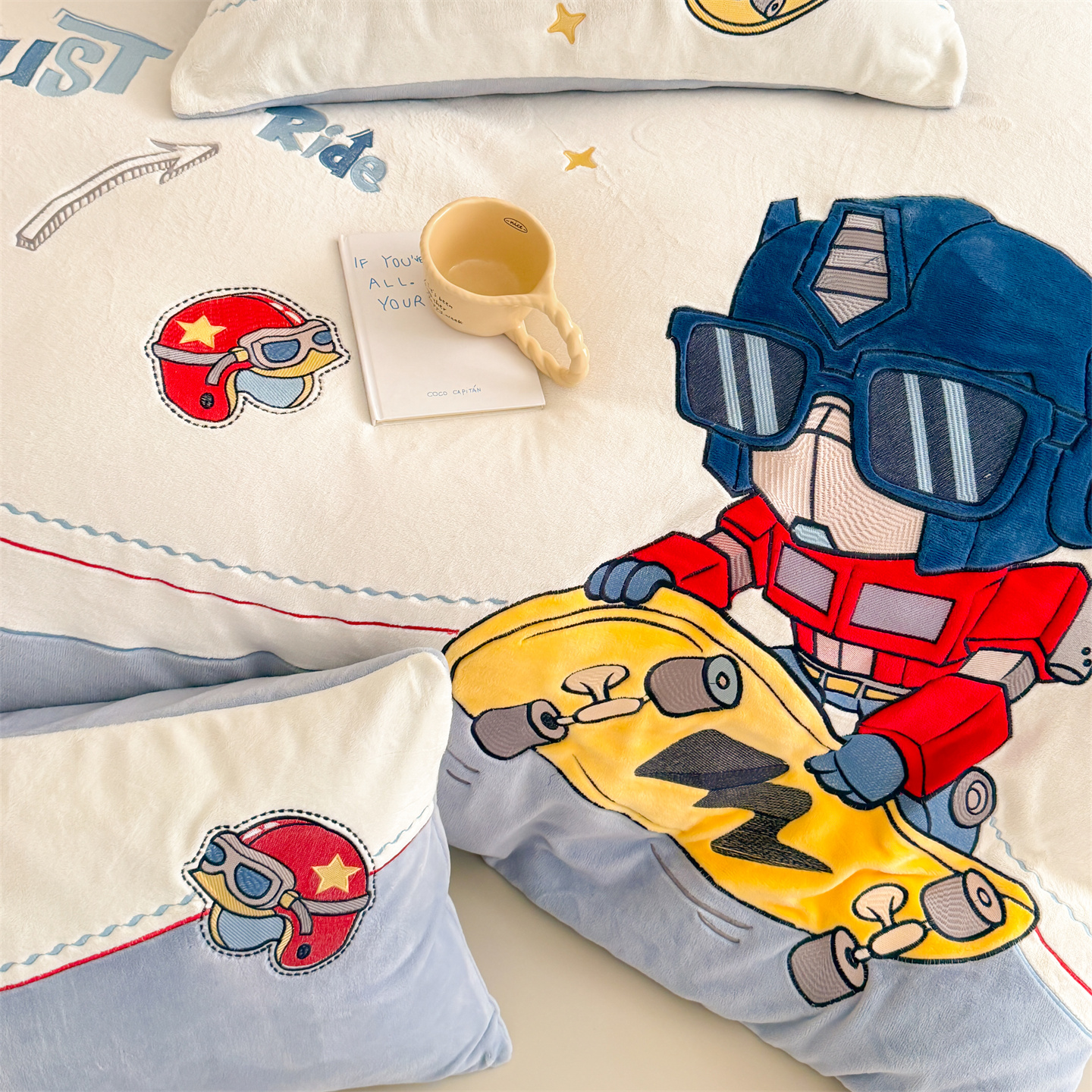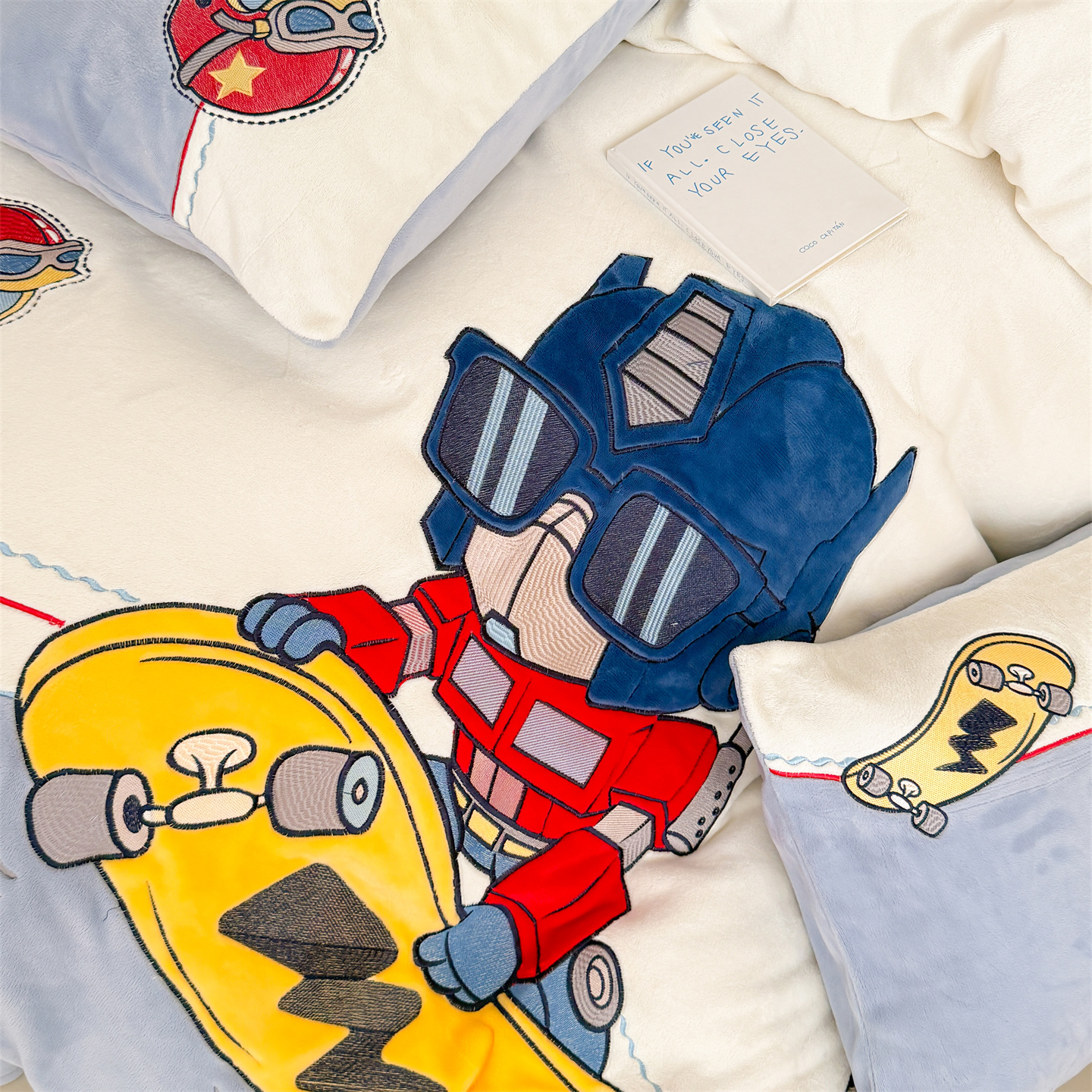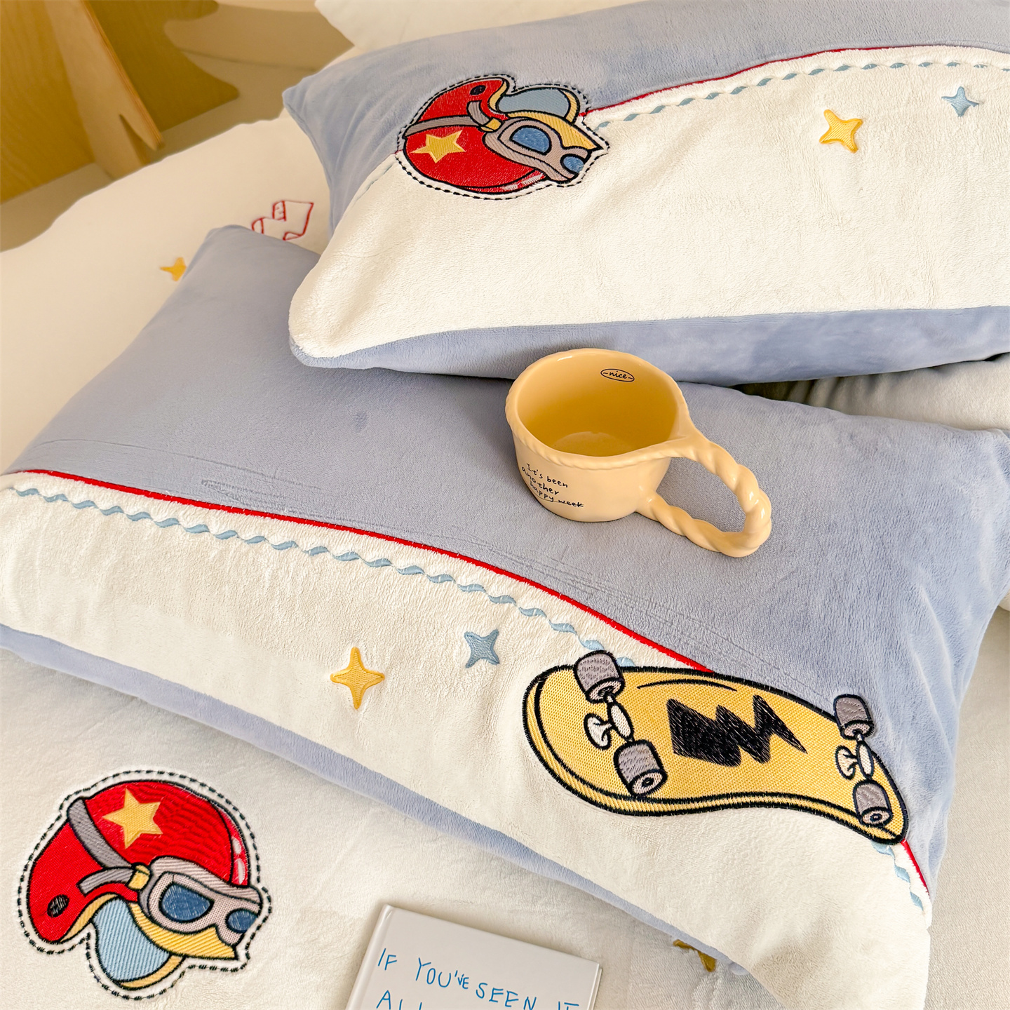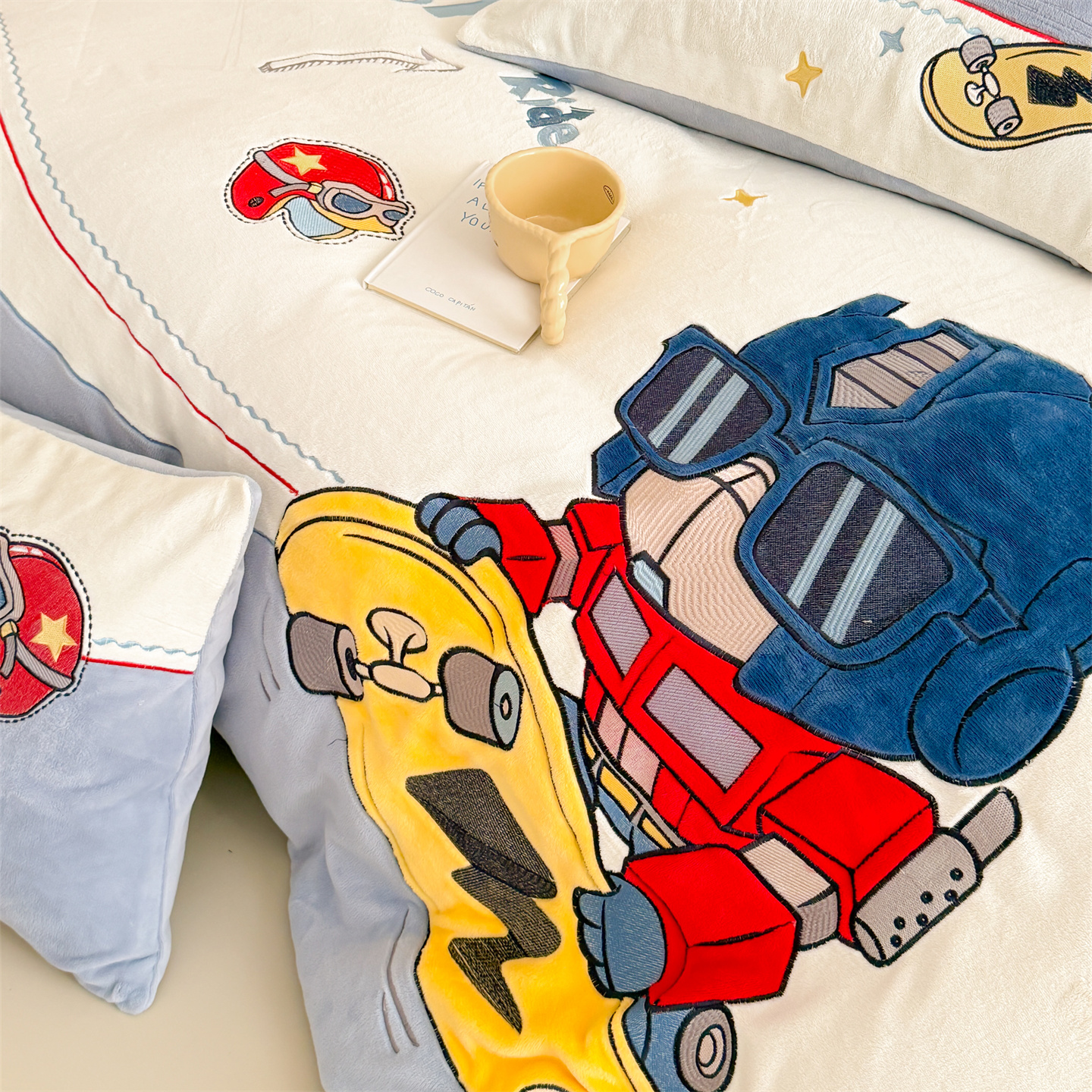 (总)2025冬季新品MBT工艺款加厚230g高克重牛奶绒绣花四件套-滑板金刚 会员减20元【控价:券后298/328起】