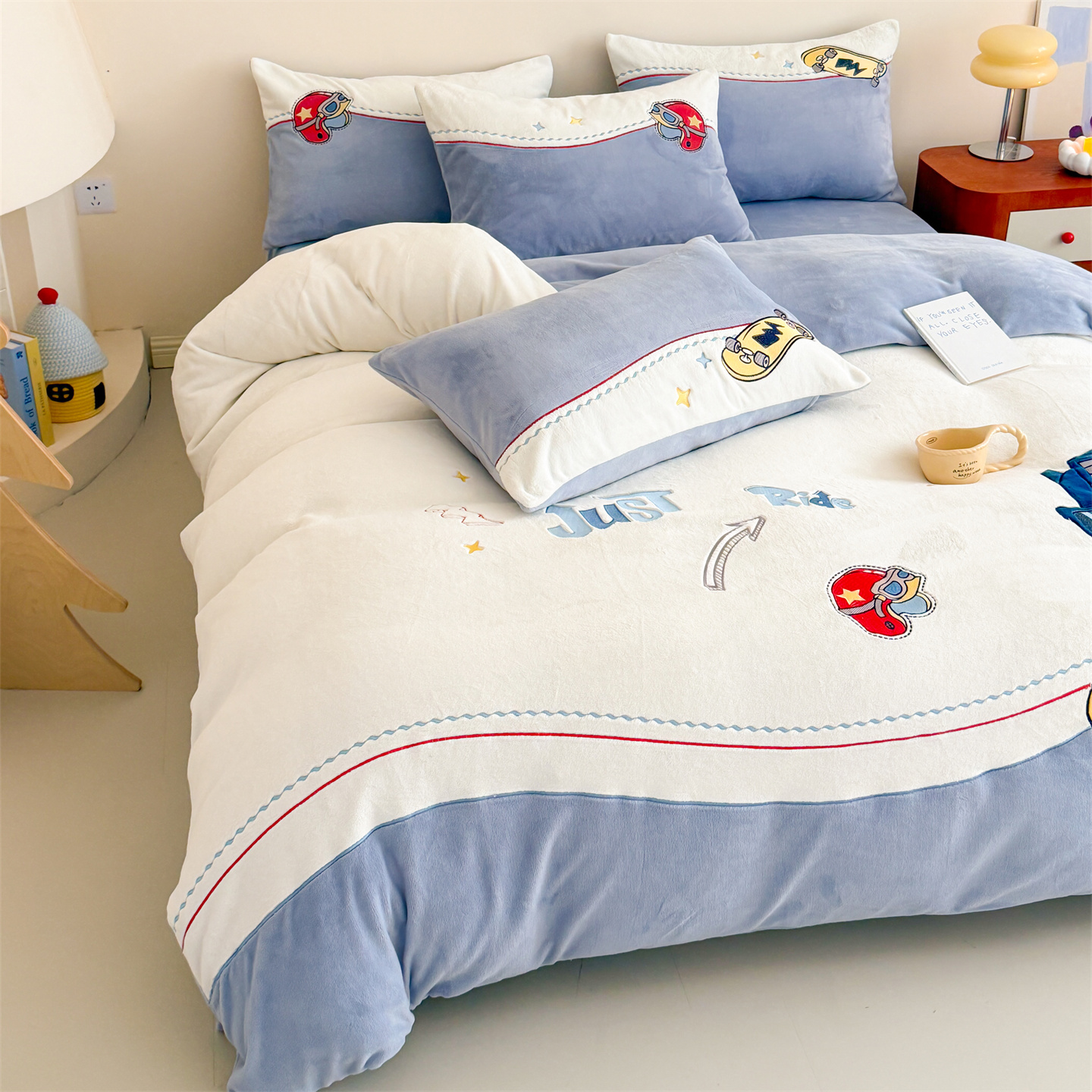 (总)曼布缇 2025新款青少年加厚牛奶绒绣花四件套-飞行日记(全部送抱枕 会员减20元 券后288起),飞行日记-送抱枕