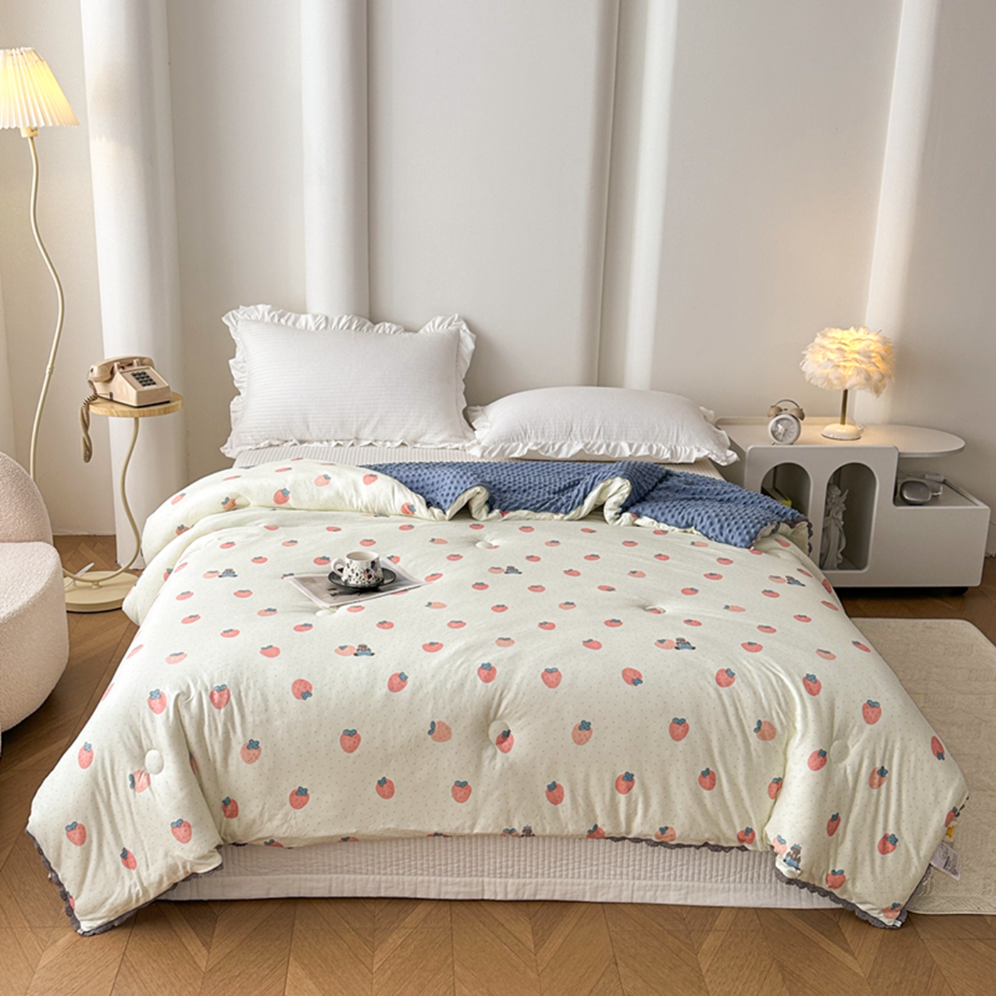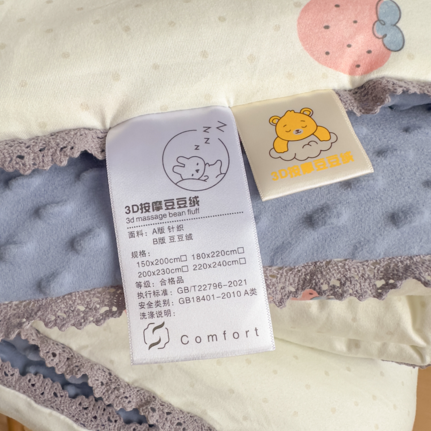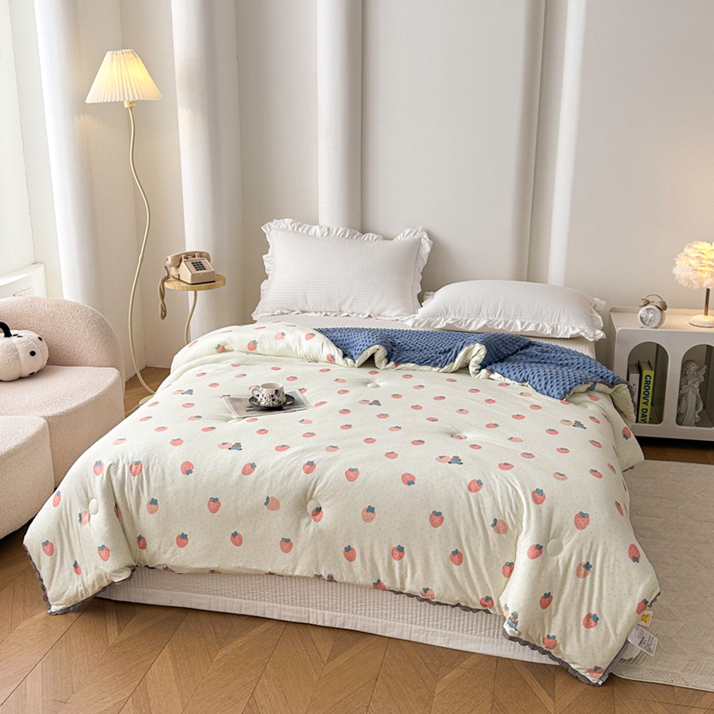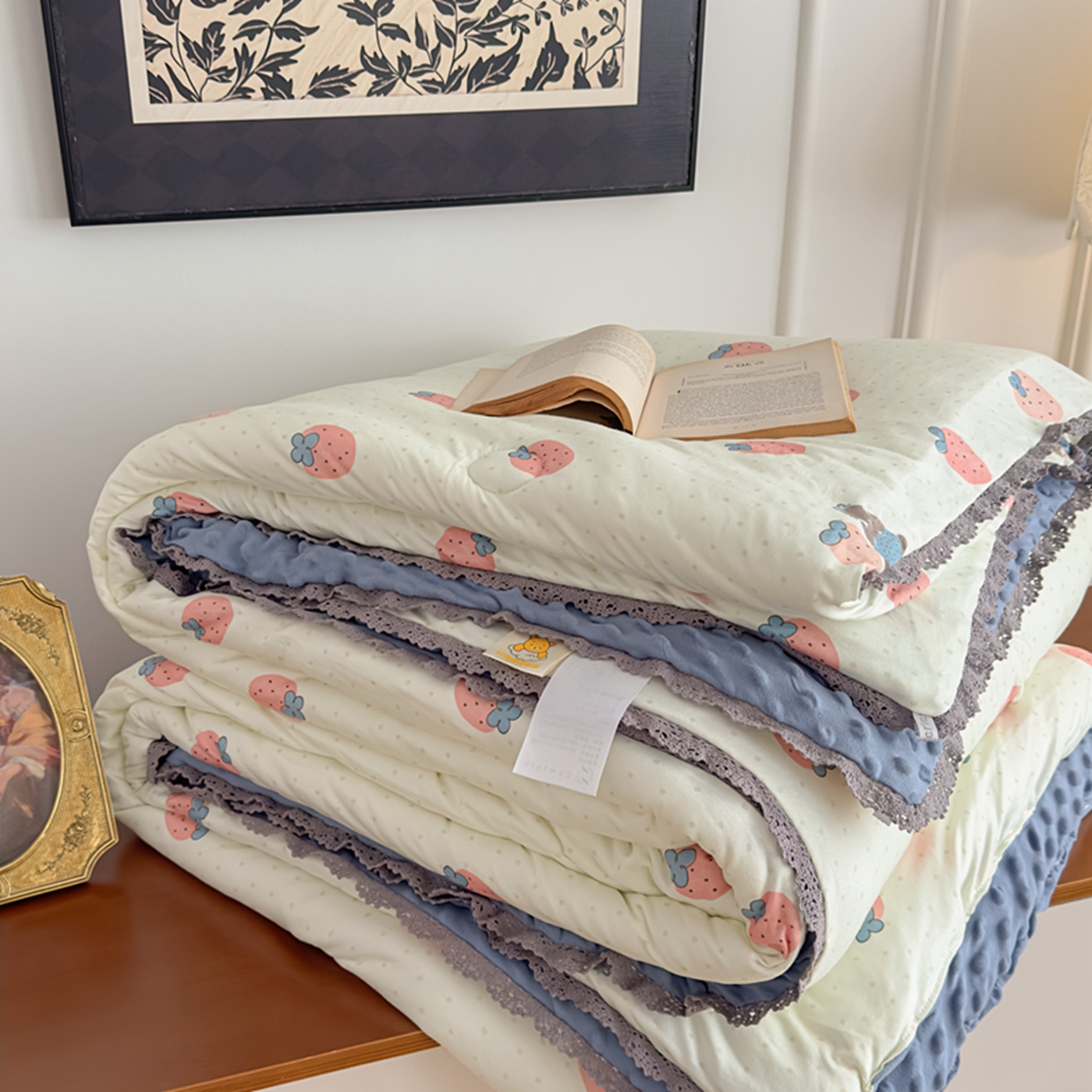 商品名称:睡美美家纺 2025新款秋冬亲肤柔软豆豆绒花边款冬被被芯 草莓日记