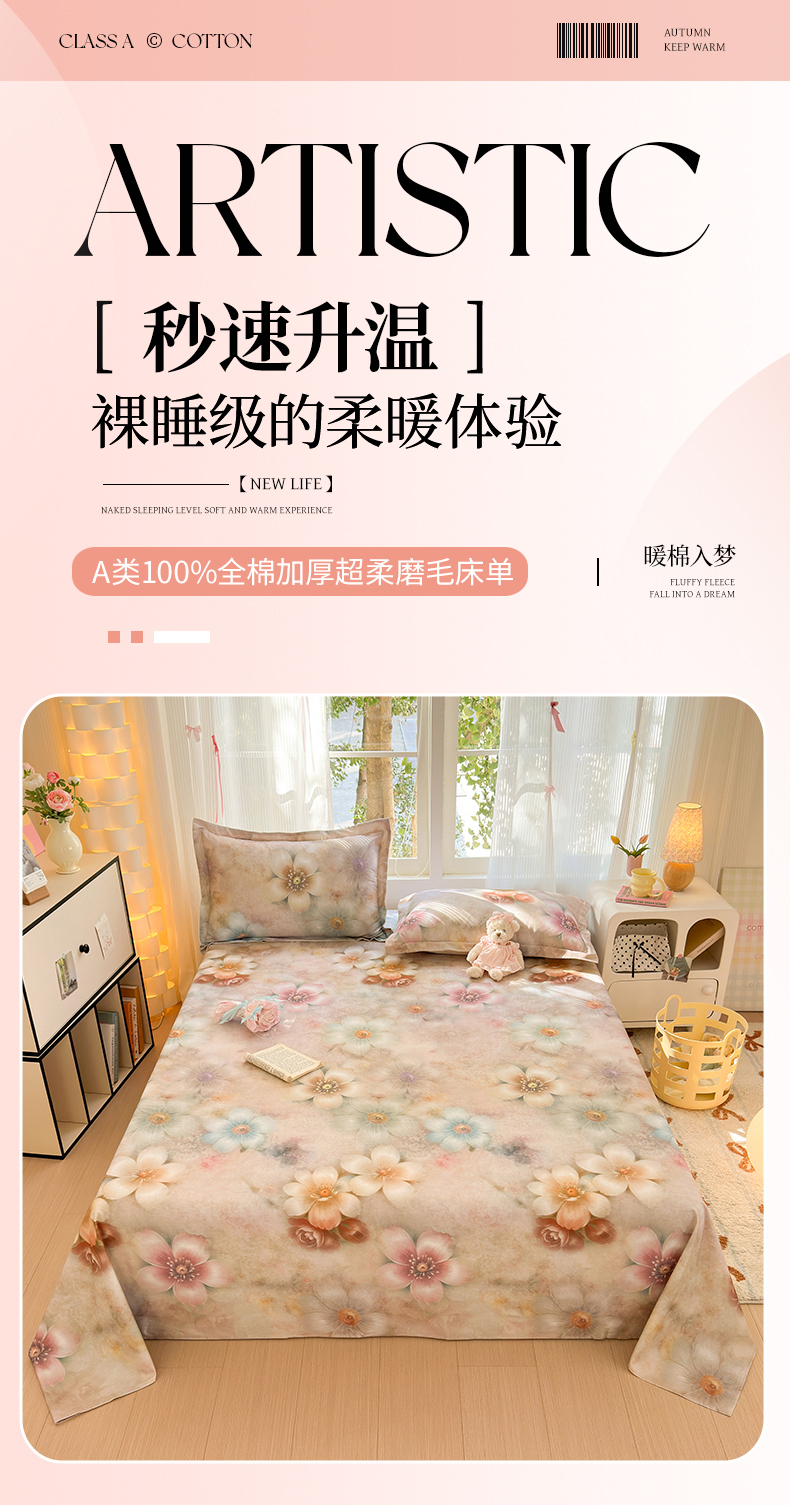 • 91家纺网 家纺一手货源 找家纺 拾物记 2025新款A类全棉纯棉加厚超柔磨毛单床单(提供买家秀质检报告和实验视频) 听妍