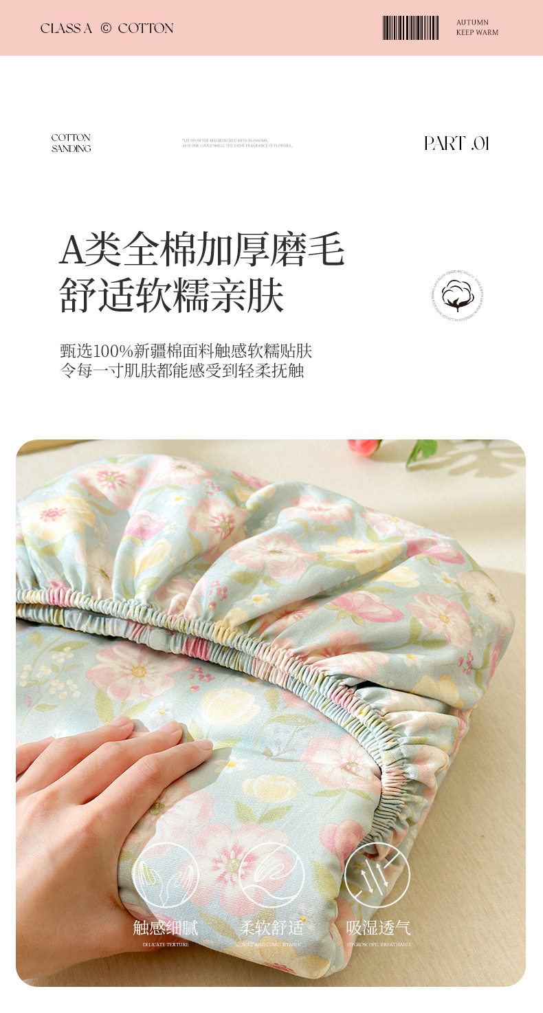 • 91家纺网 家纺一手货源 找家纺 拾物记 2025新款A类全棉纯棉加厚超柔磨毛单床笠(提供买家秀质检报告和实验视频) 樱絮仙踪-兰