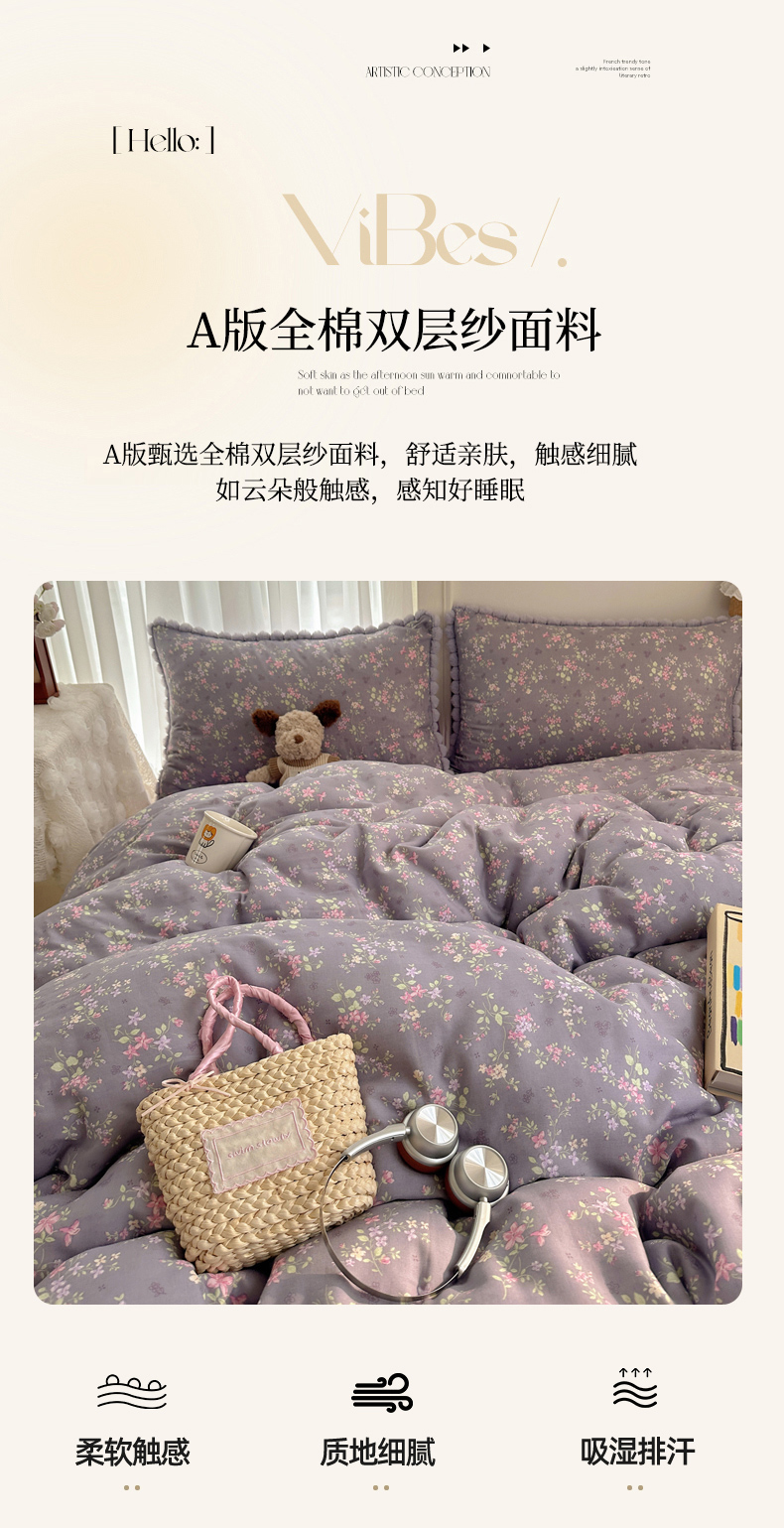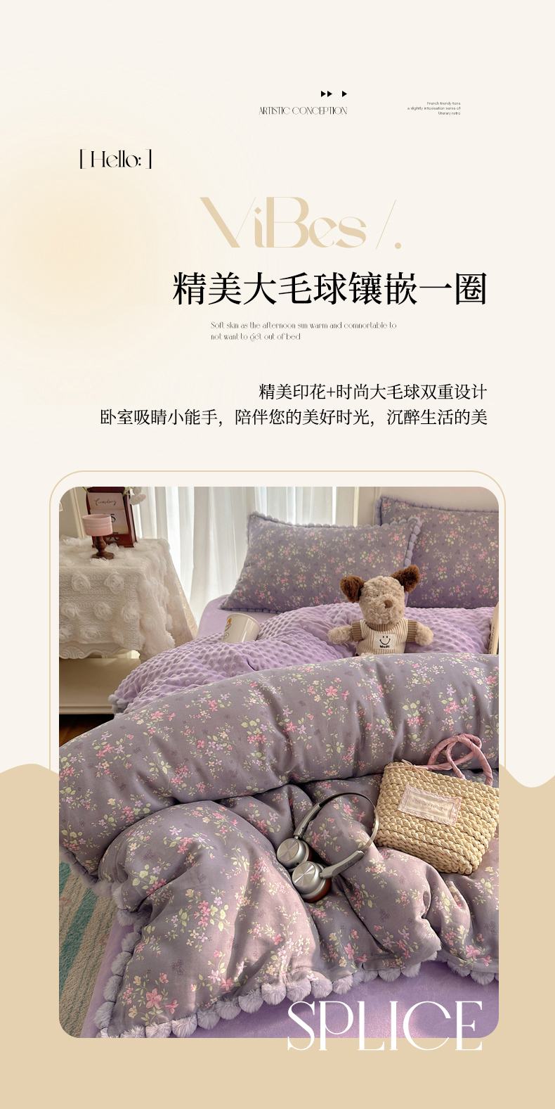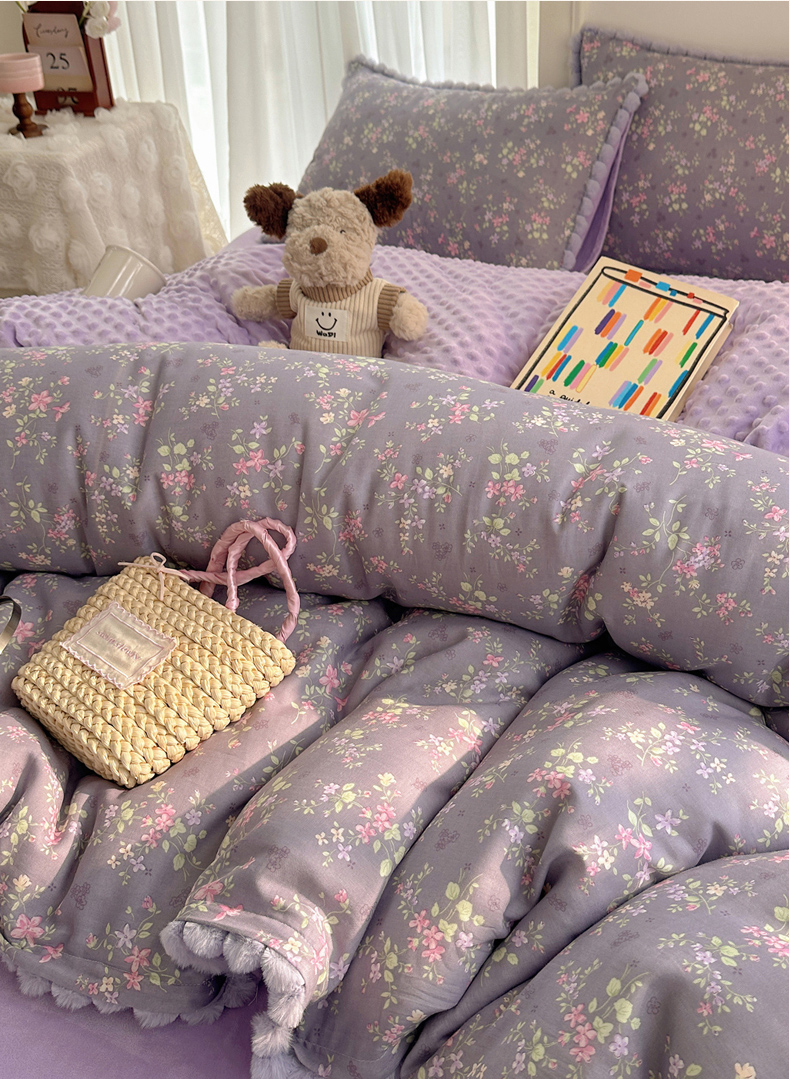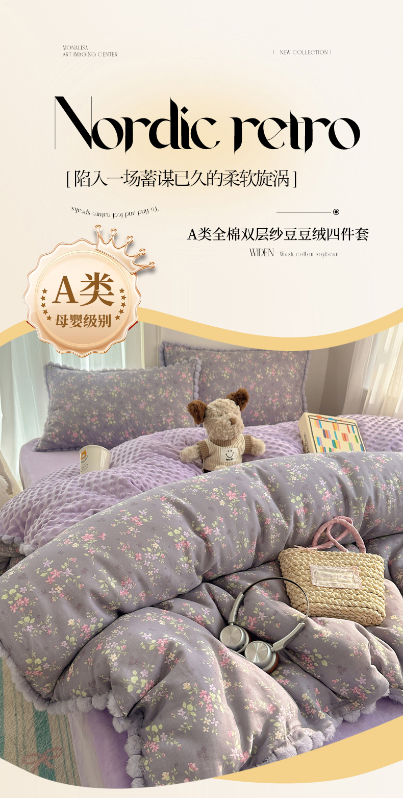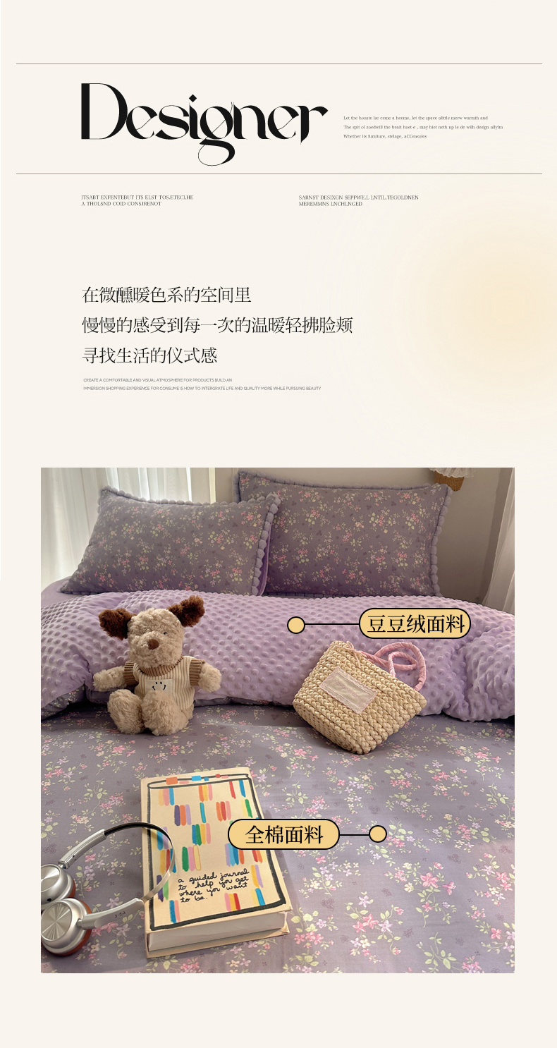 商品名称:Sweet dreams甜梦 2025新款双层纱豆豆绒棉加绒四件套 花梦时