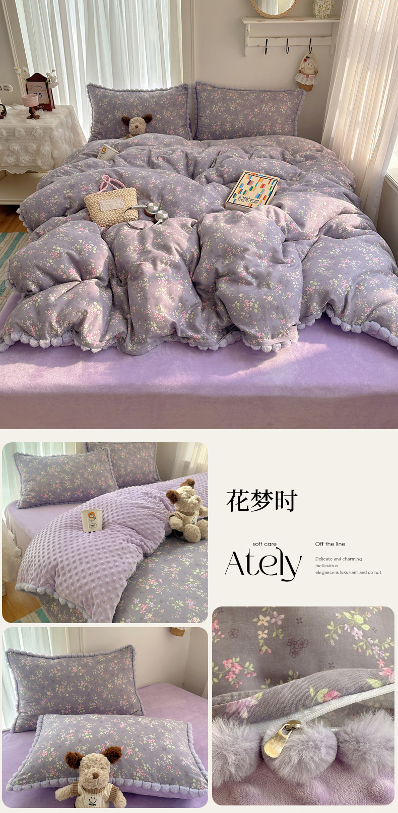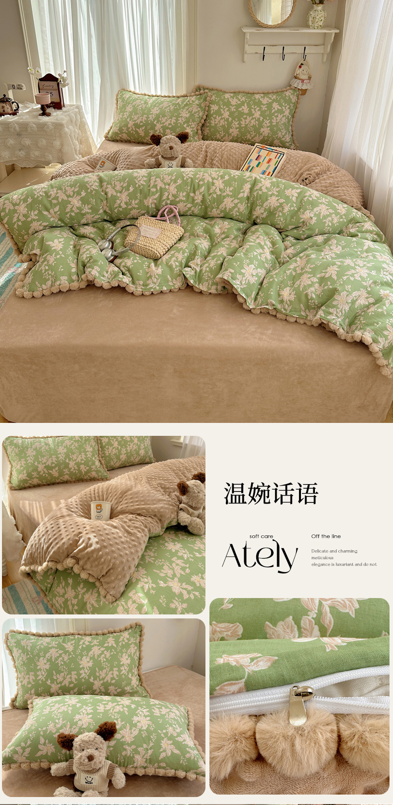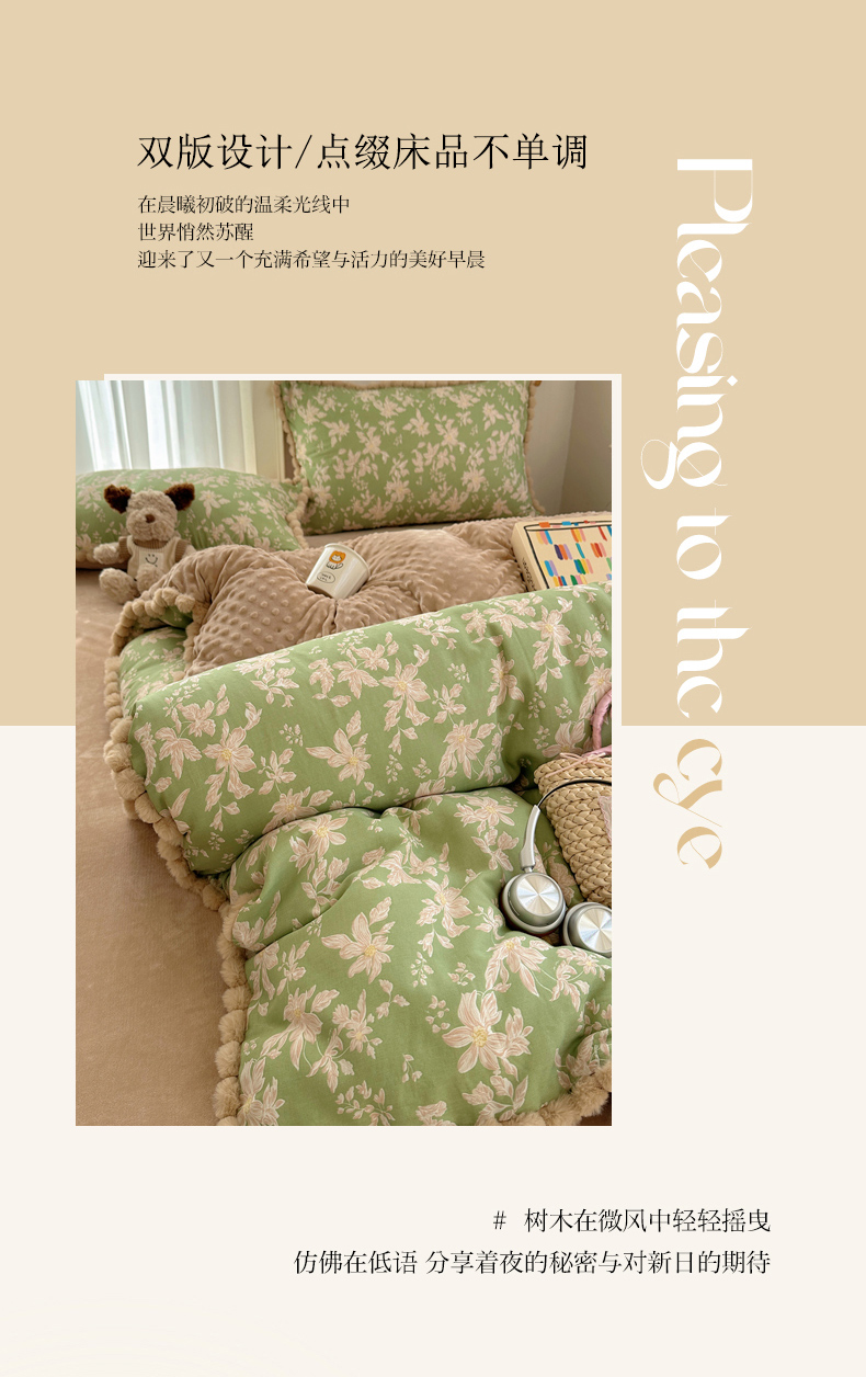 Sweet dreams甜梦 2025新款A类双层纱豆豆绒棉加绒四件套 温婉话语