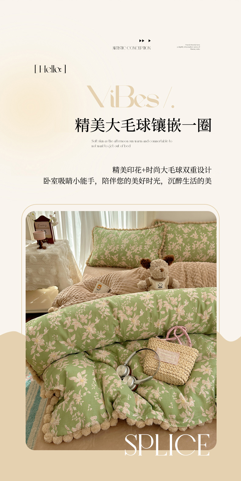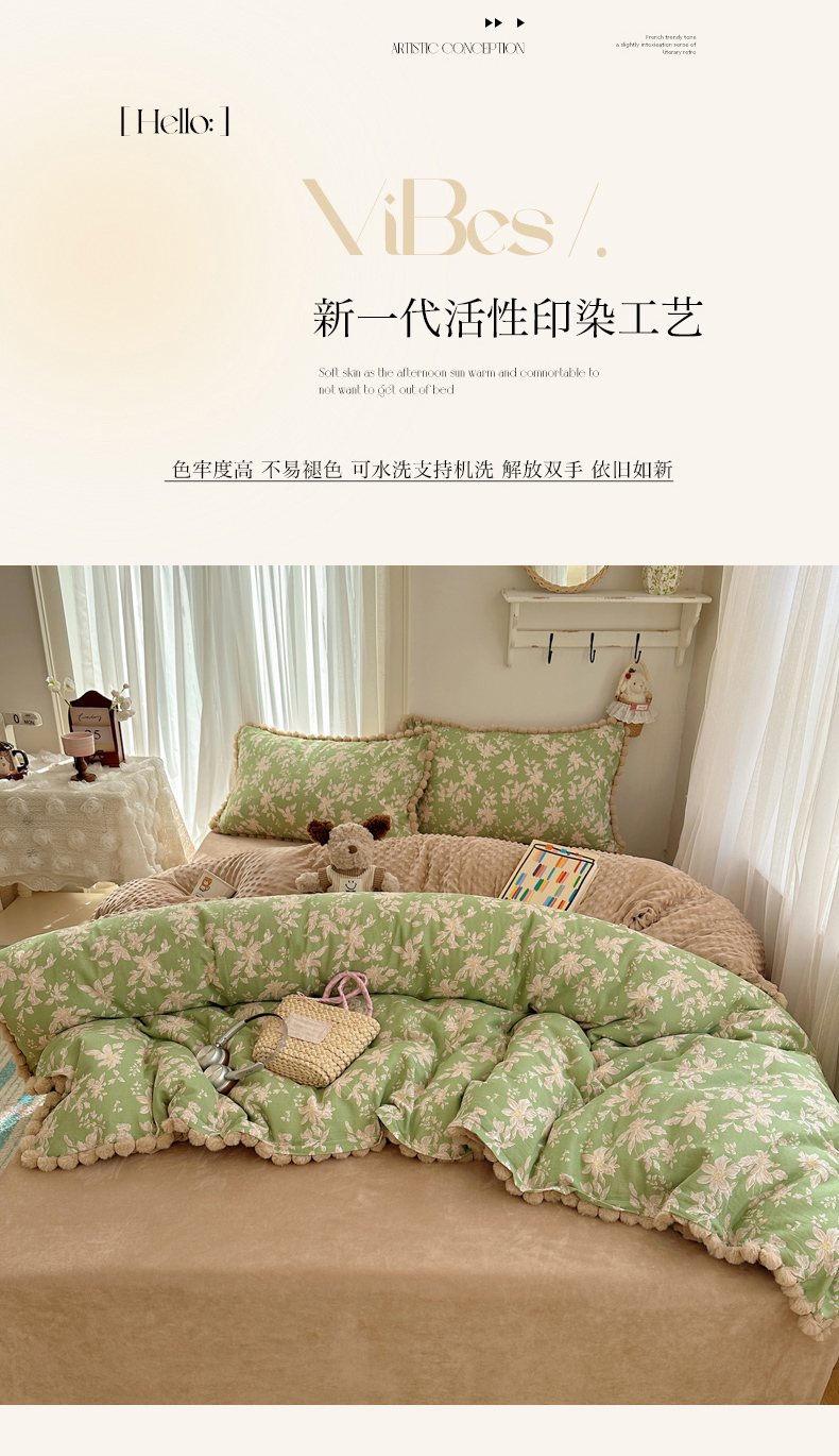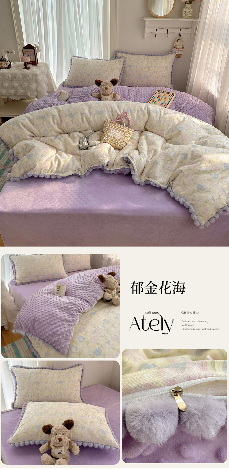 Sweet dreams甜梦 2025新款A类双层纱豆豆绒棉加绒四件套 温婉话语
