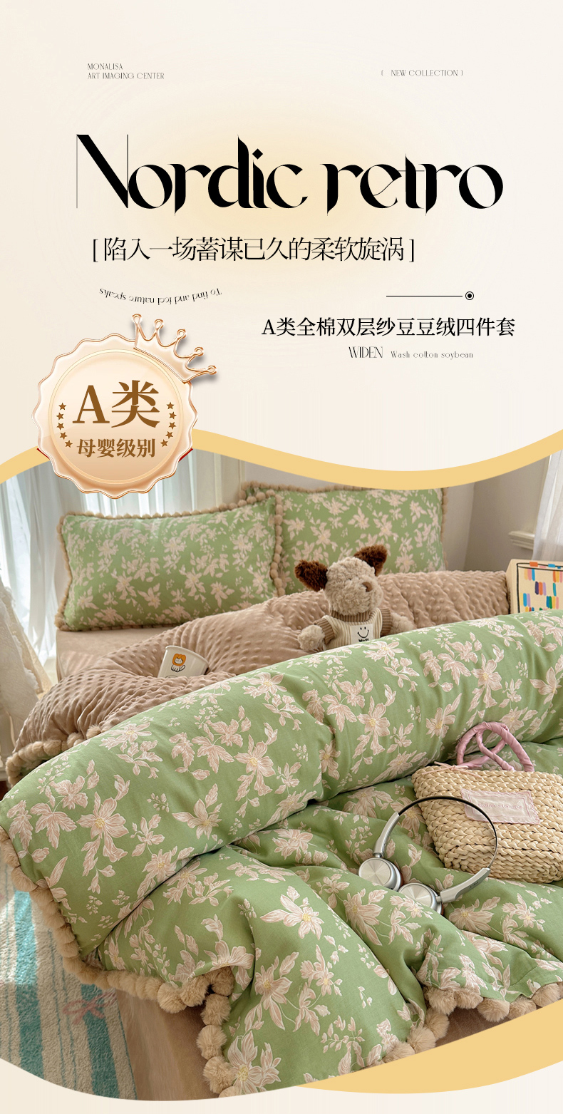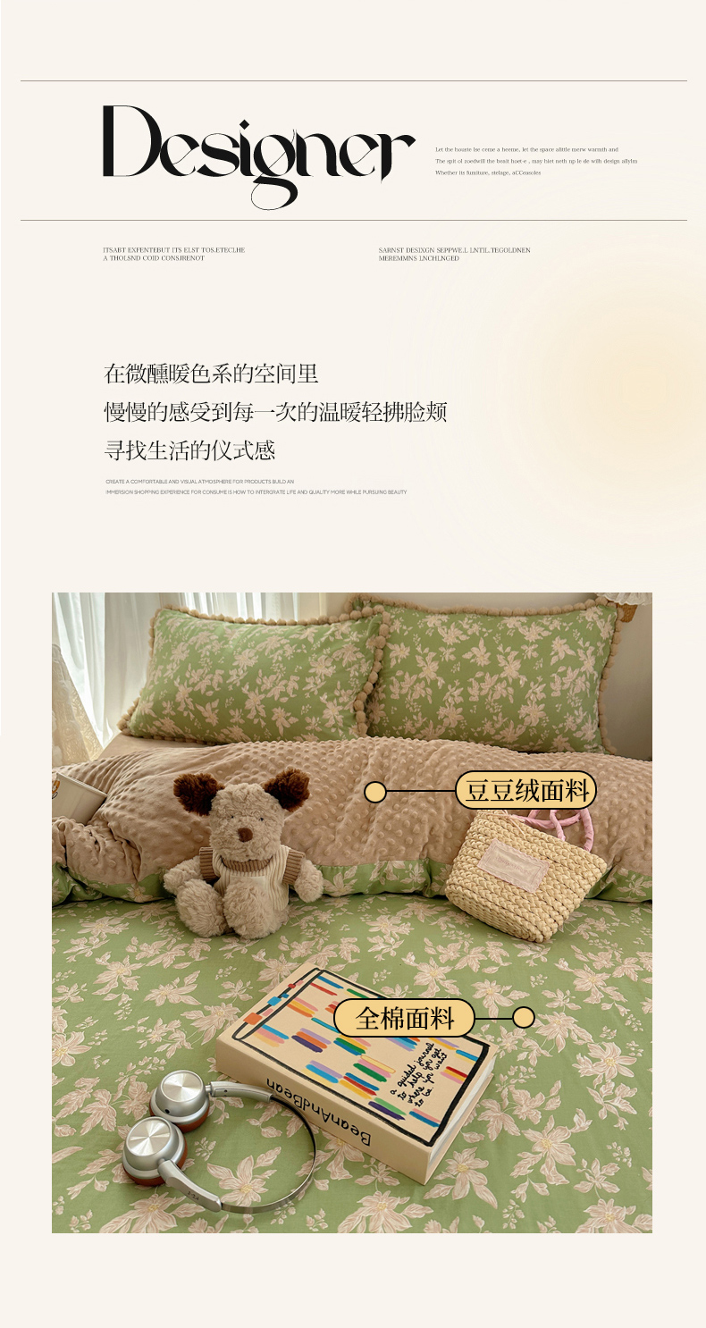 商品名称: Sweet dreams甜梦 2025新款A类双层纱豆豆绒棉加绒四件套 温婉话语