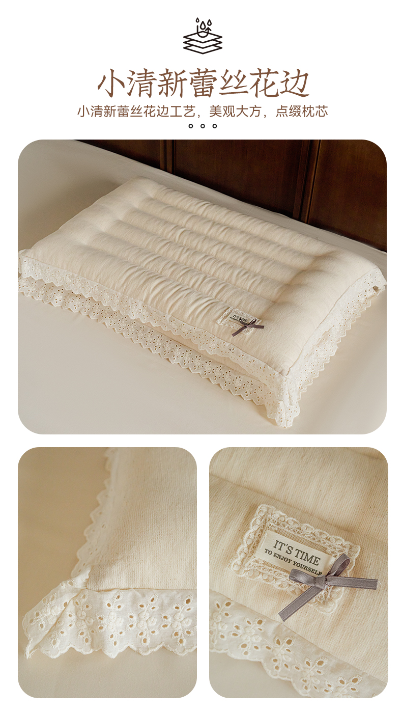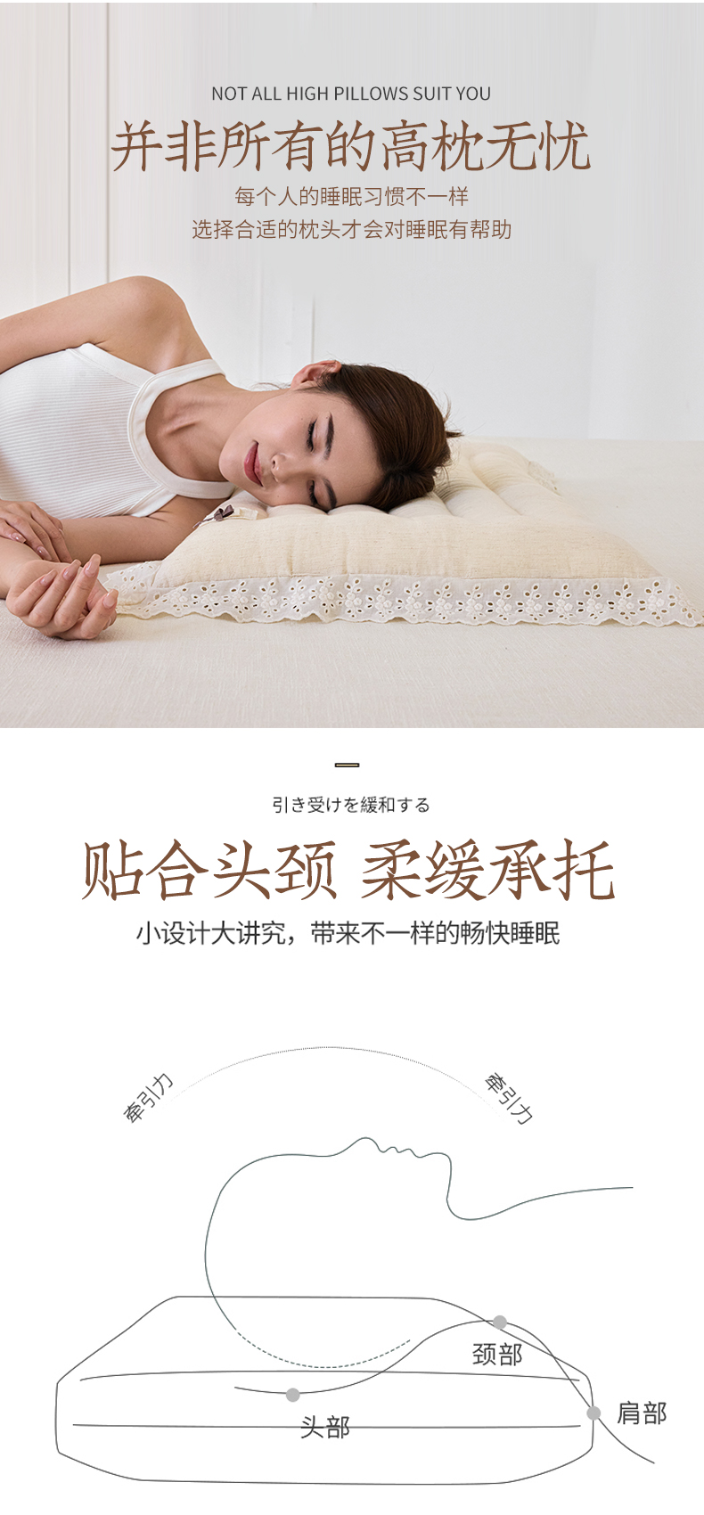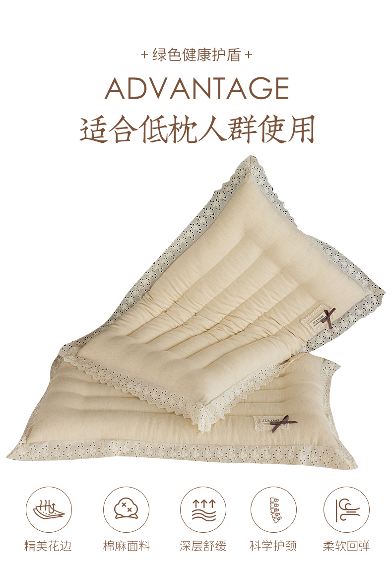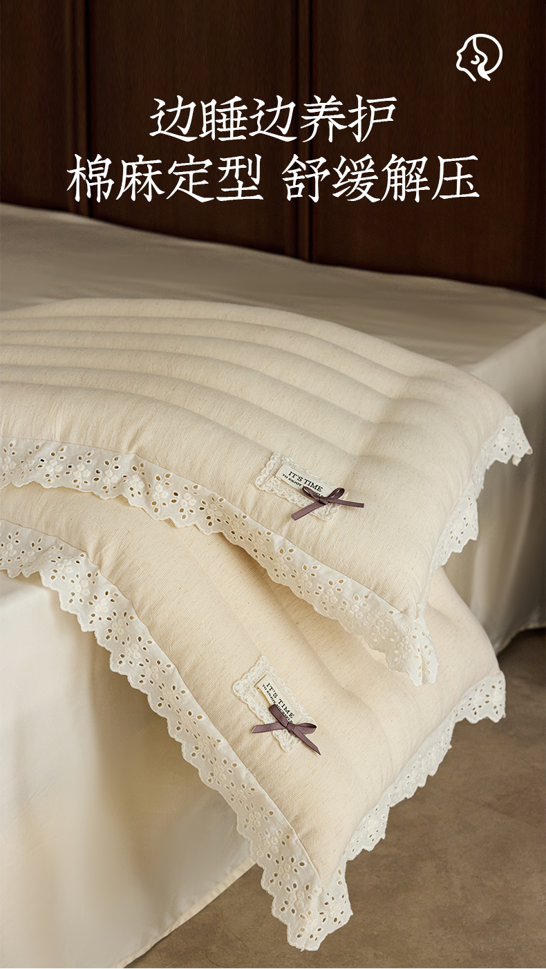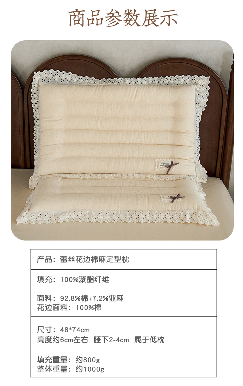 商品名称:(总)昕科 2025新款蕾丝花边棉麻定型低枕枕头枕芯