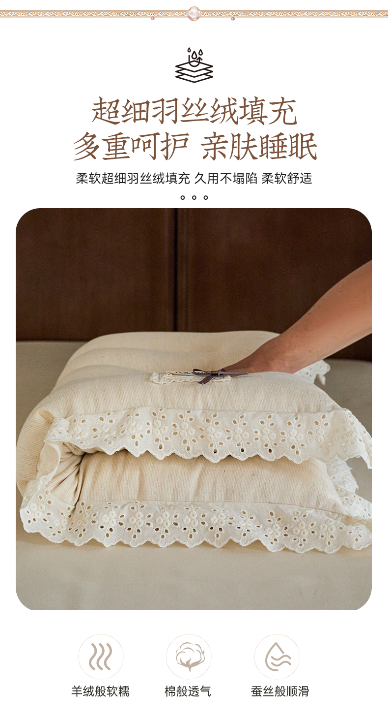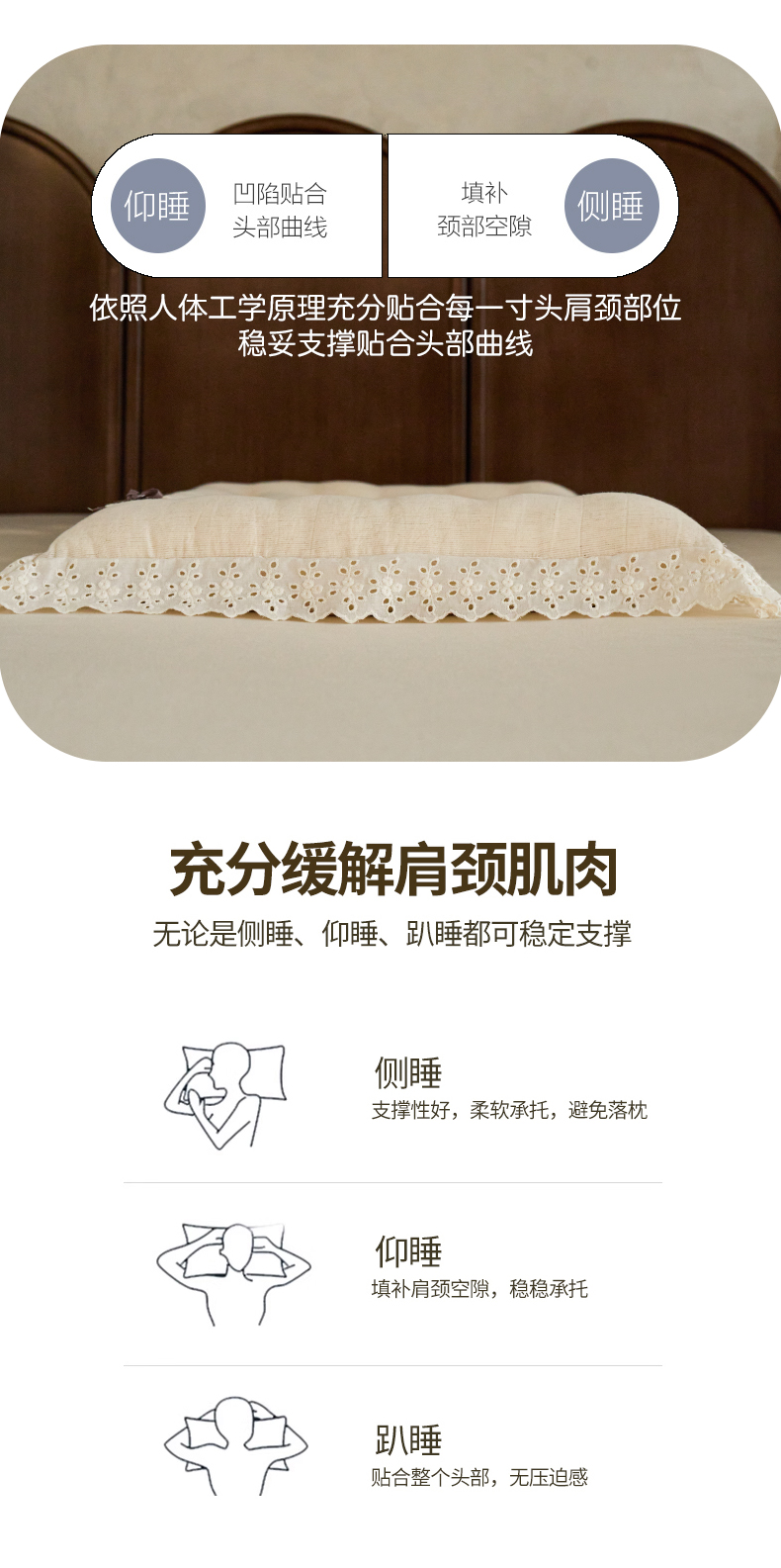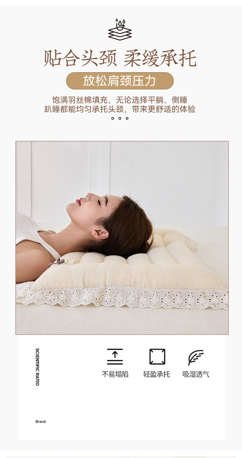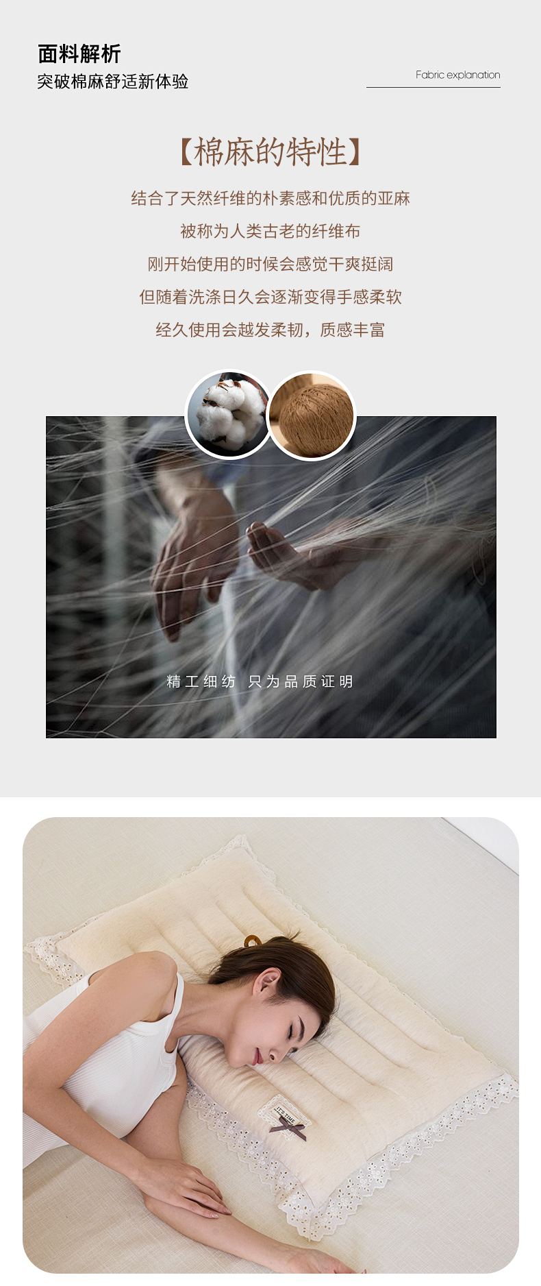 商品名称:(总)昕科 2025新款蕾丝花边棉麻定型低枕枕头枕芯