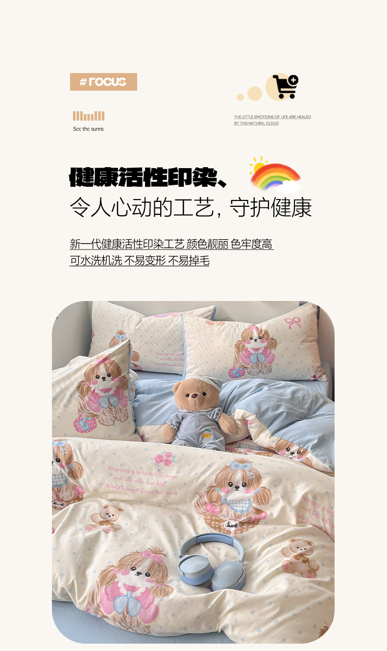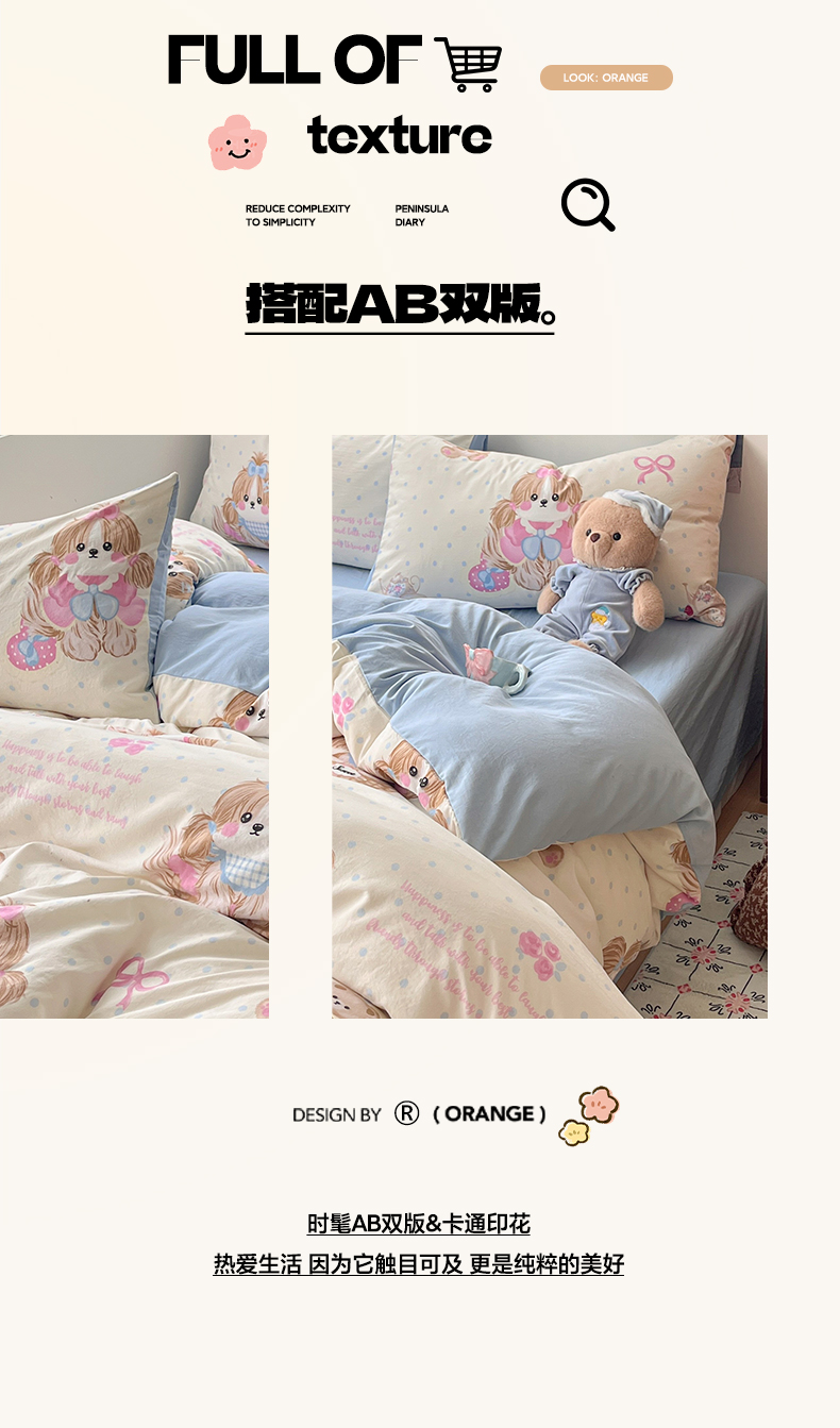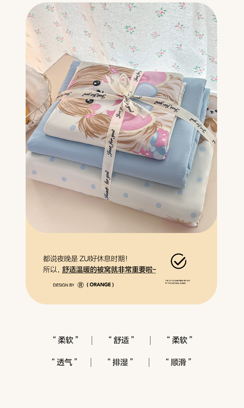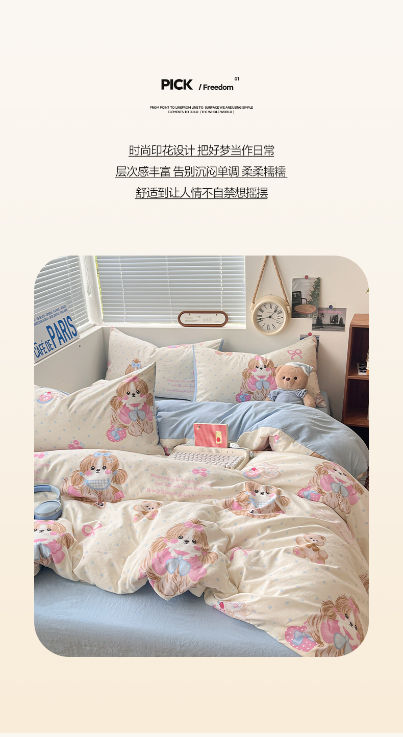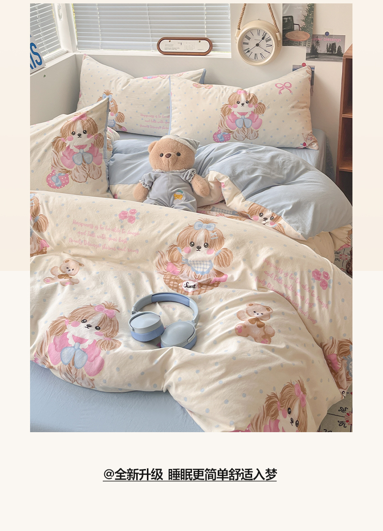 当前位置: 91家纺网 > 商品网购 > 床品套件 > 四件套 > 水洗棉四件套 > 优承佳生活馆 2026新款洛丽塔风水洗印花四件套学生三件套单被套系列 爱宠宝宝