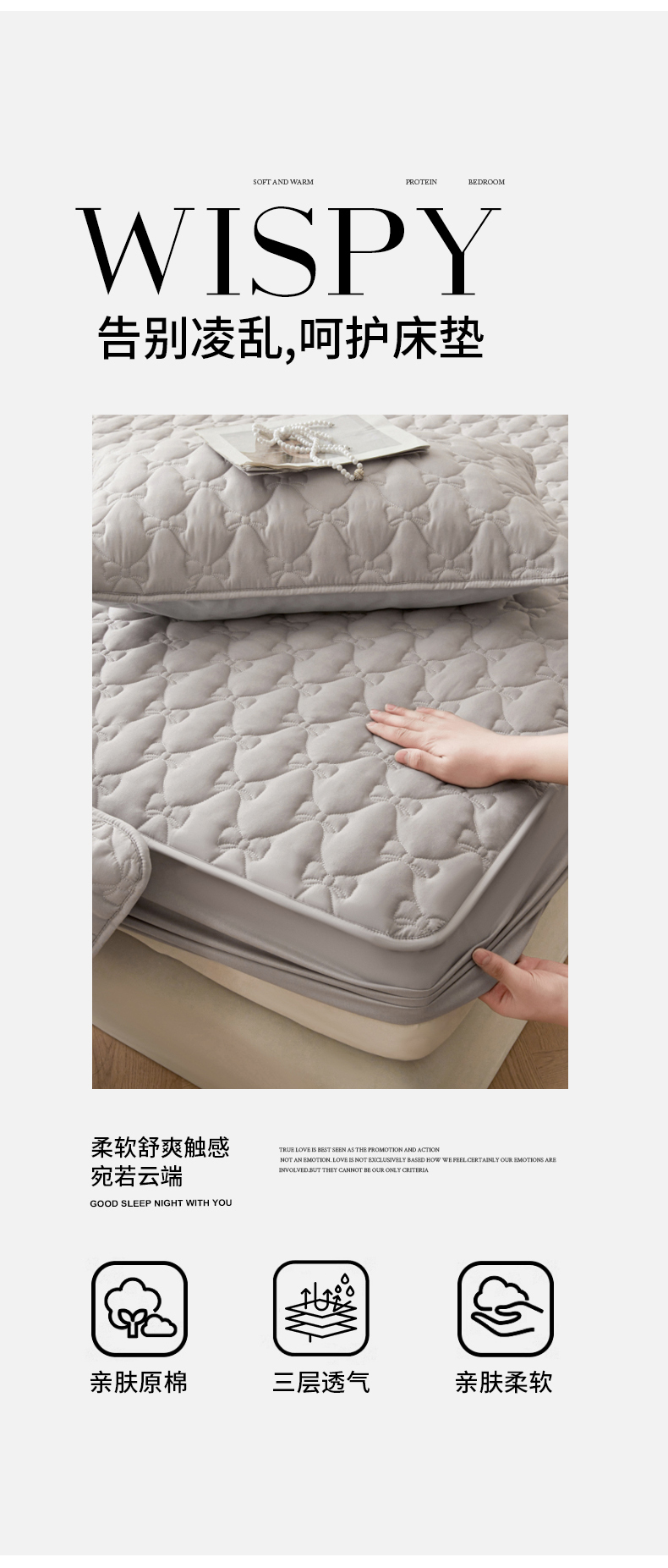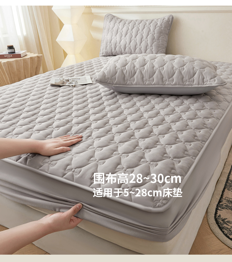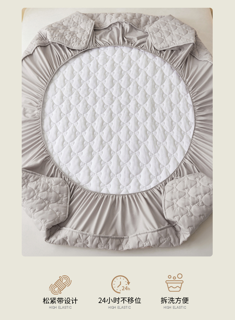 • 91家纺网 家纺一手货源 找家纺 LIFE.丽芙 2025新款水洗原棉单件蝴蝶结绗缝夹棉床笠三件套 蝴蝶结床笠-山灰