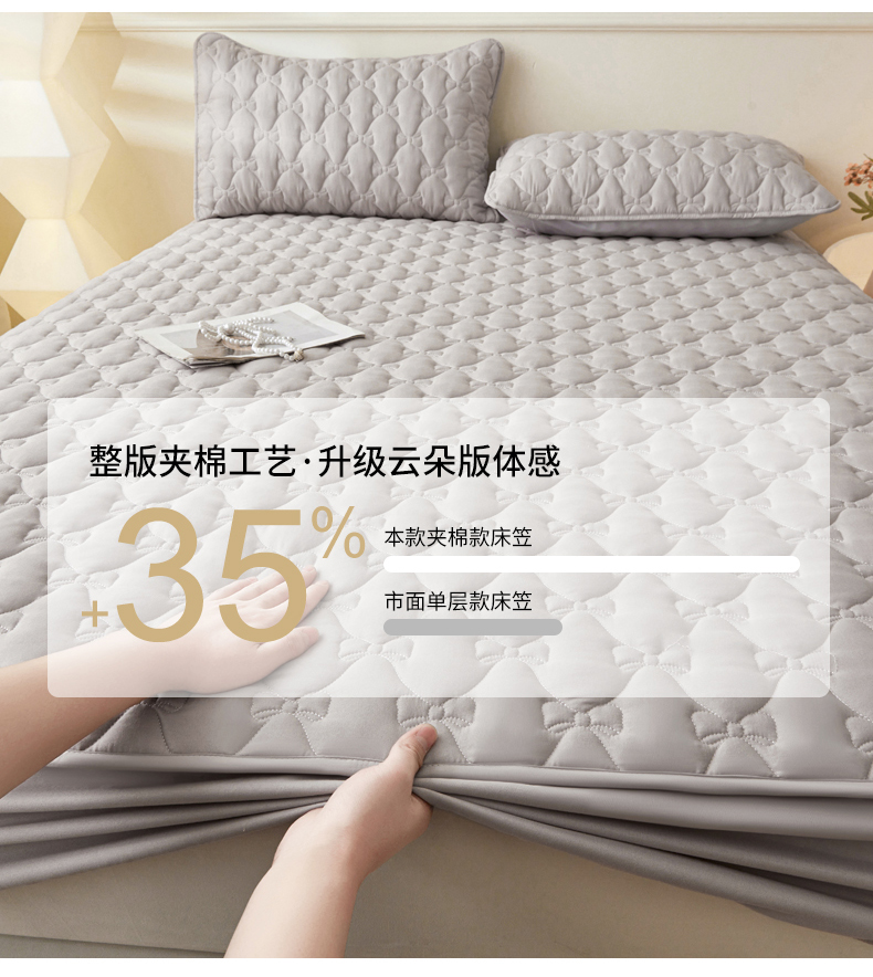 当前位置: 91家纺网 > 商品网购 > 床上用品 > 床笠 > LIFE.丽芙 2025新款水洗原棉单件蝴蝶结绗缝夹棉床笠三件套 蝴蝶结床笠-山灰