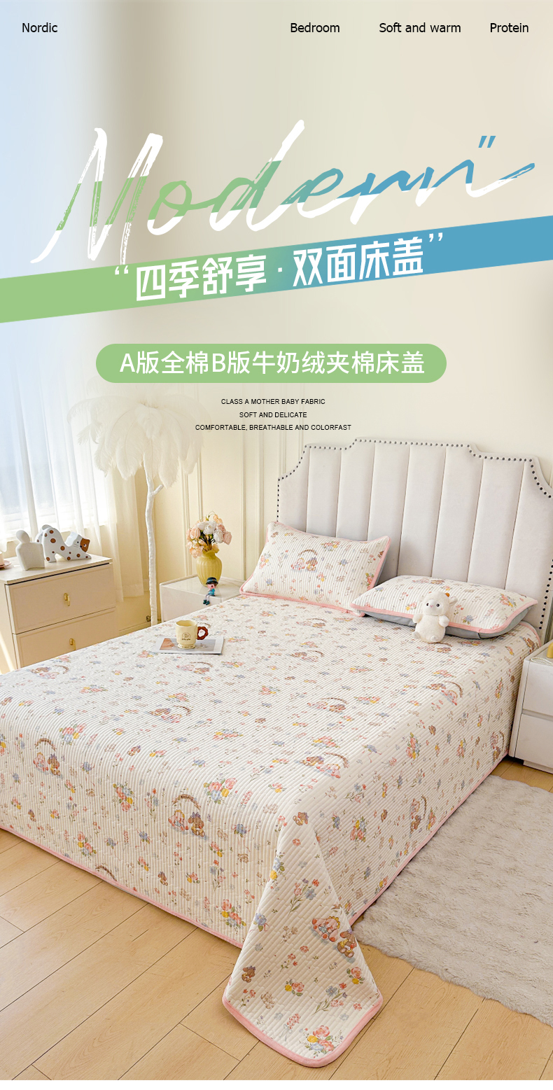 • 91家纺网 家纺一手货源 找家纺 LIFE.丽芙 2025新款A类四季可用A版全棉数码印花B版牛奶绒单件夹棉炕盖床盖三件套 床盖-浪漫花丛