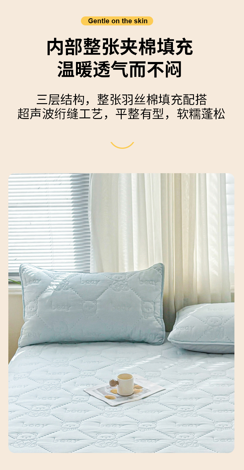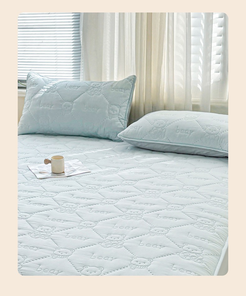 • 91家纺网 家纺一手货源 找家纺 LIFE.丽芙 2025新款磨毛超声波夹棉机包边枕套 小熊夹棉枕套-天空蓝