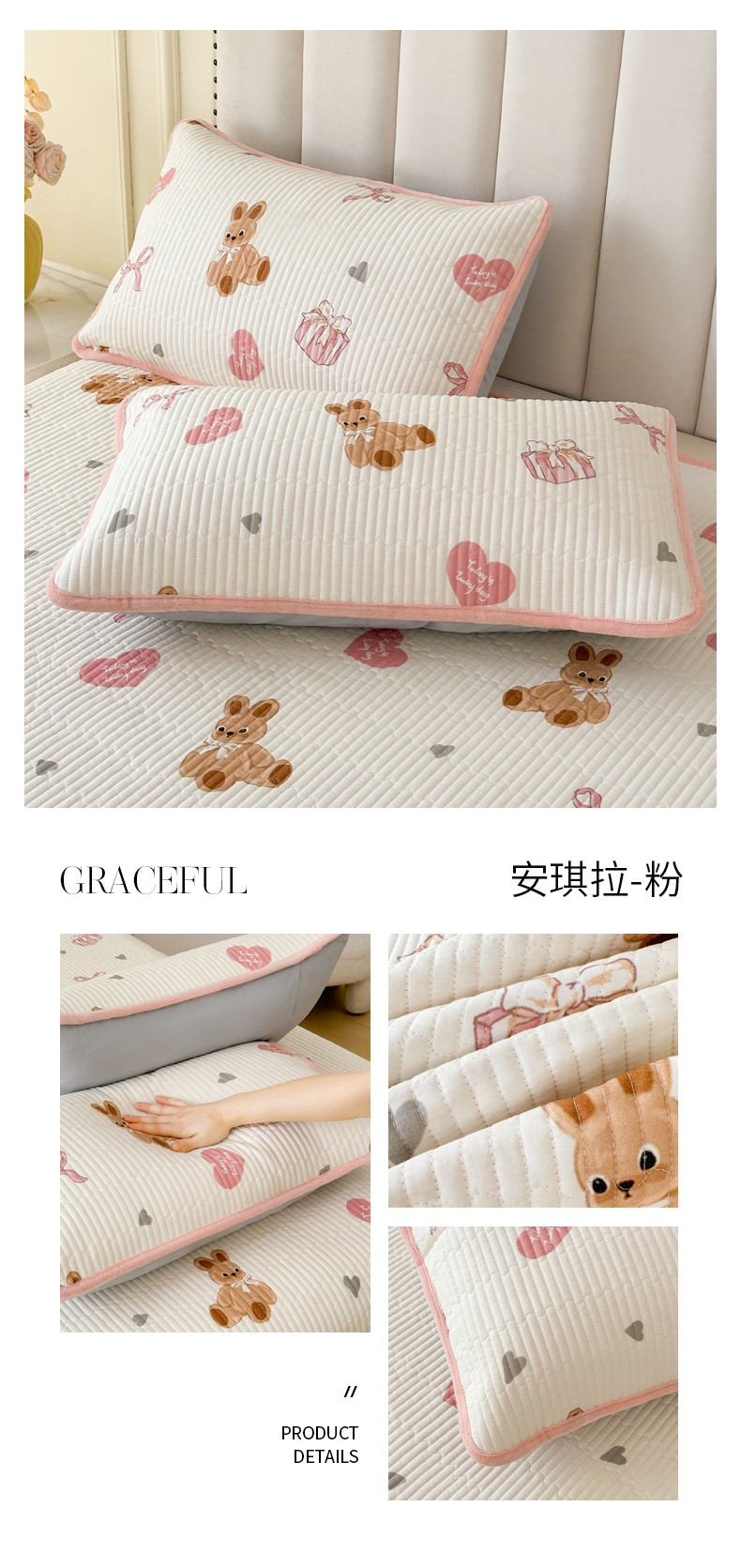 商品名称:LIFE.丽芙 2025新款A类全棉夹棉包边枕套 爱心小妹