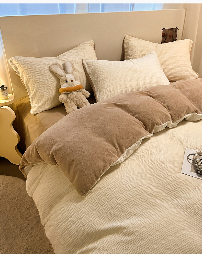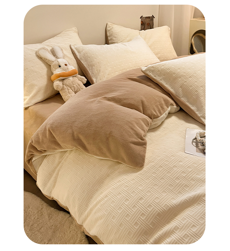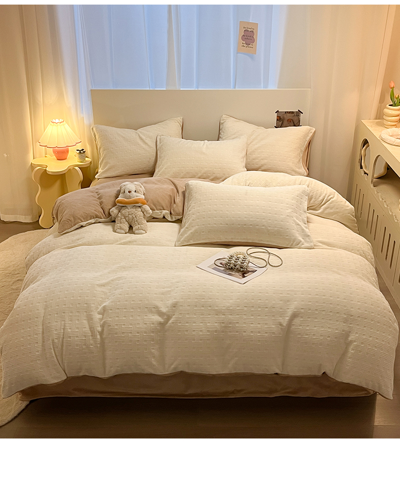 当前位置: 91家纺网 > 商品网购 > 床品套件 > 四件套 > 牛奶绒四件套 > 如一 2025年3D立体雕花牛奶绒四件套 编织纹-白咖